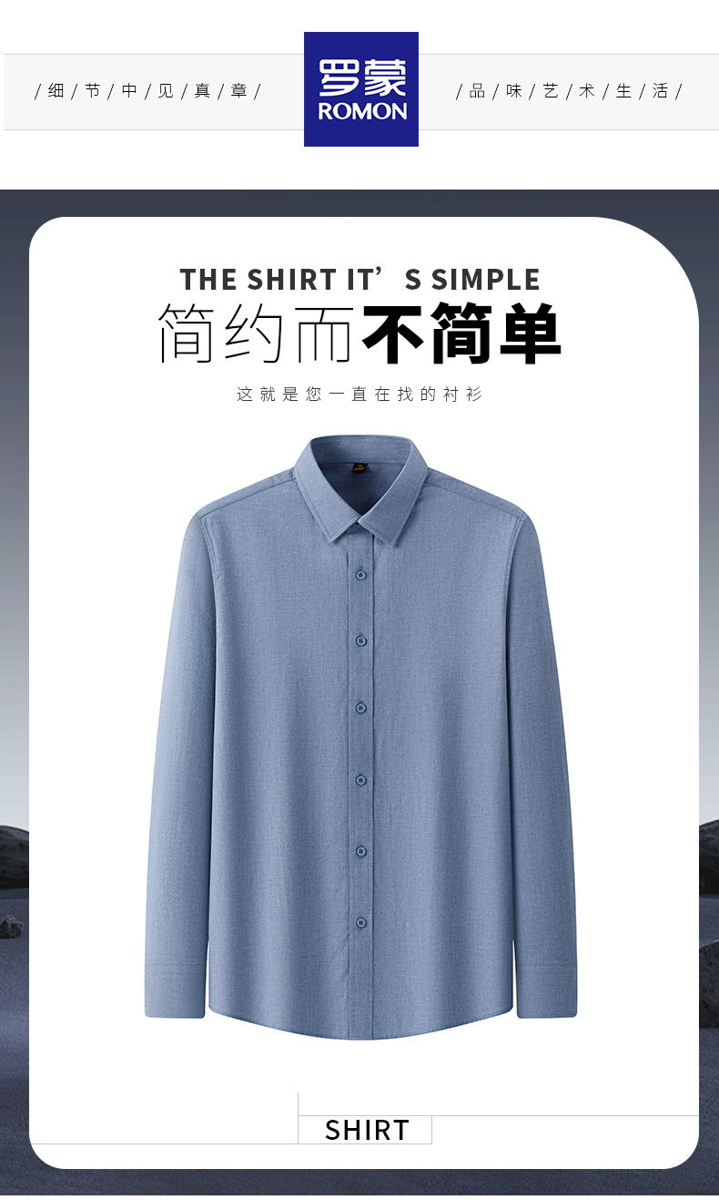 【100棉】罗蒙秋季男士翻领时尚有型百搭通勤长袖衬衫休闲舒适好穿男衬衣