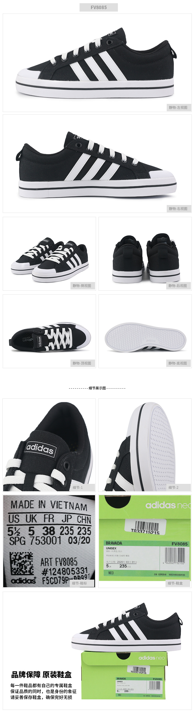 Adidas阿迪达斯男鞋女鞋新款运动休闲鞋板鞋舒适帆布鞋FV8085