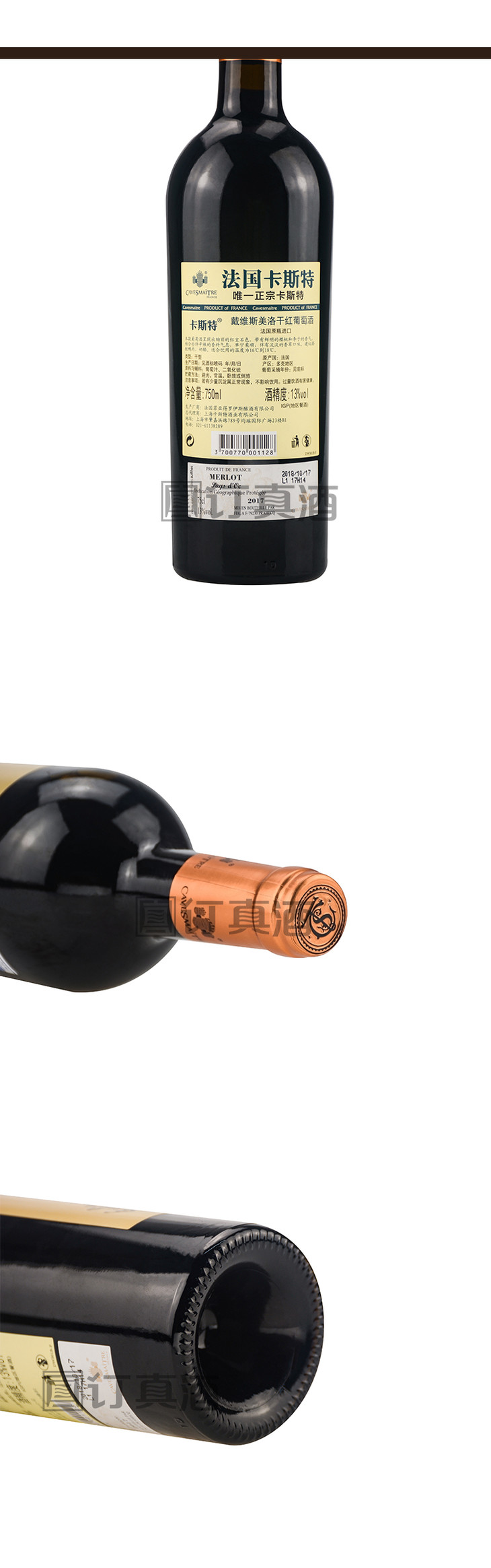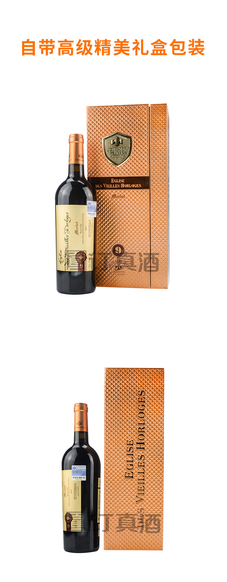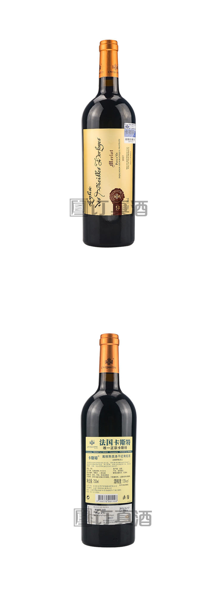 法国卡斯特戴维斯美洛干红葡萄酒礼盒装 整箱750ml*6瓶包邮