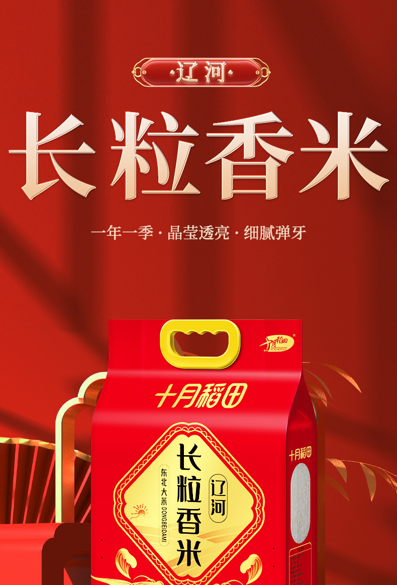 十月稻田 东北大米 辽河长粒香5kg 圆润饱满 色泽透亮