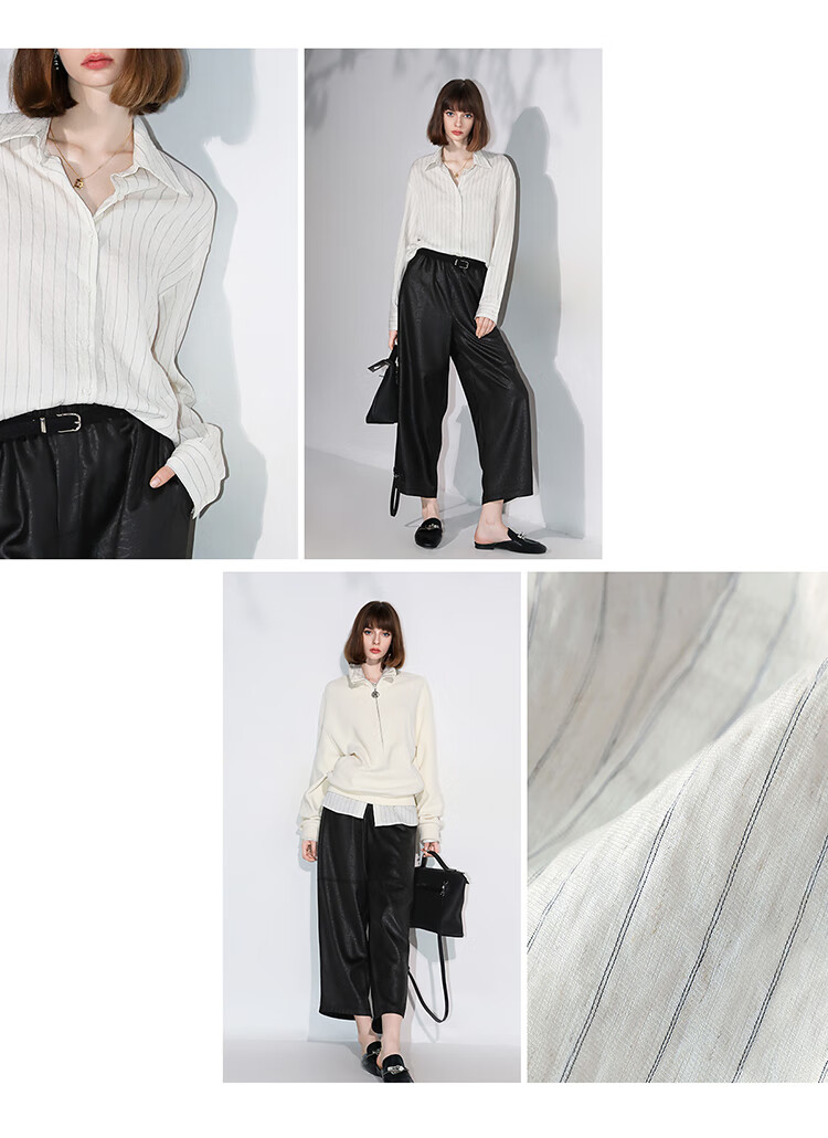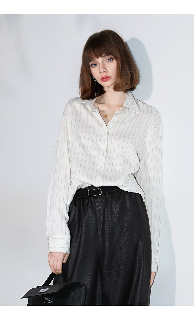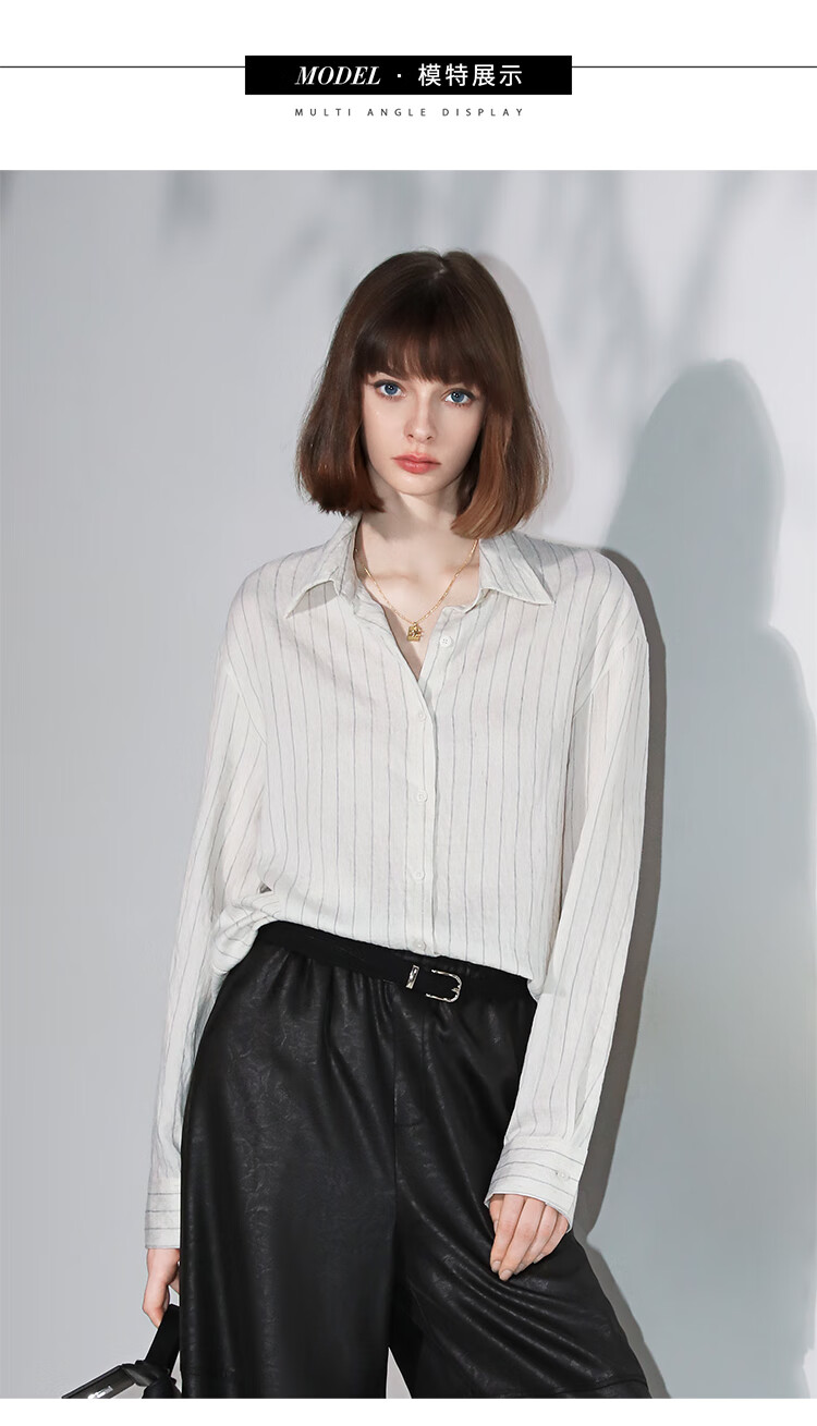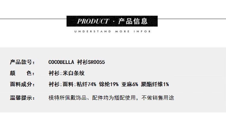 【限时秒杀】COCOBELLA[商务休闲风]色织条纹衬衫秋质感通勤亲肤衬衣SR0055