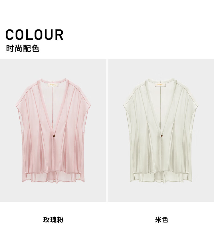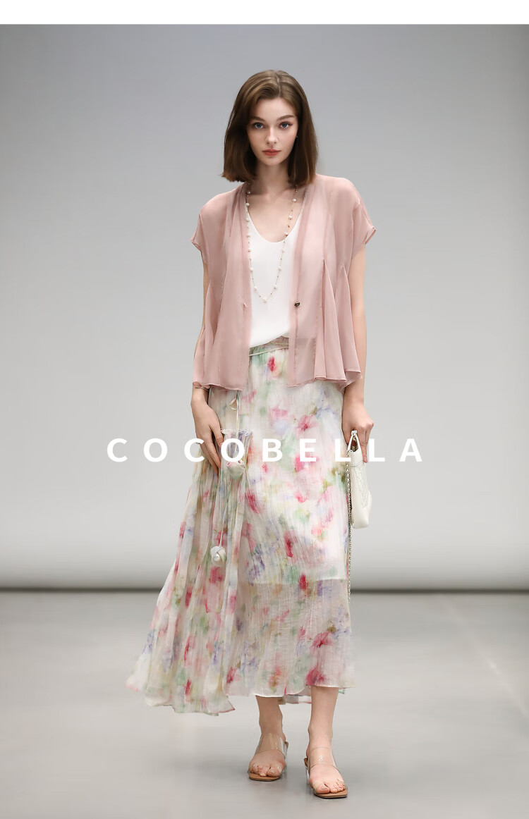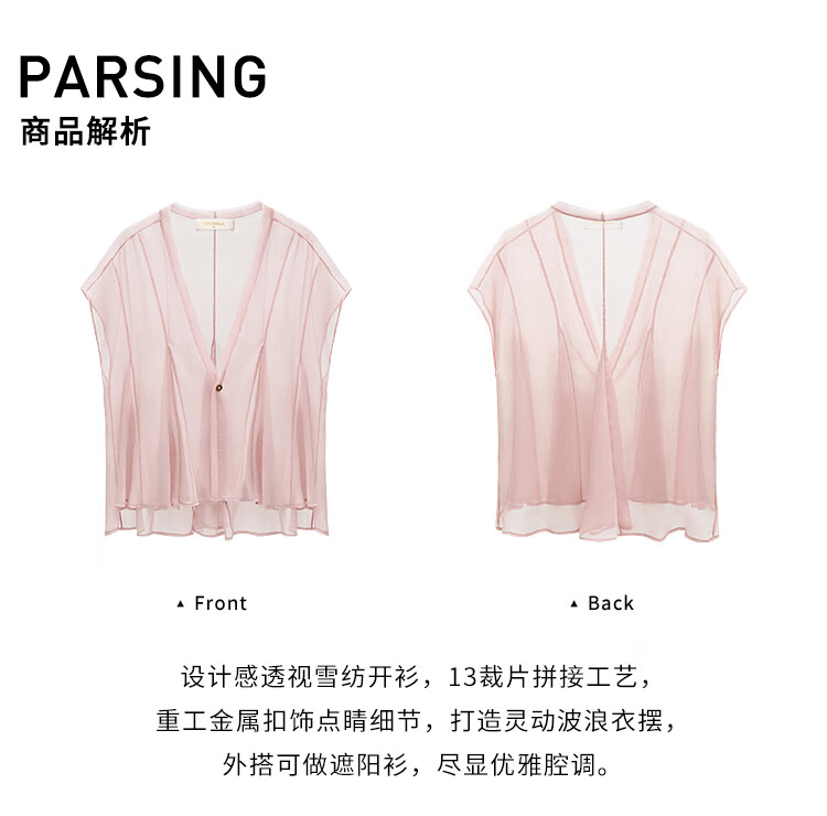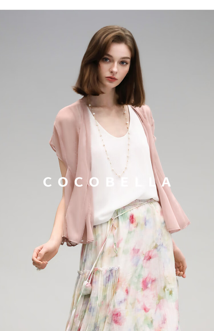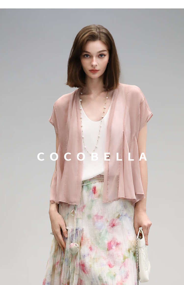 COCOBELLA重工13片拼接荷叶摆雪纺衫夏微透视遮阳小开衫LC517