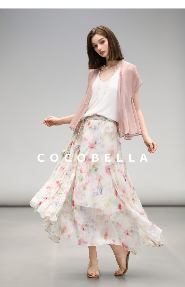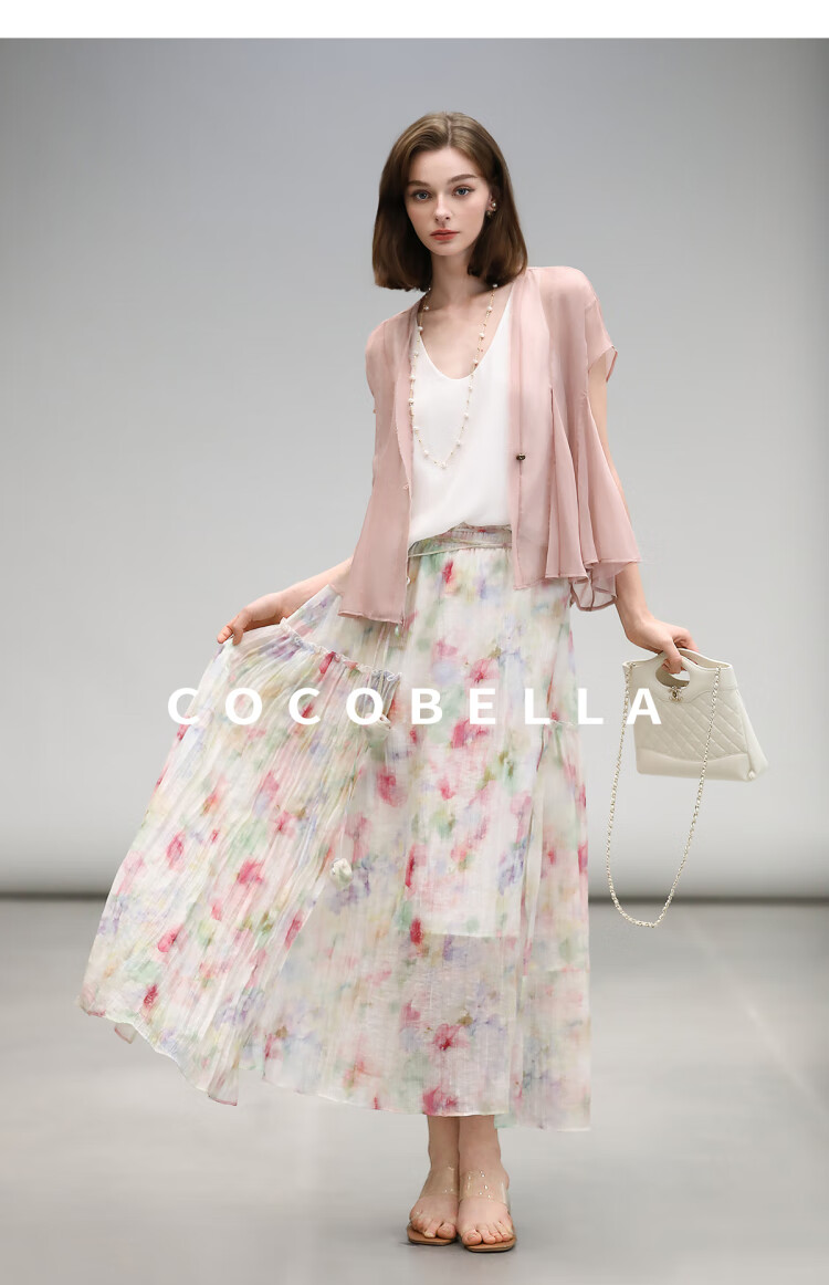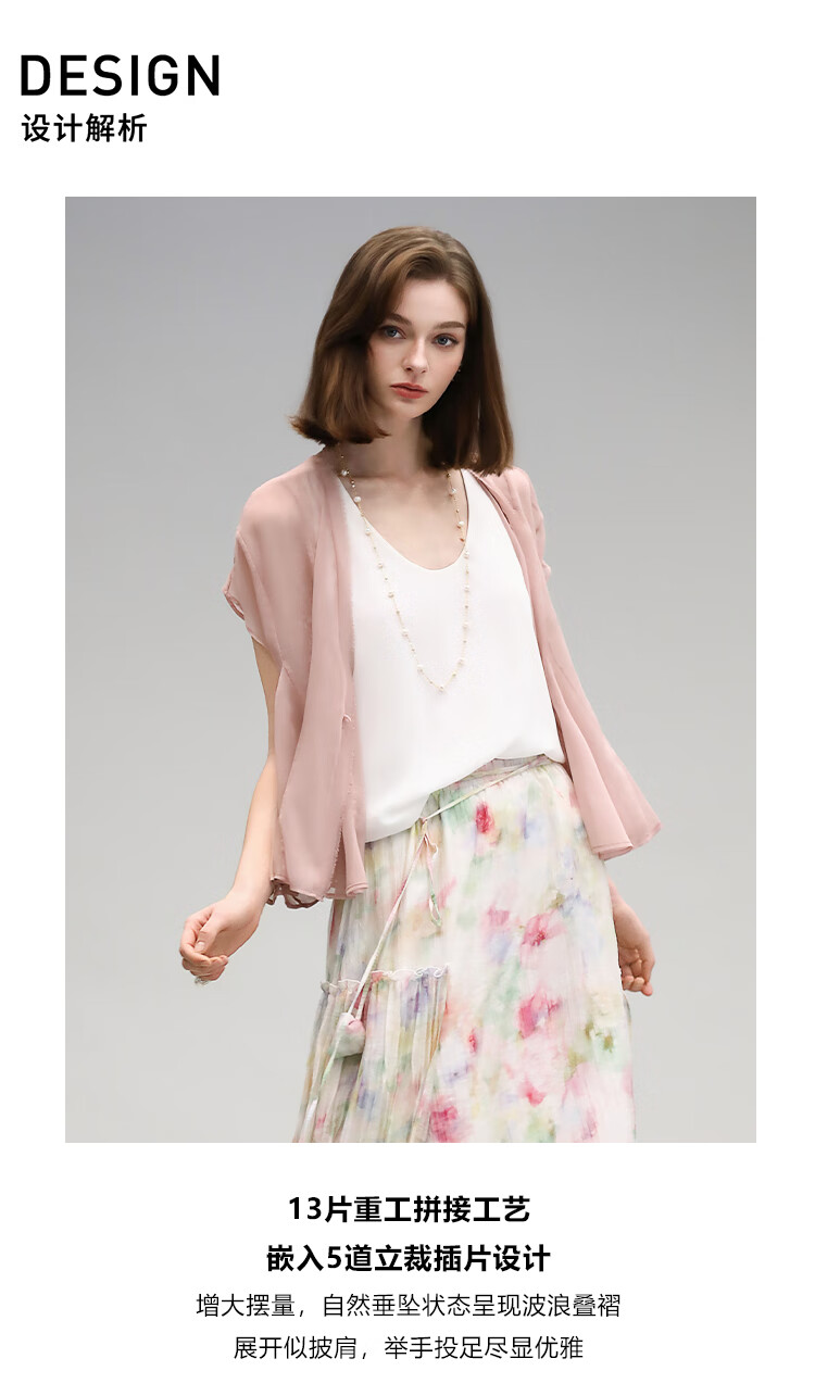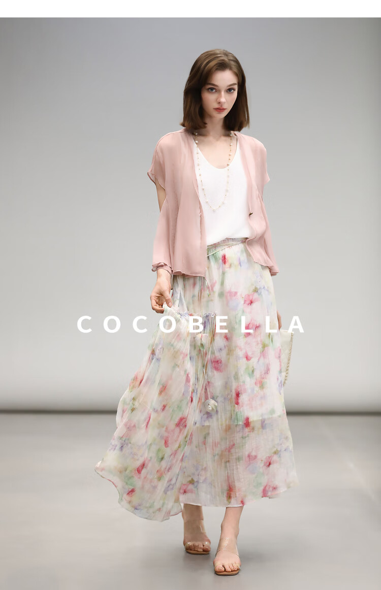 COCOBELLA重工13片拼接荷叶摆雪纺衫夏微透视遮阳小开衫LC517