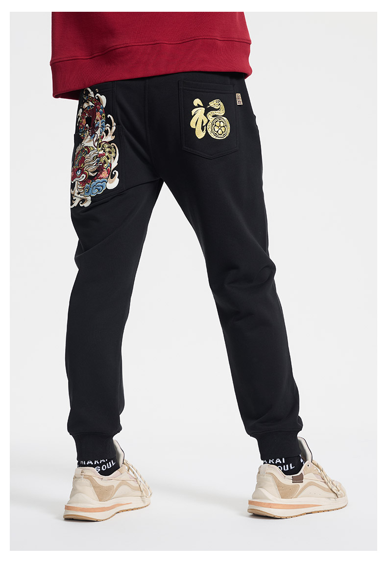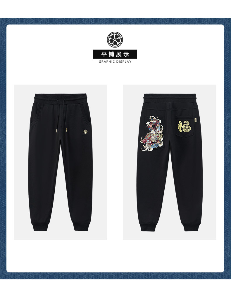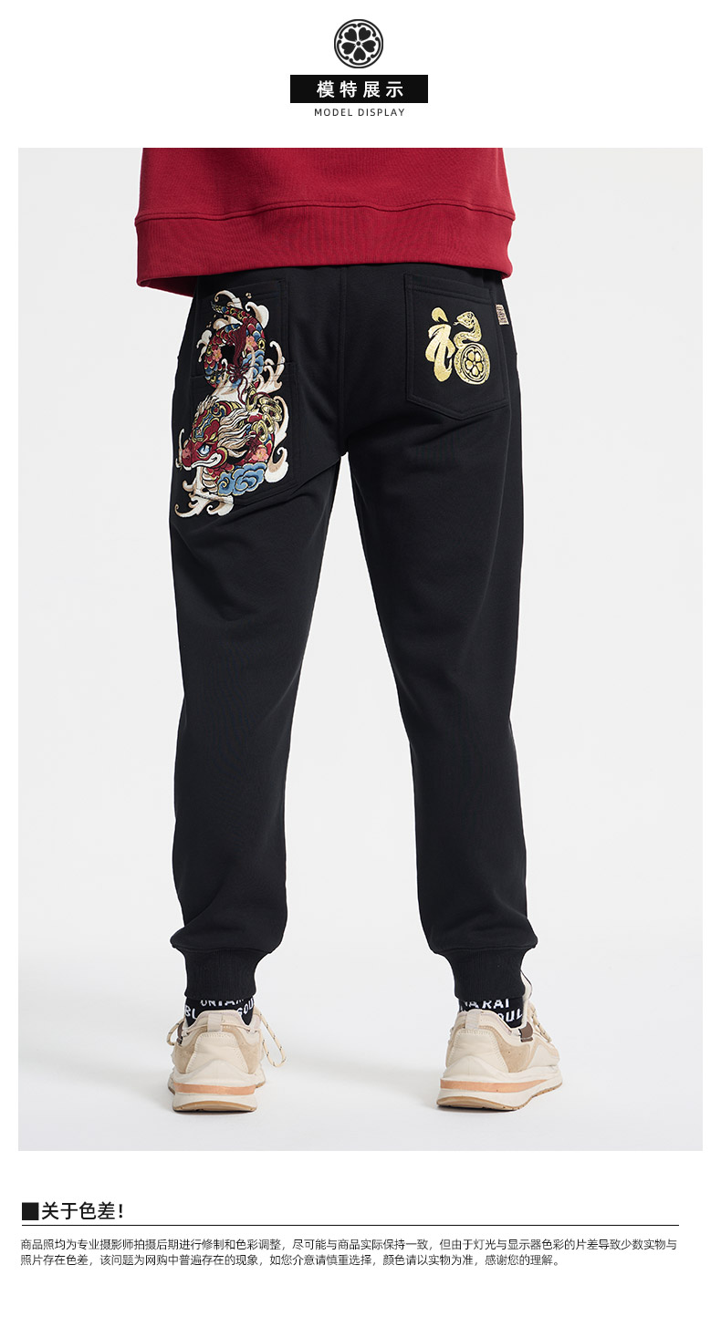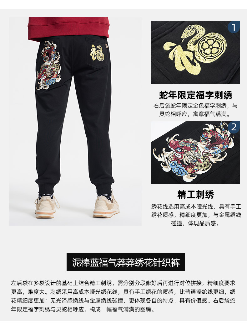 ONIARAI/鬼洗25春夏泥棒蓝福气莽莽绣花针织裤男式休闲裤 N540166