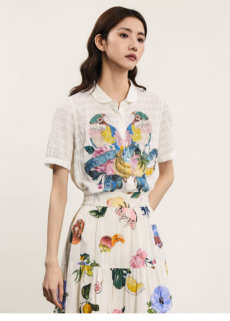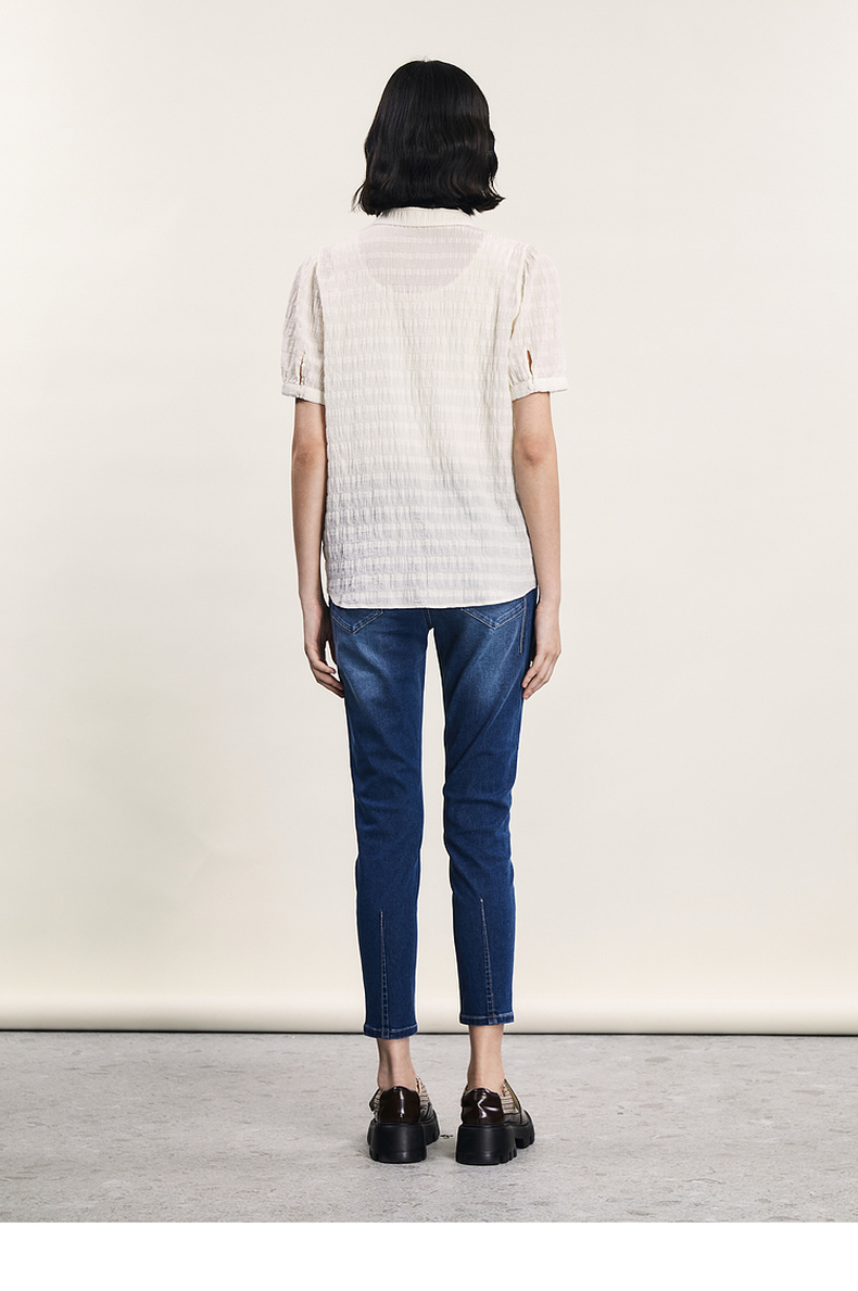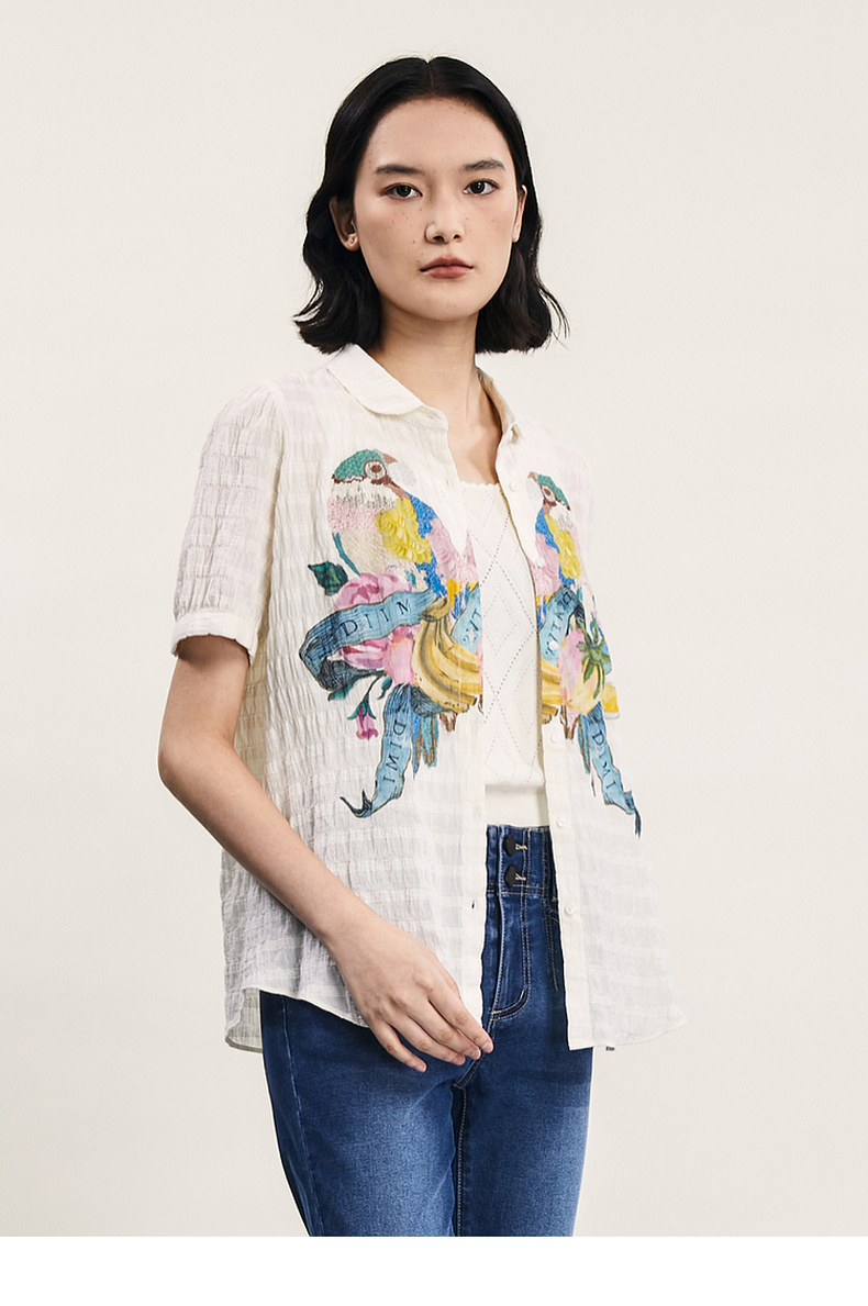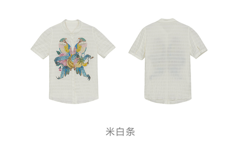 谜底主题印花衬衫短袖女2024年夏季新品通勤风提花衬衣242MC0538