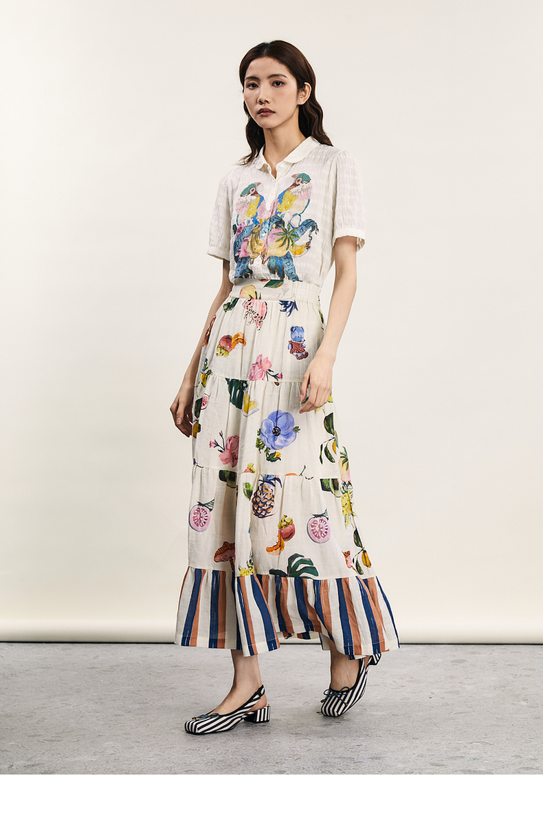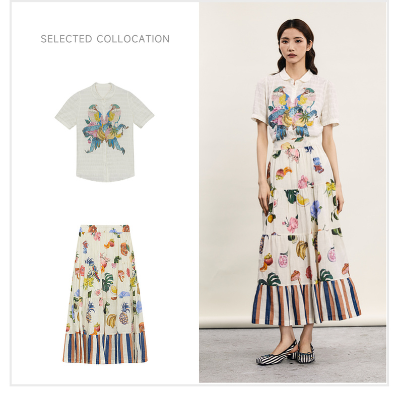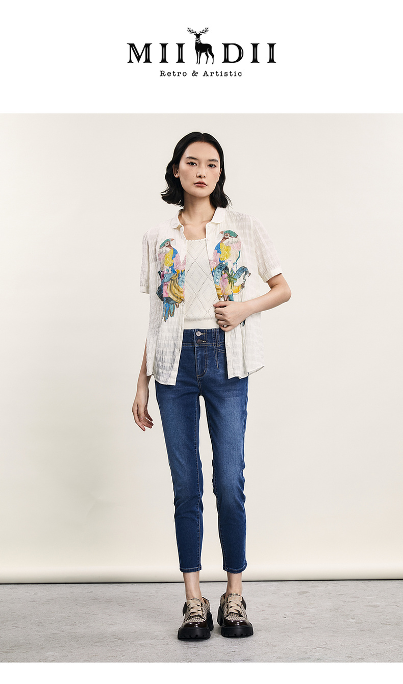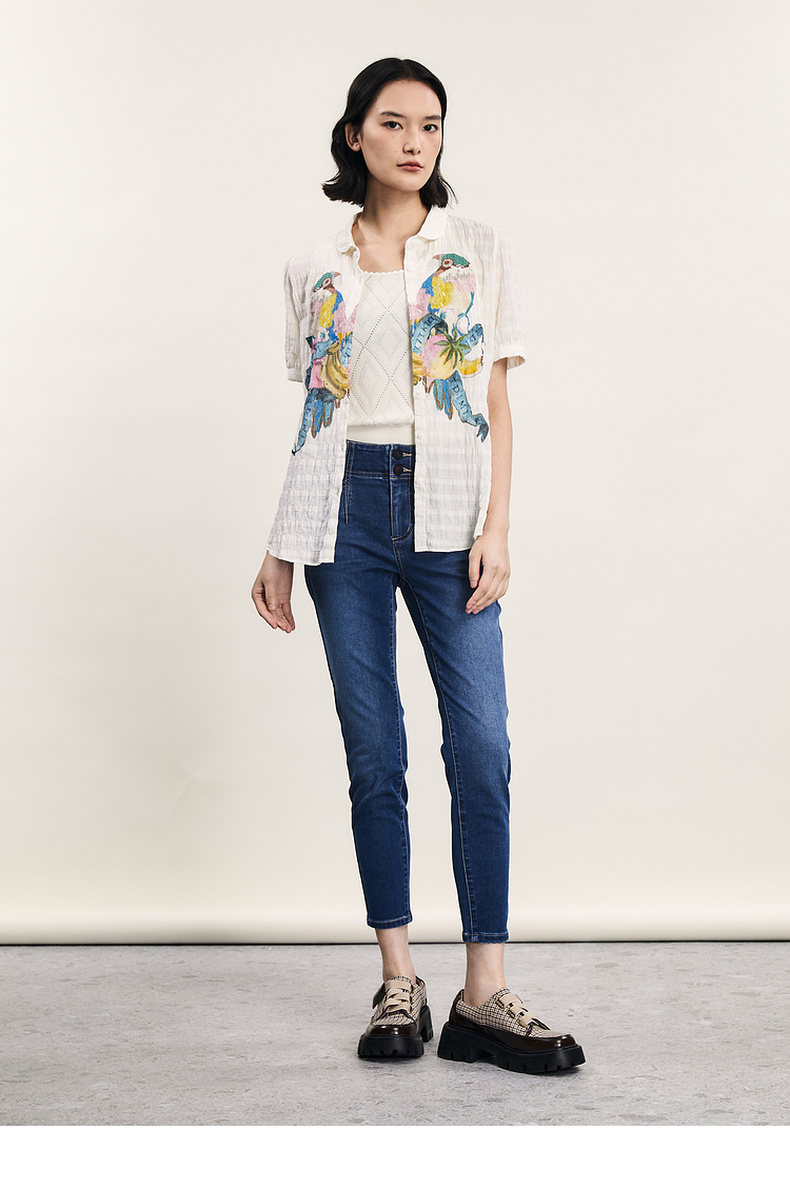 谜底主题印花衬衫短袖女2024年夏季新品通勤风提花衬衣242MC0538