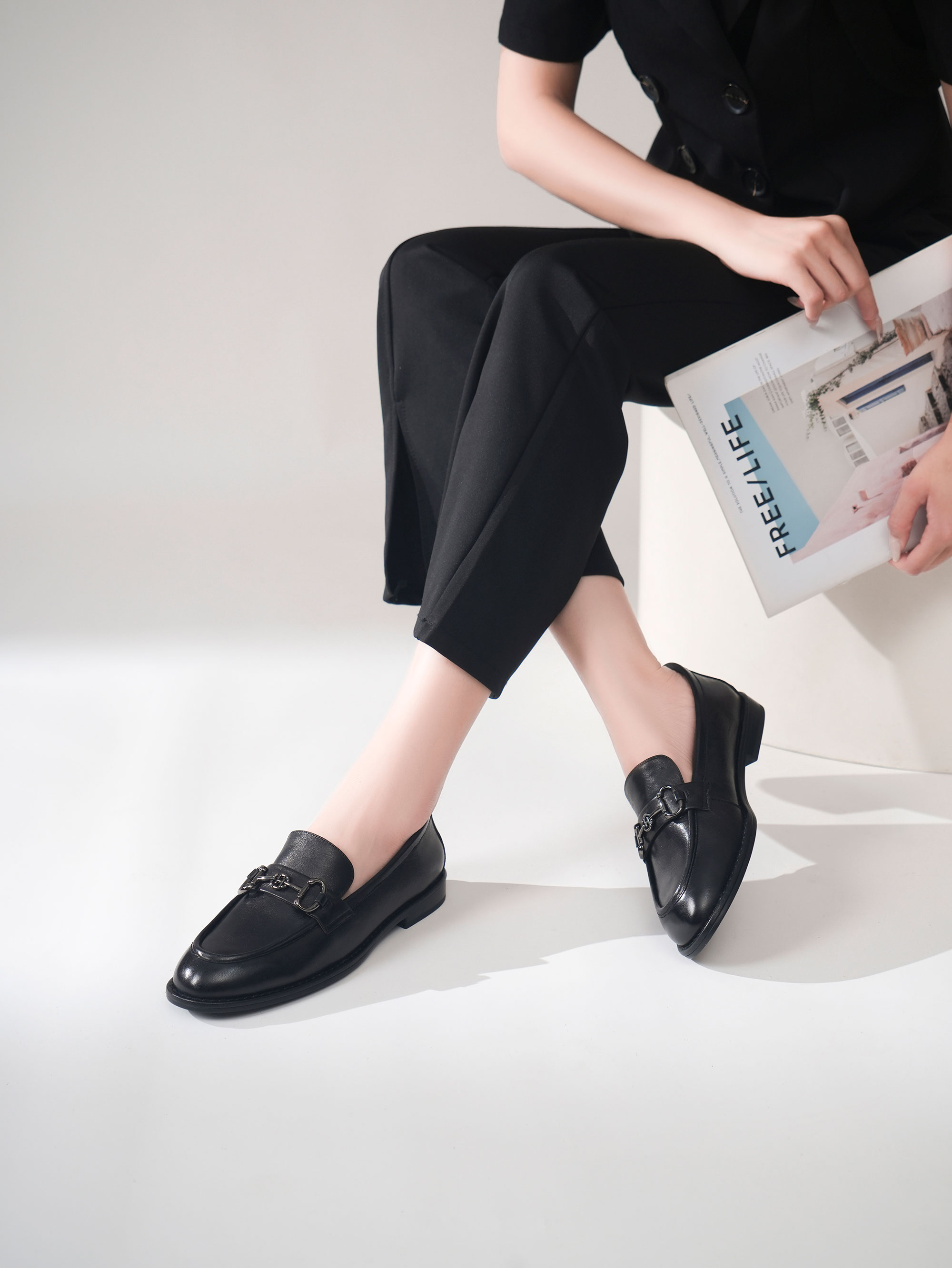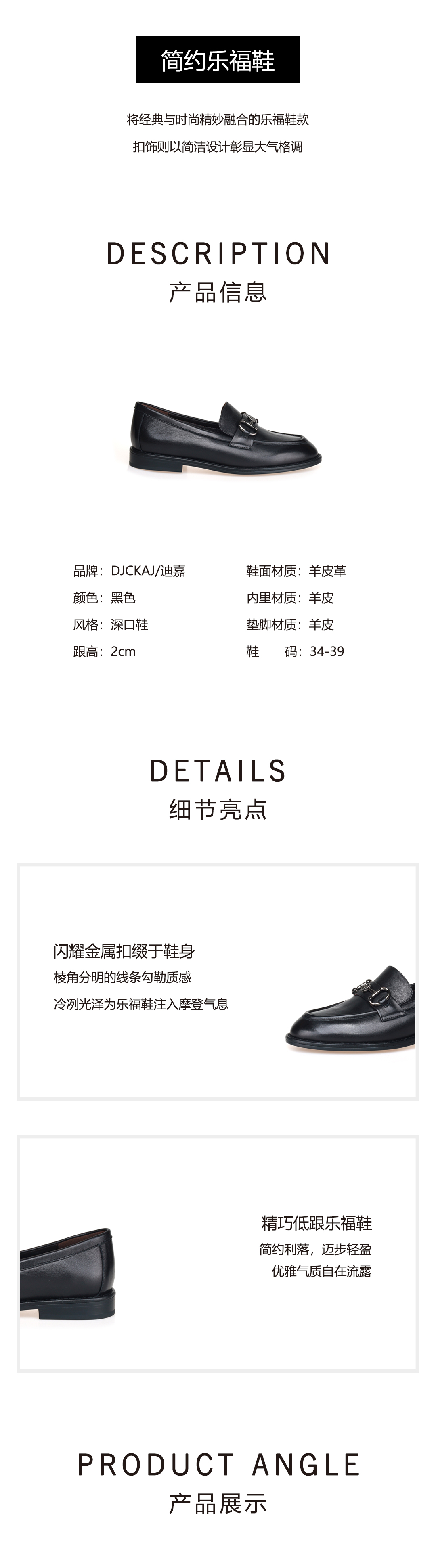 豪麟名鞋迪嘉女鞋乐福鞋羊皮革DJHJA52WS001黑色