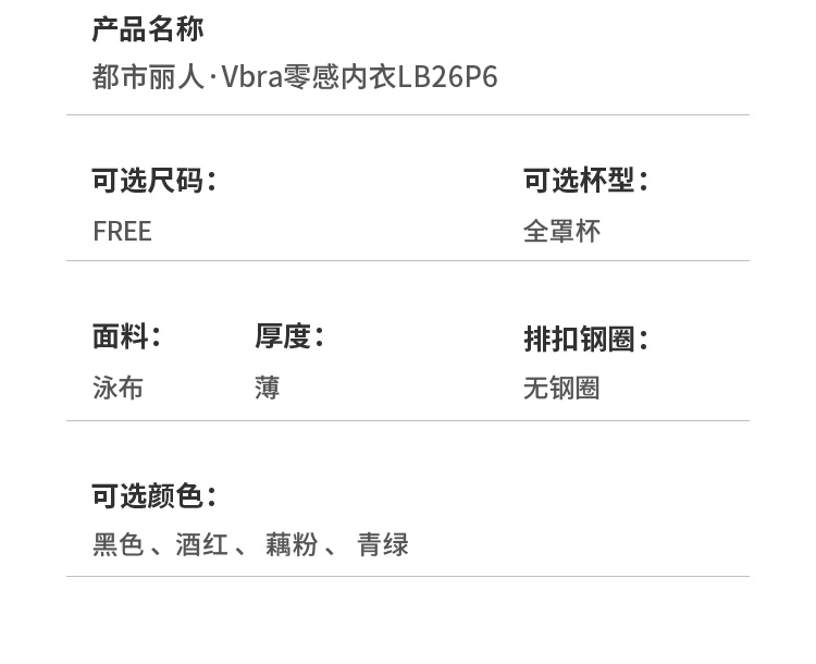 都市丽人Vbra无尺码内衣泳布薄背心式无排扣无钢圈LB26P6