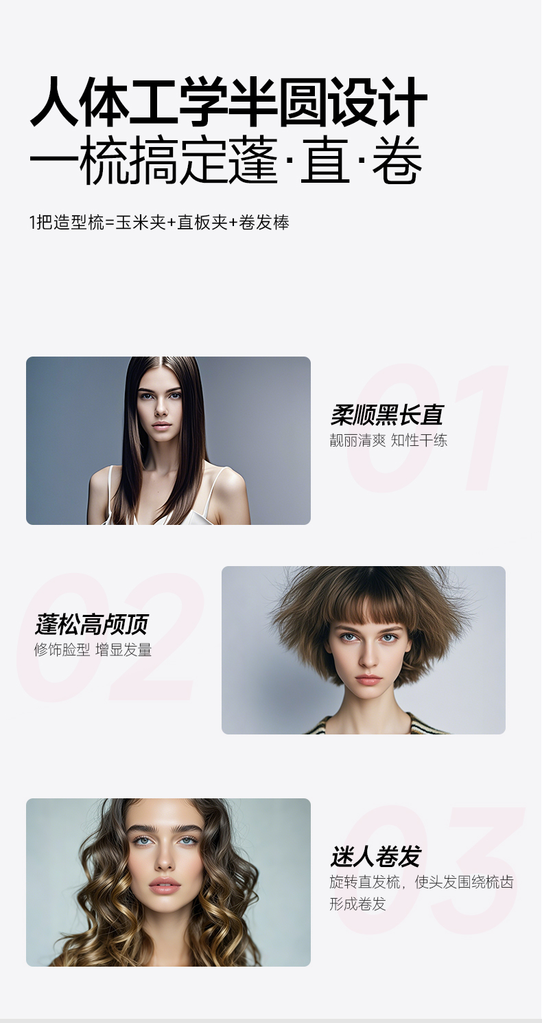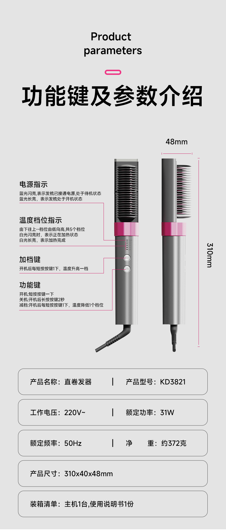 亿级负离子直发梳卷发棒卷直两用直发梳夹板护发梳子30s速热生日礼物
