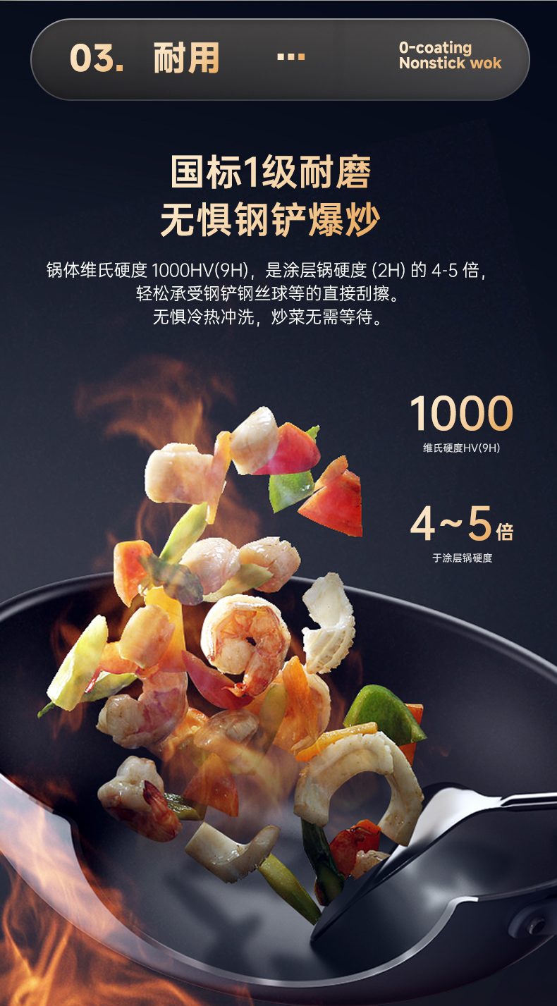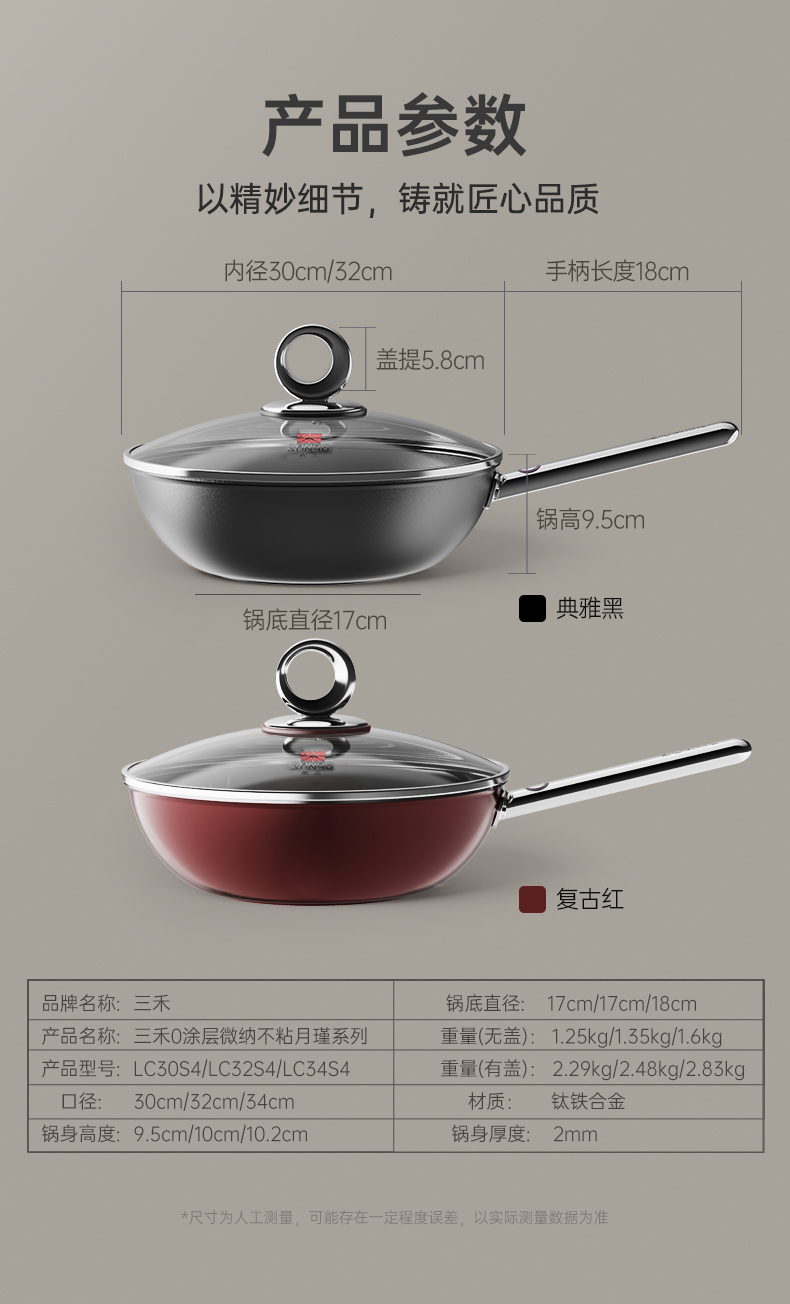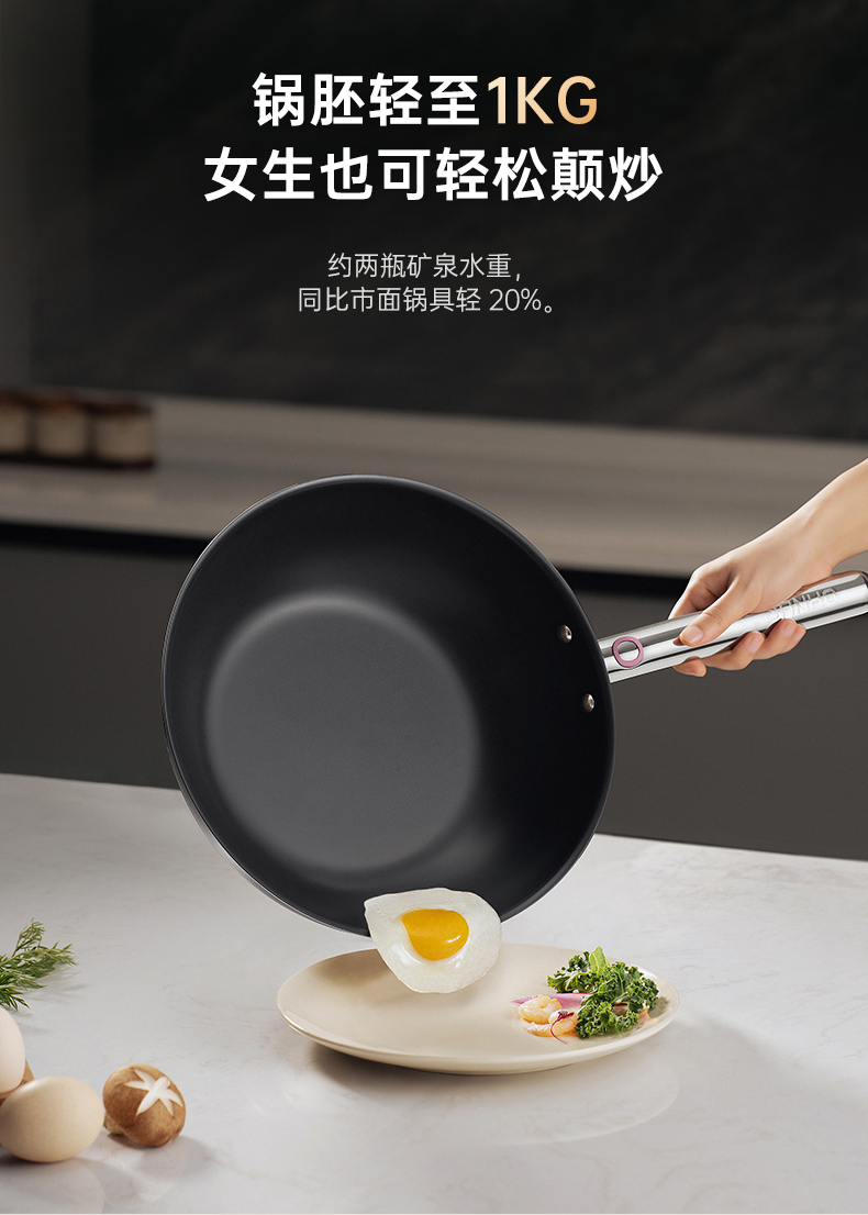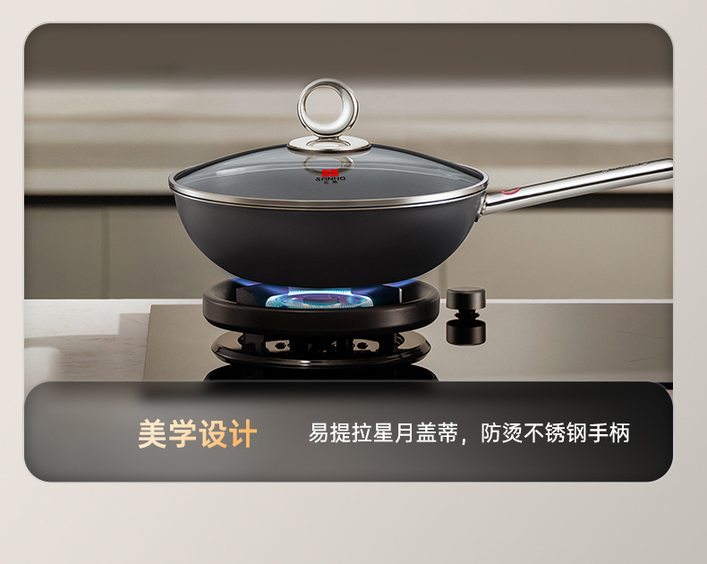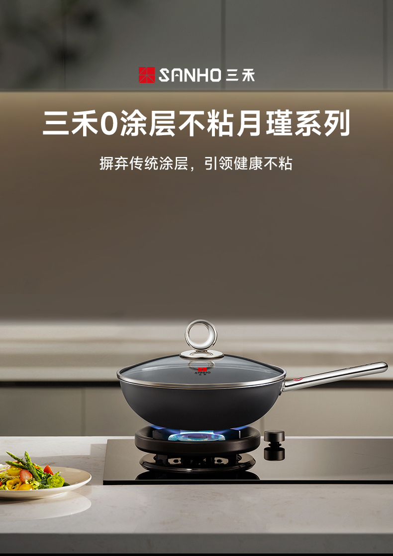 【清仓特惠5折】三禾月瑾系列0涂层炒锅32cm(典雅黑)