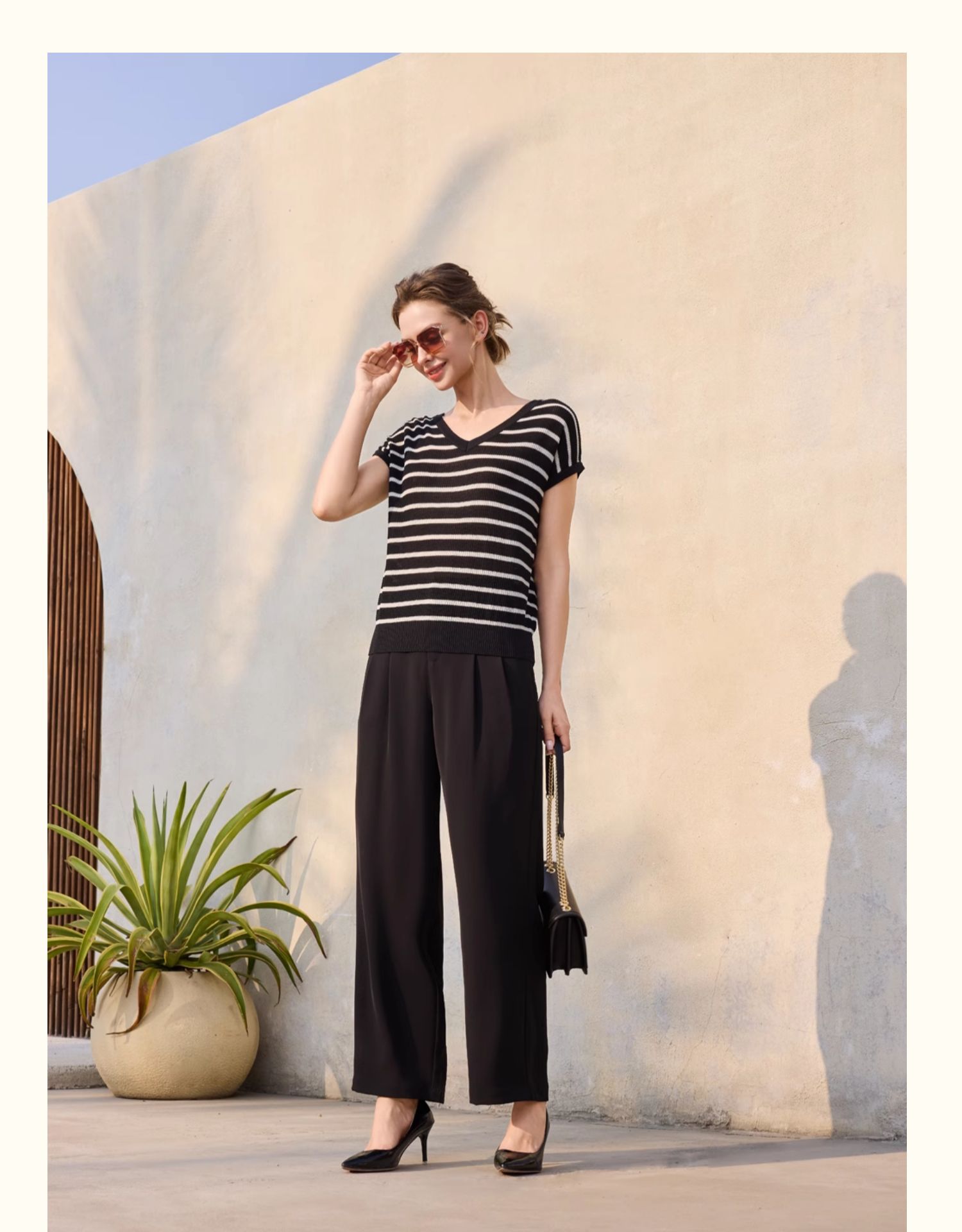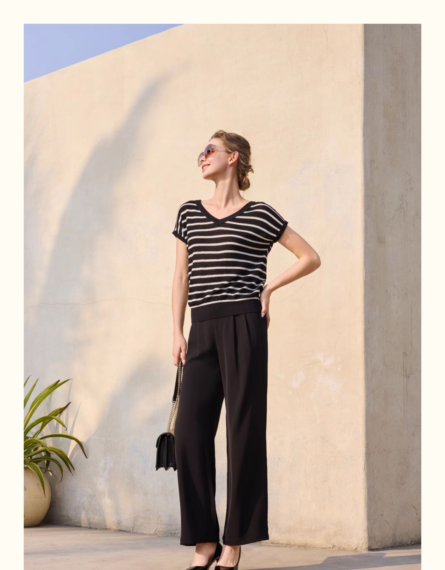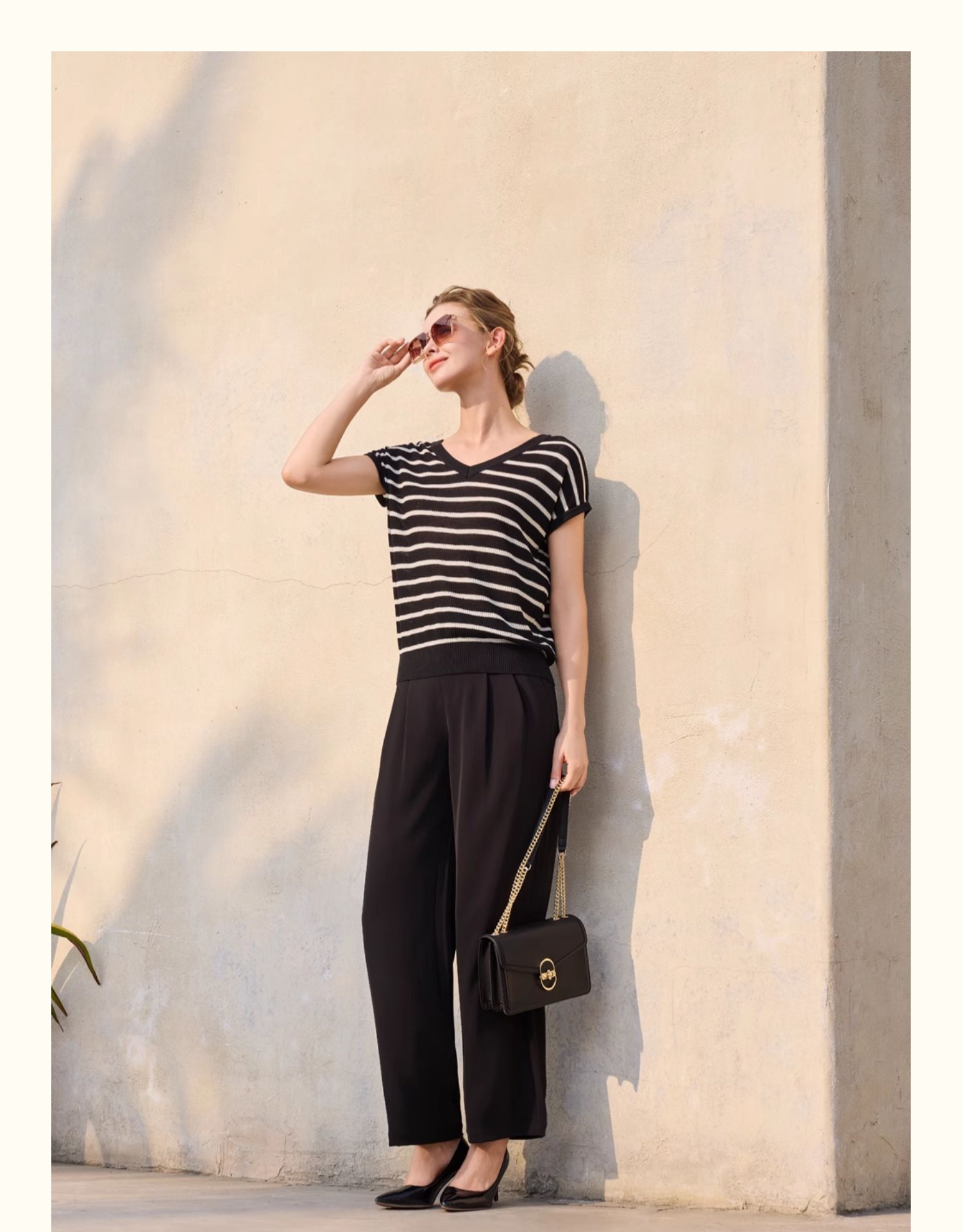 半身缘女裤 夏季丝滑宽松中直筒半松紧腰休闲裤252102E10302832