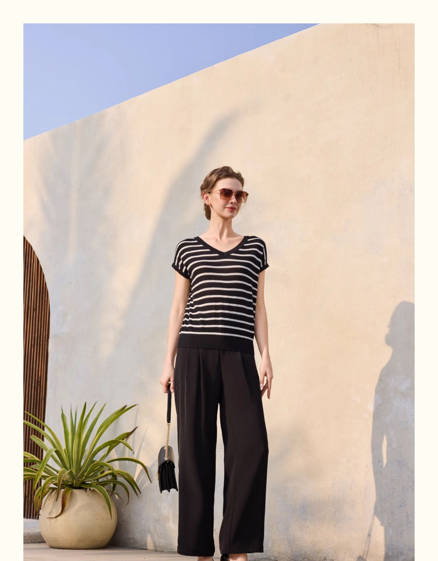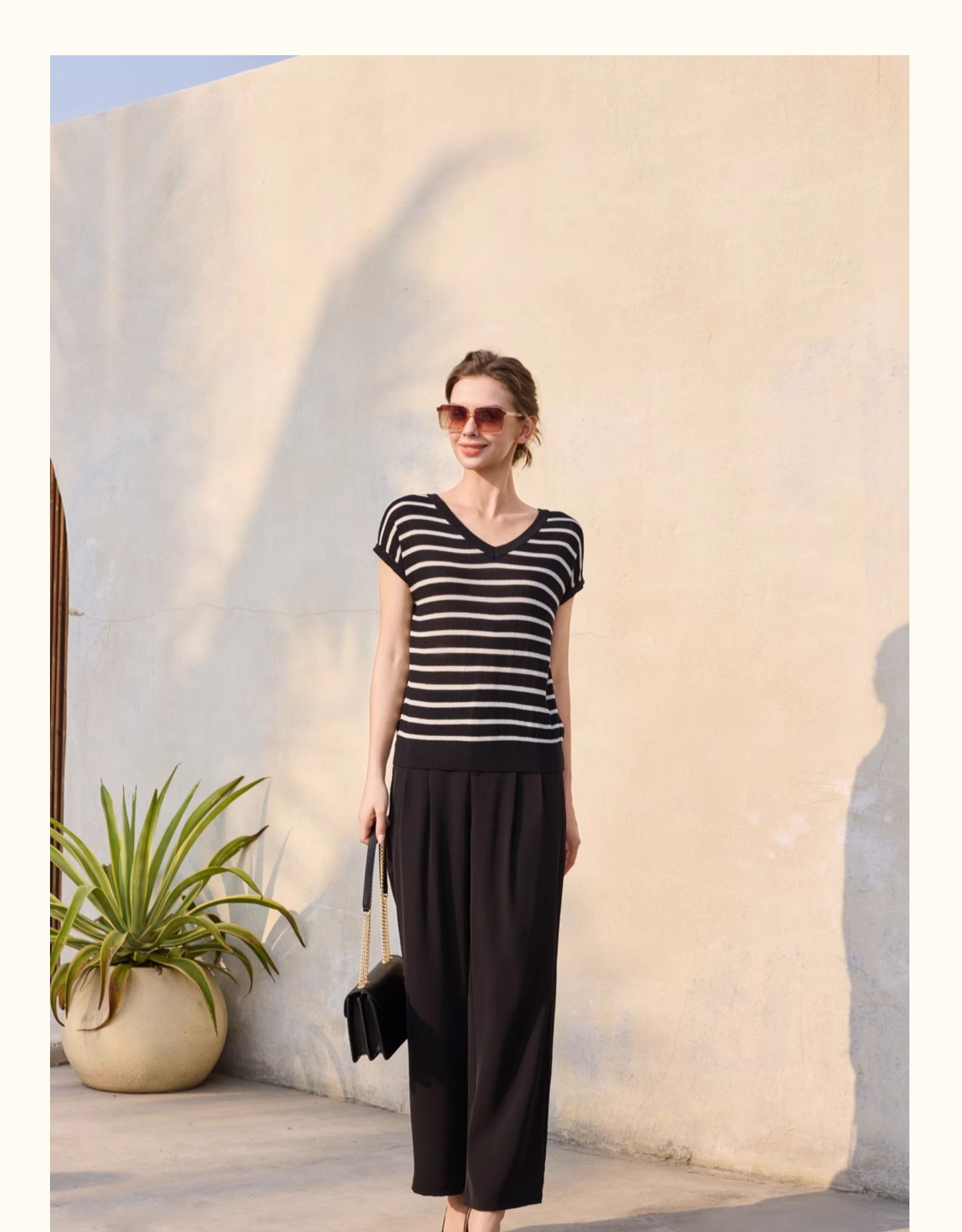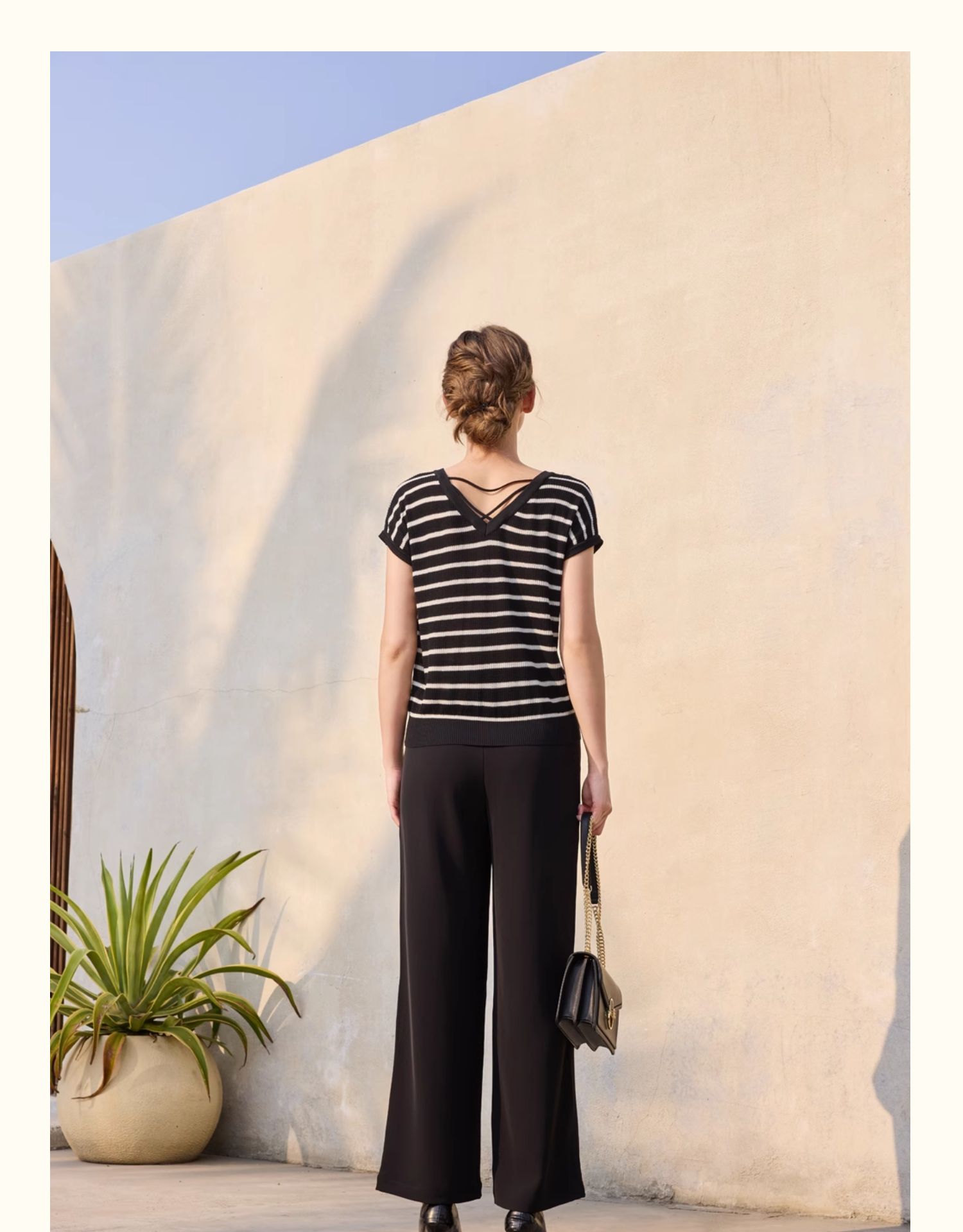 半身缘女裤 夏季丝滑宽松中直筒半松紧腰休闲裤252102E10302832