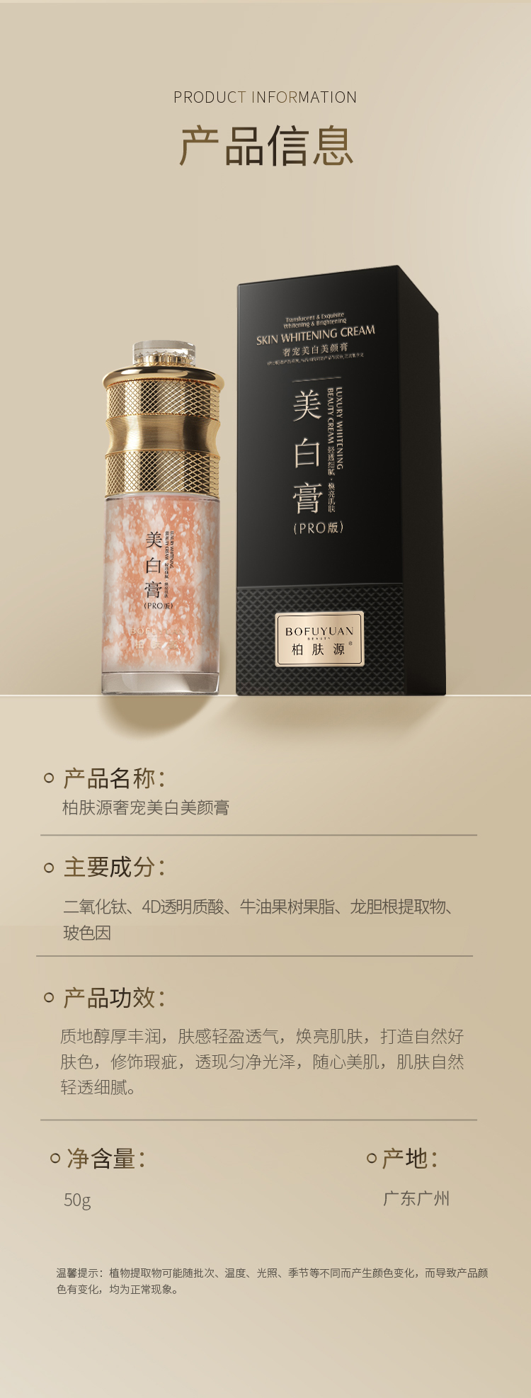 【养肤修颜 一扫暗沉】柏肤源 奢宠美白美颜膏(pro)