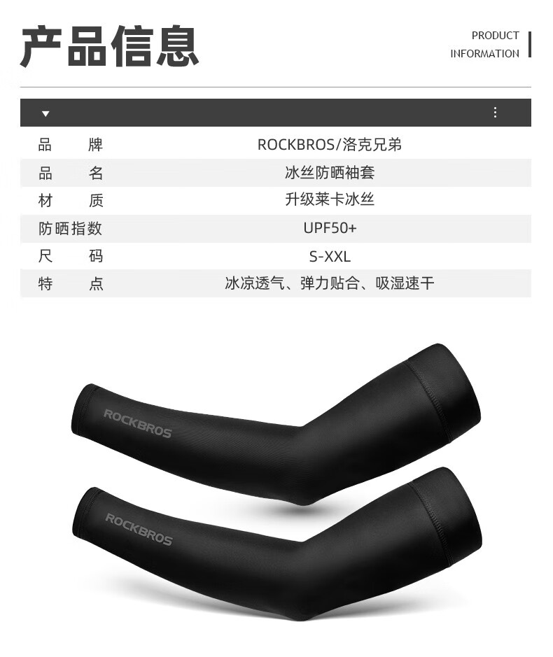 洛克兄弟(ROCKBROS) 冰丝袖套防晒男女士长款薄套袖护臂护肘护腕骑行袖套