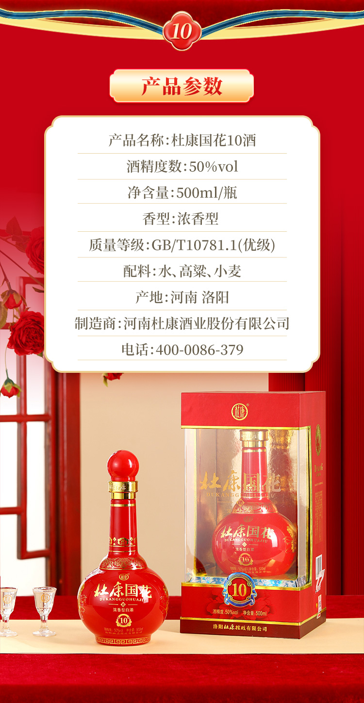 【21年日期】杜康国花10酒50度500ml*6瓶浓香型白酒喜宴用酒