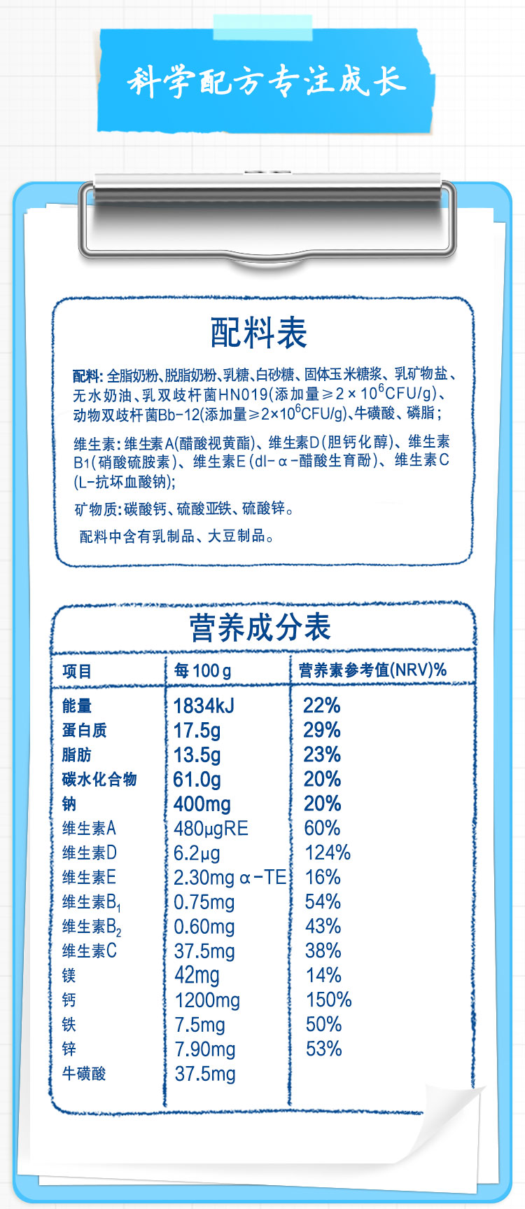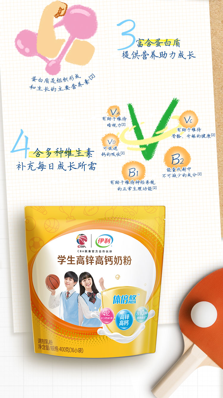 伊利学生高锌高钙奶粉400g
