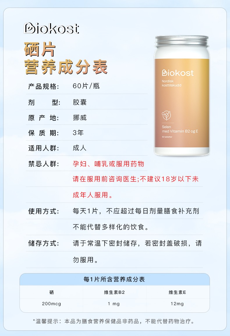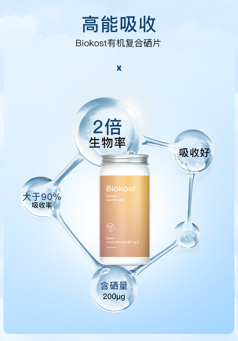 Biokost挪威进口有机硒复合咀嚼片元素硒蛋氨酸非麦芽硒