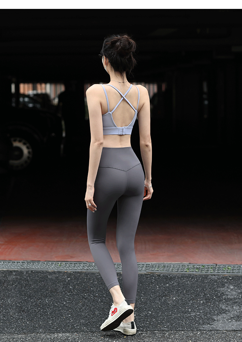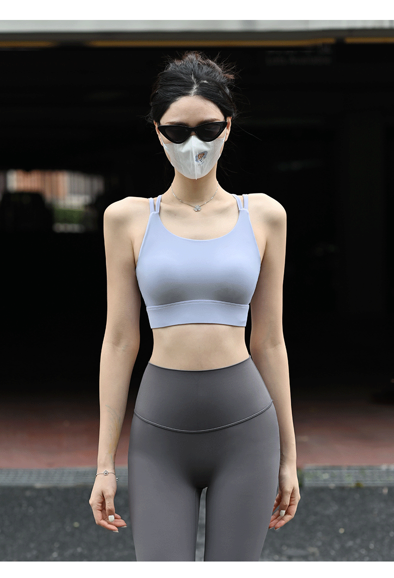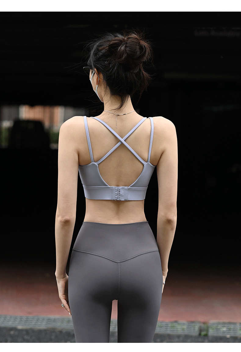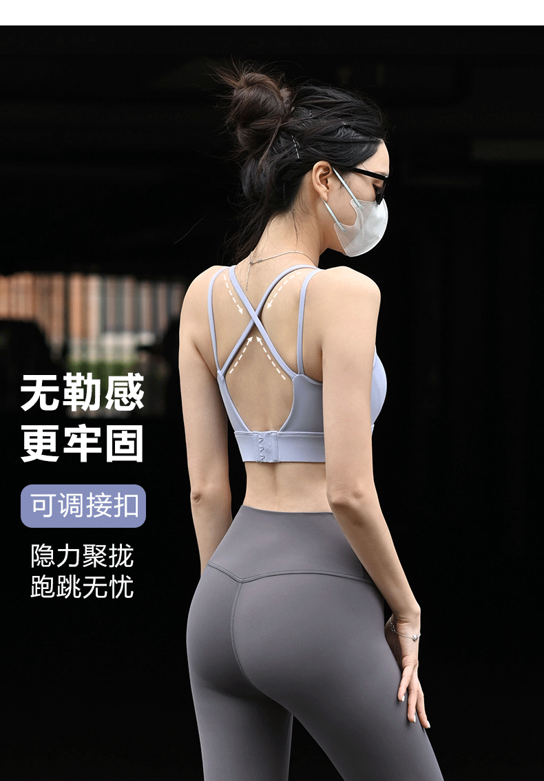 Beemen固定杯瑜伽背心 中高强度运动内衣交叉美背一体式瑜伽文胸