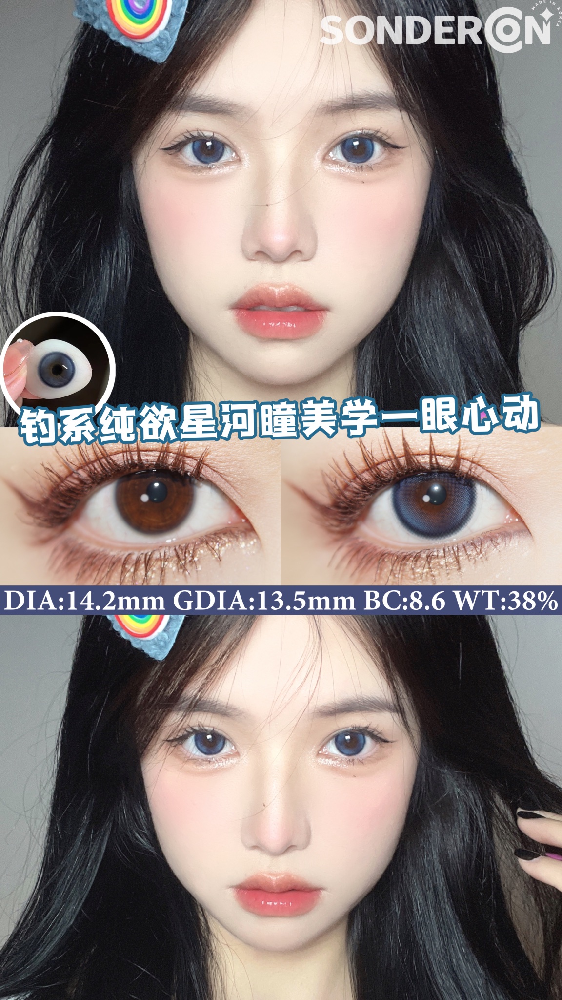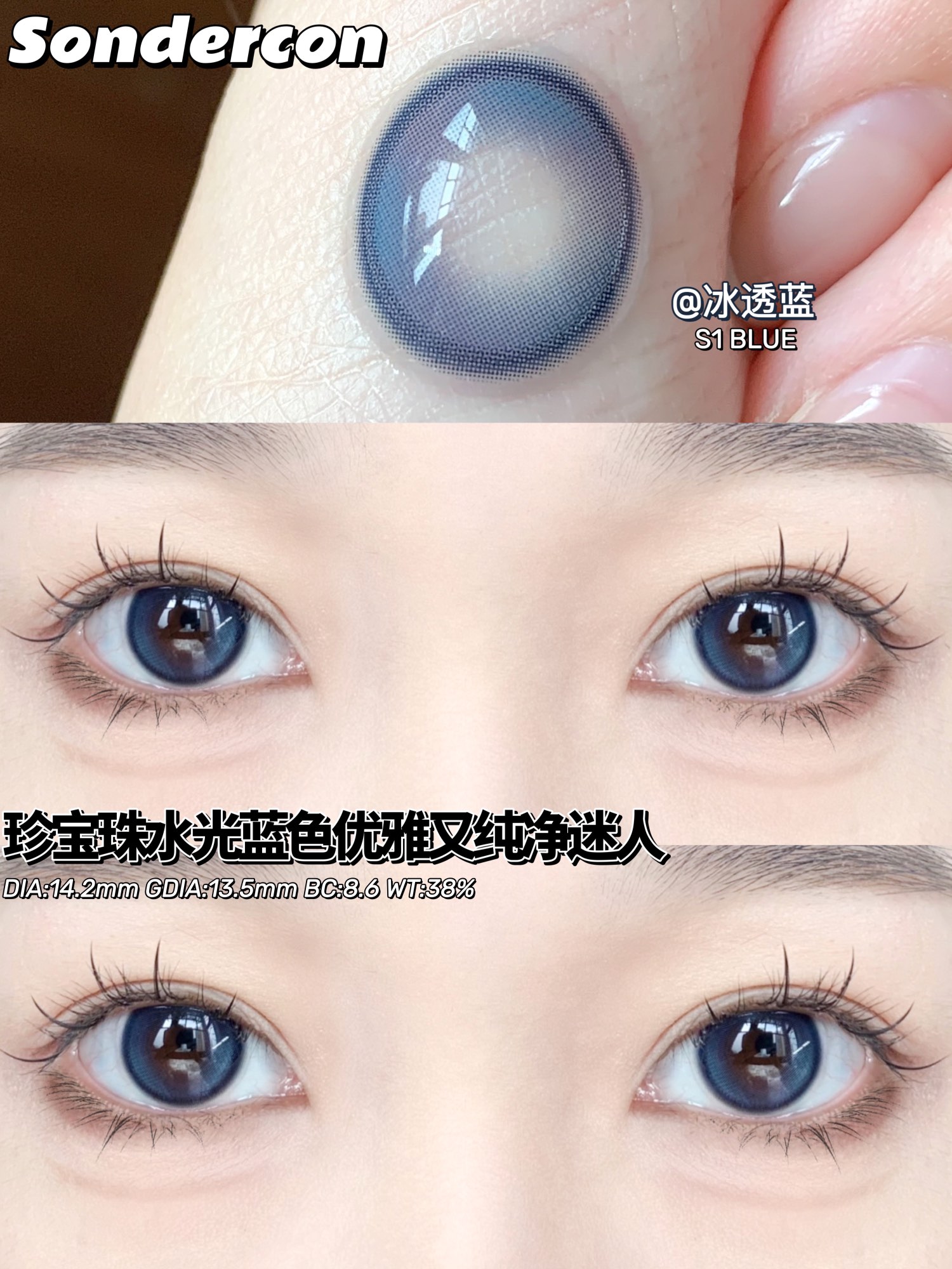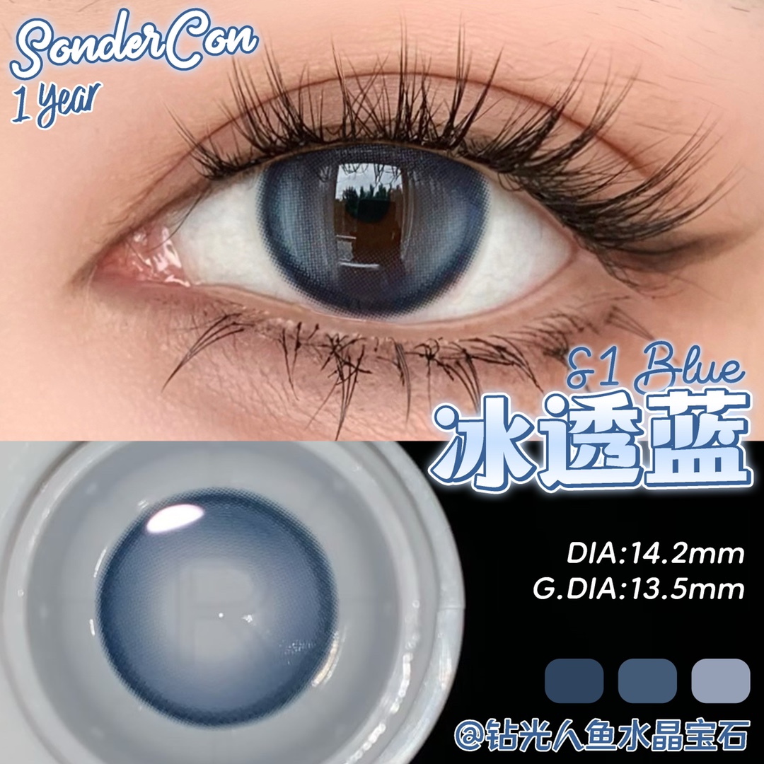年抛 款式名字:冰透蓝 Sondercon | 中直径14.2 着色13.5 | 【同品牌多副更划算,选款色板在详情页内,记得下滑】蓝色美瞳