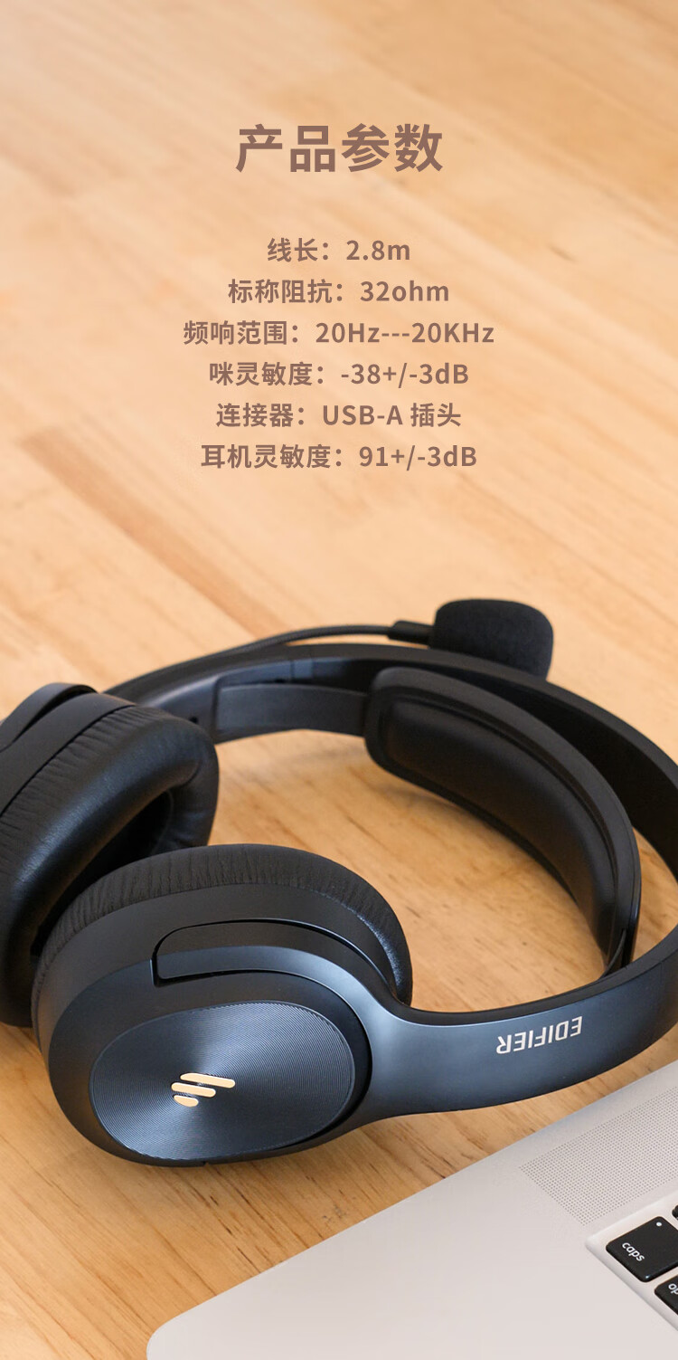 漫步者 (EDIFIER) USB K5000 专业考试耳机 头戴式电脑耳麦