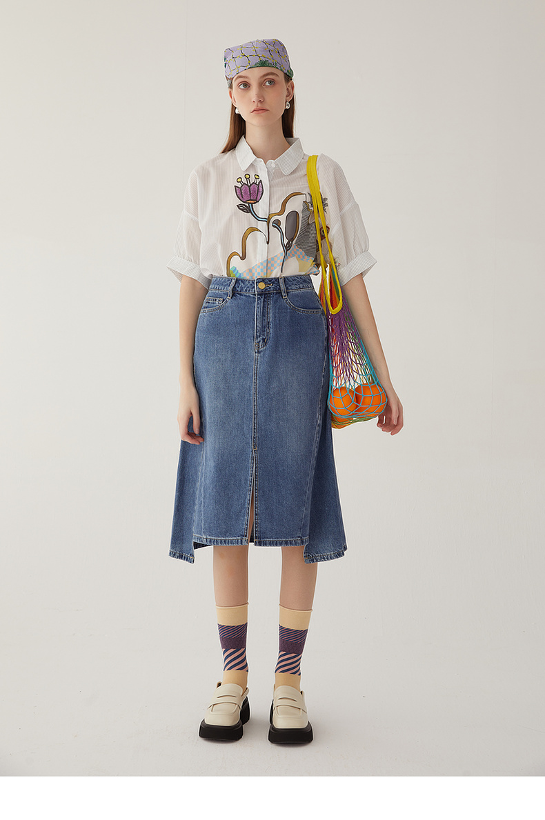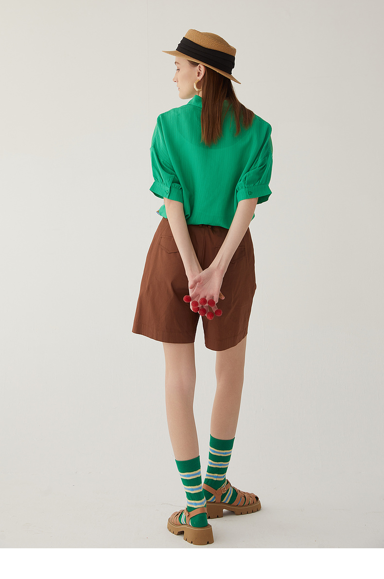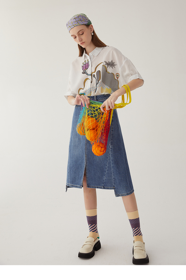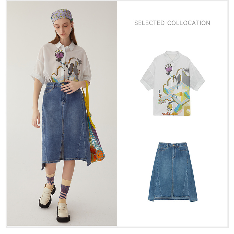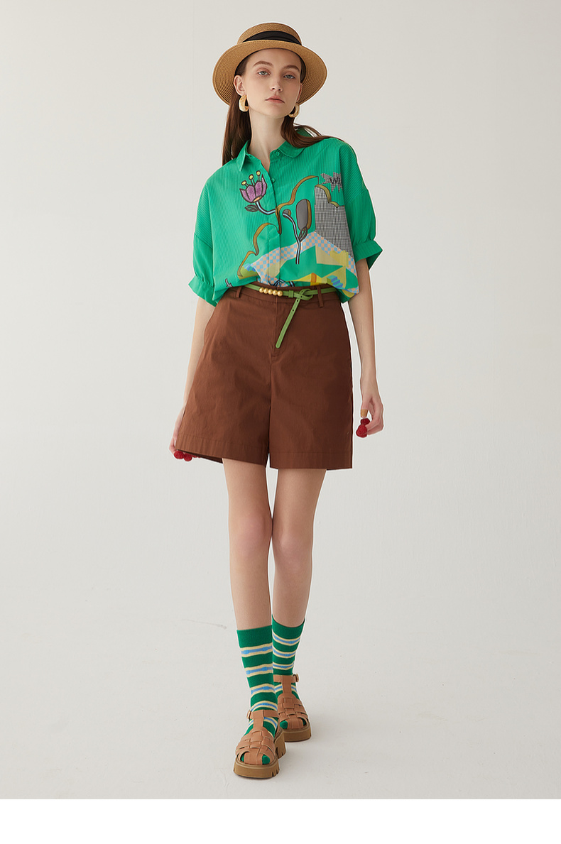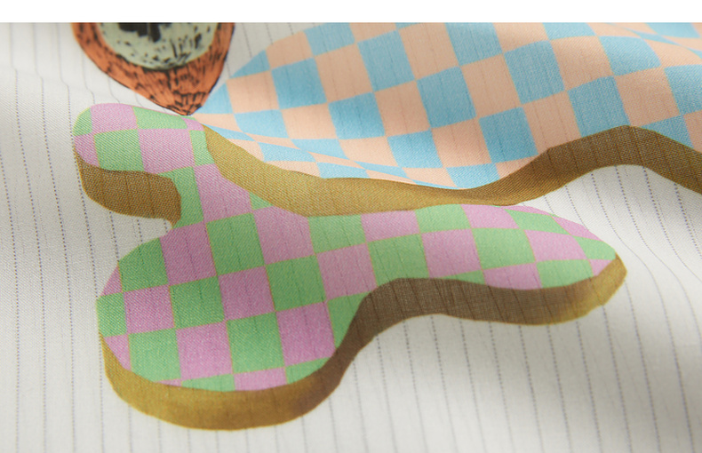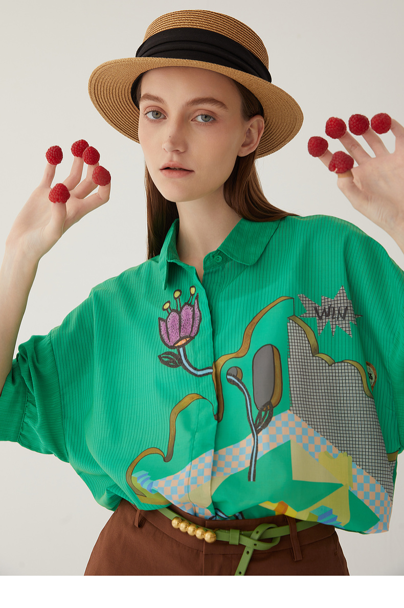 谜底大廓形印花衬衫五分袖女2024夏款oversize落肩衬衣246MC7008