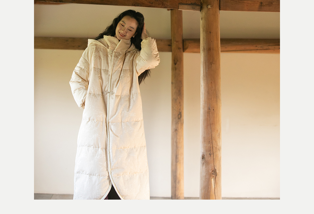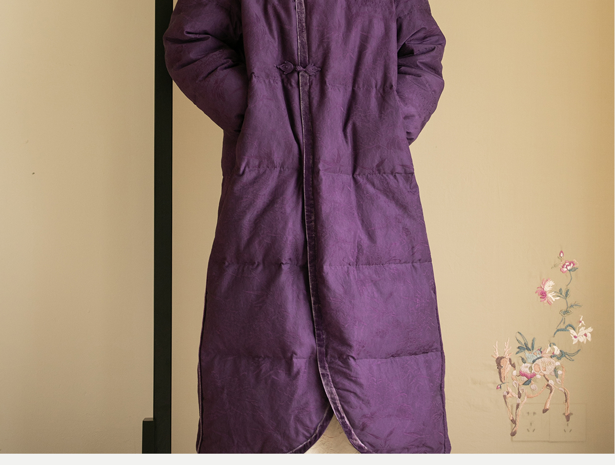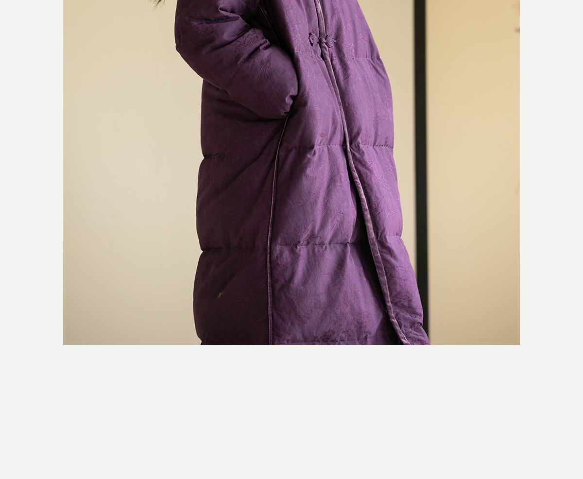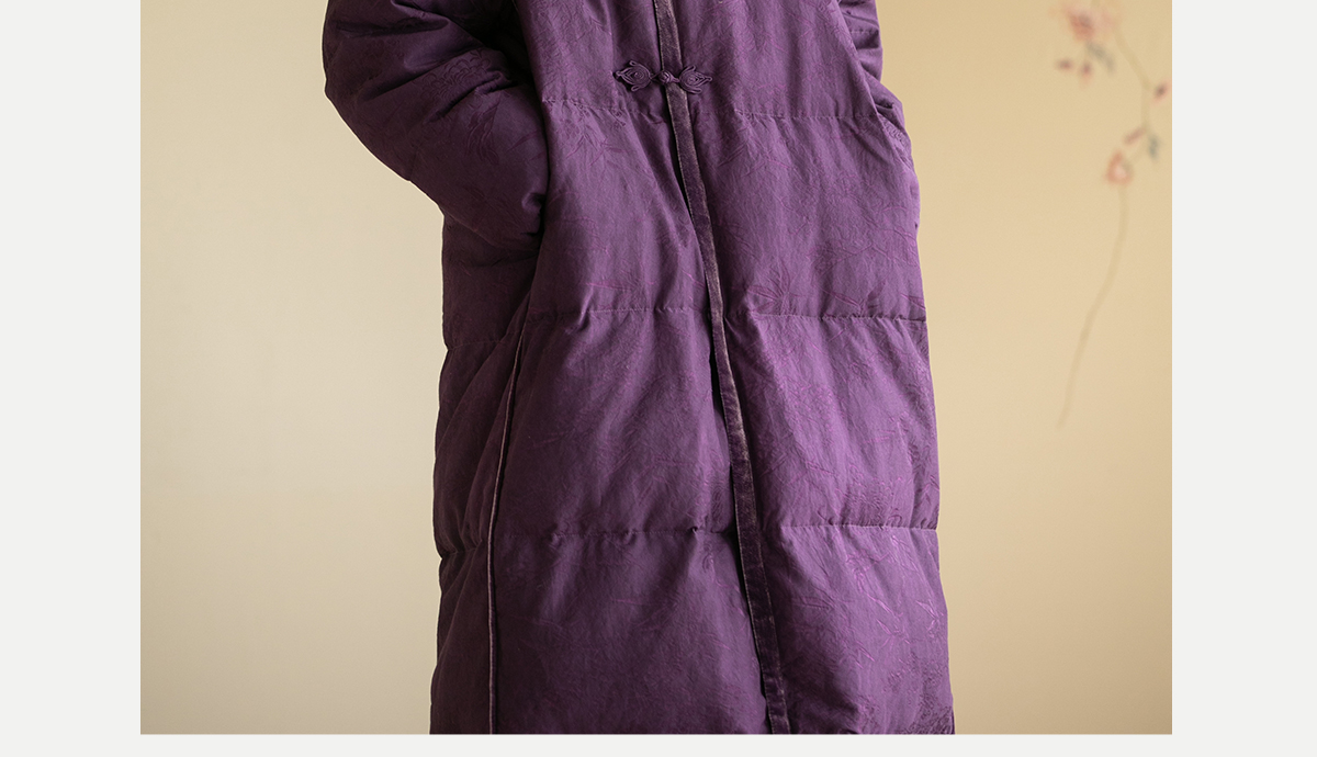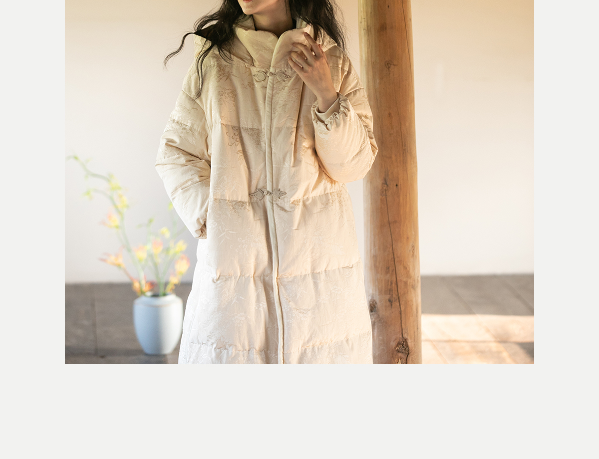 牧衣游原创炒色丝棉提花长羽绒服新款加厚抗寒蓬松保暖外套 梅花