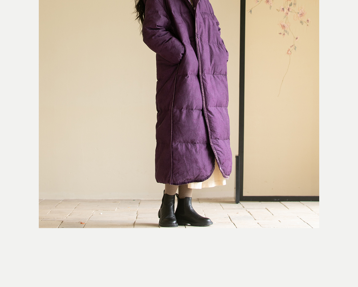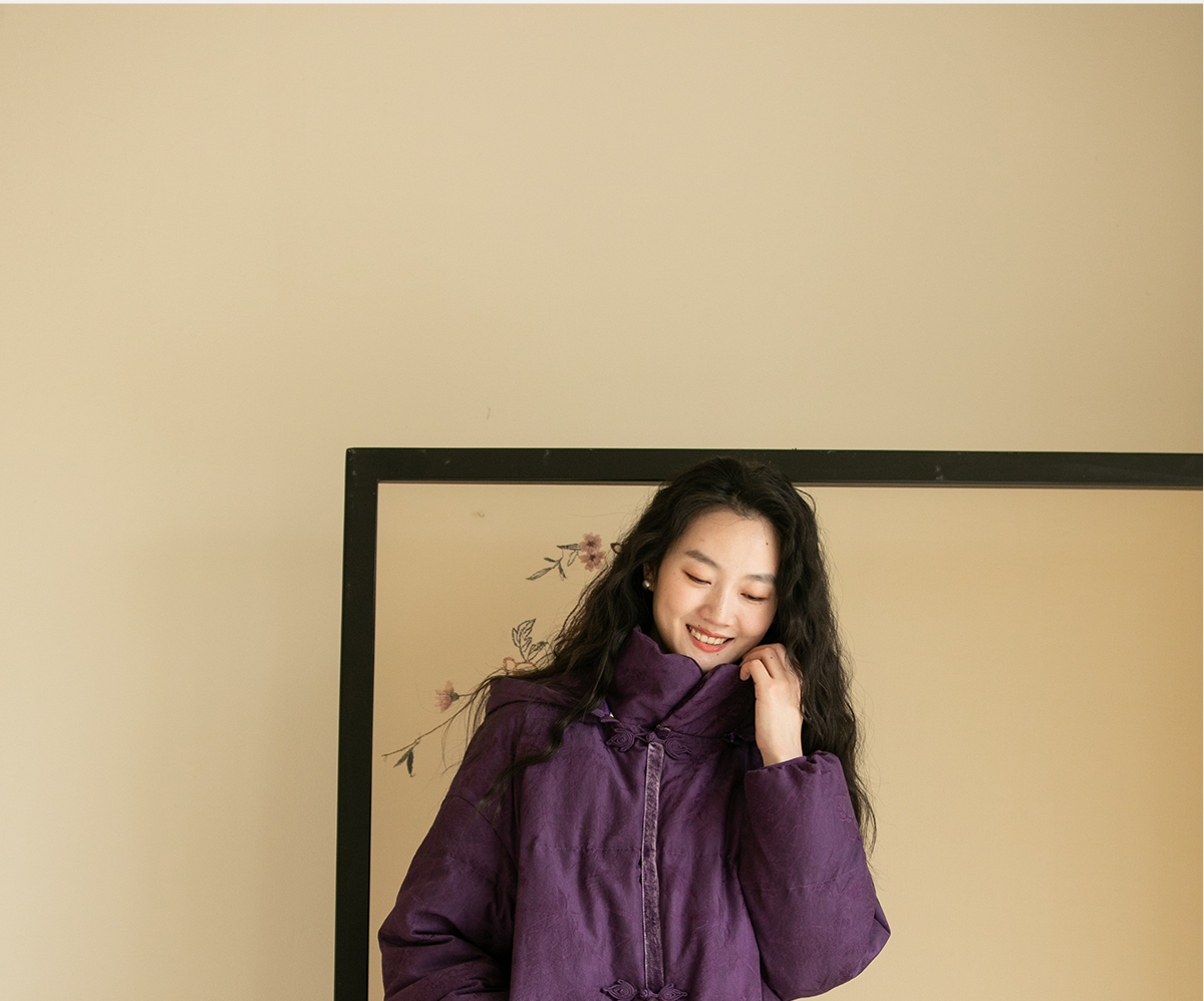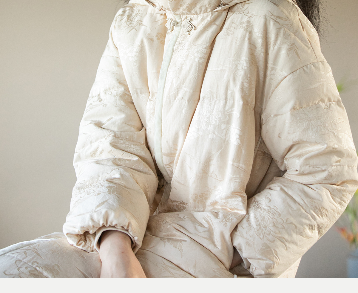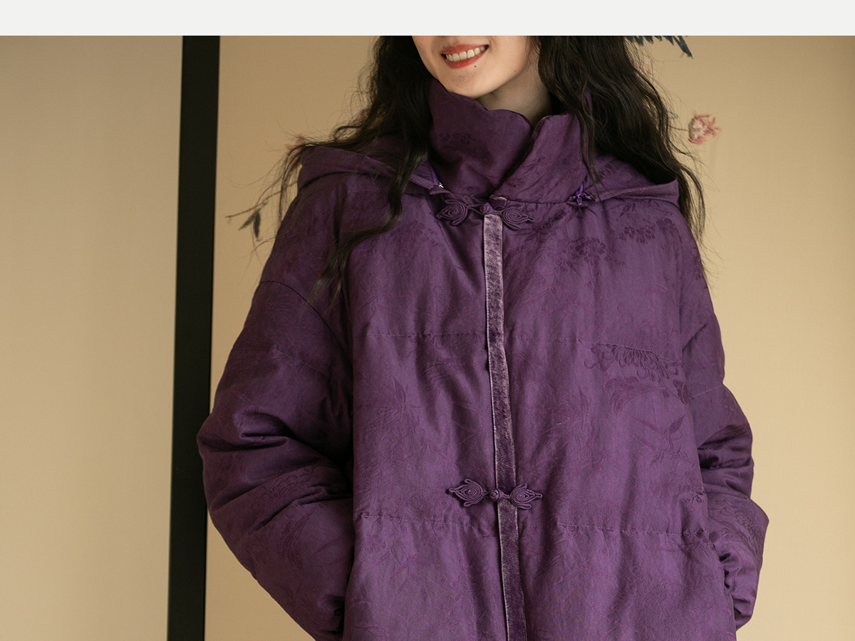 牧衣游原创炒色丝棉提花长羽绒服新款加厚抗寒蓬松保暖外套 梅花