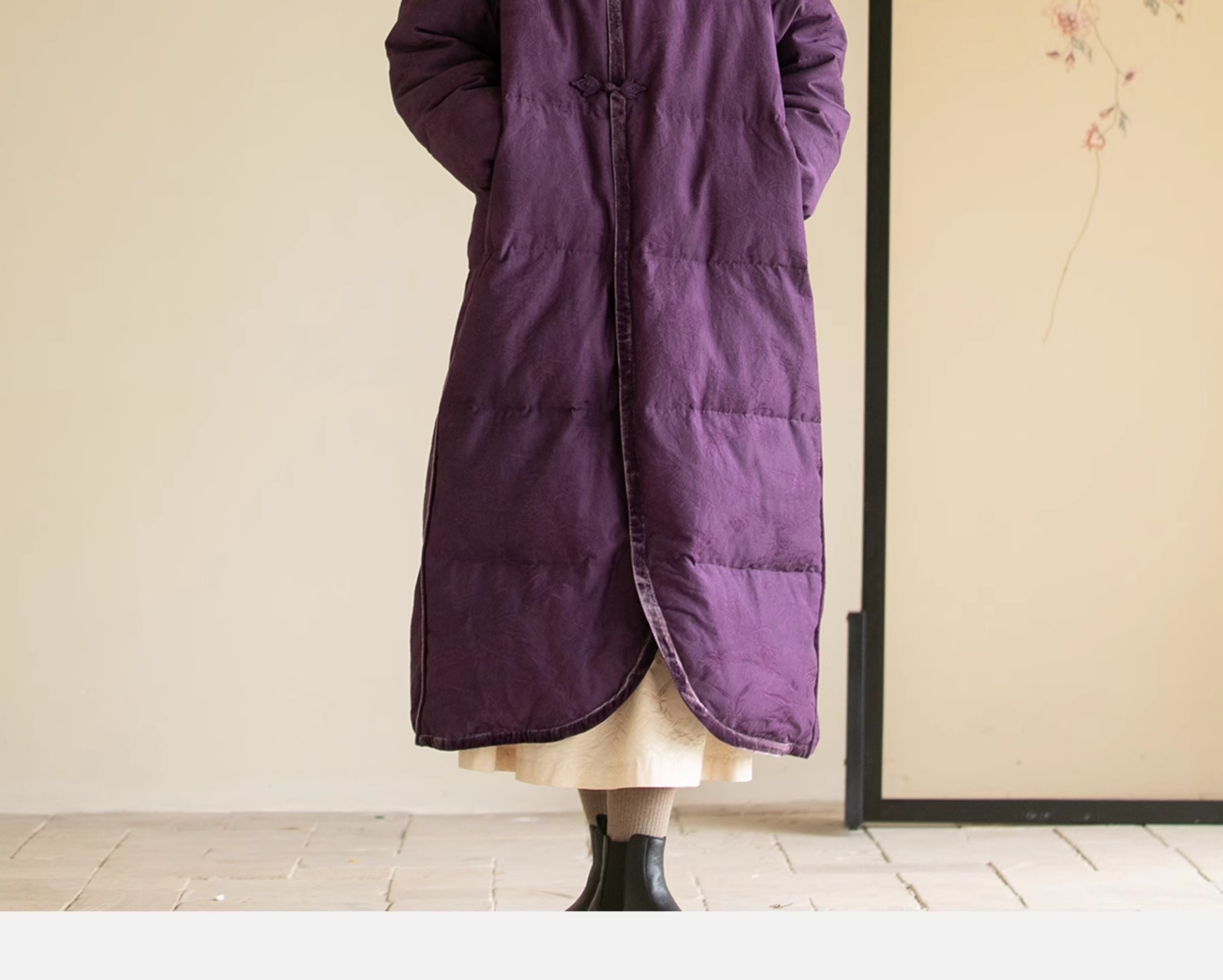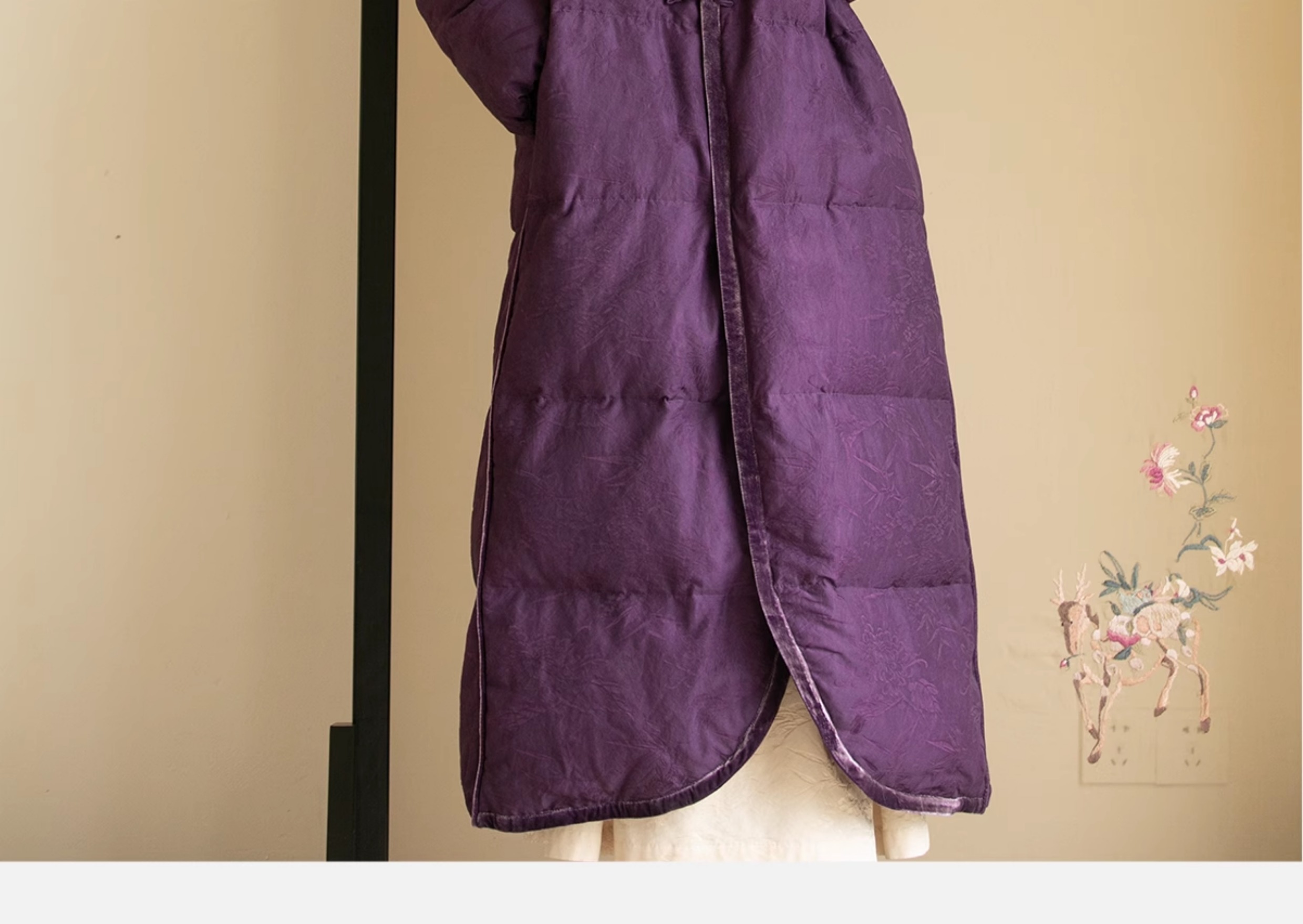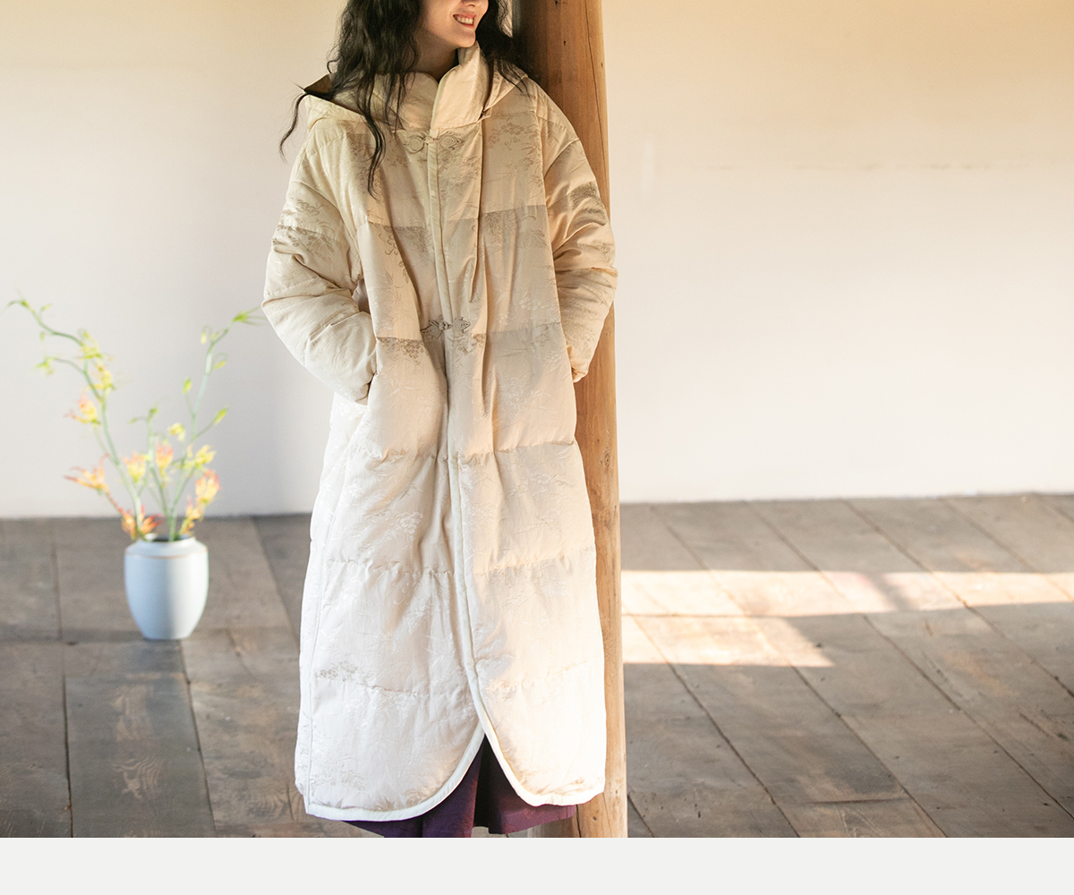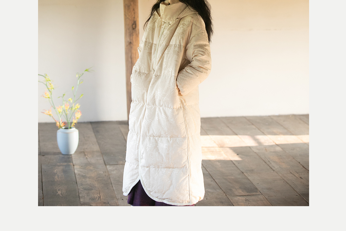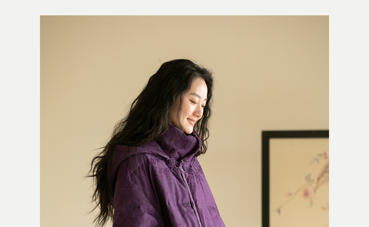 牧衣游原创炒色丝棉提花长羽绒服新款加厚抗寒蓬松保暖外套 梅花