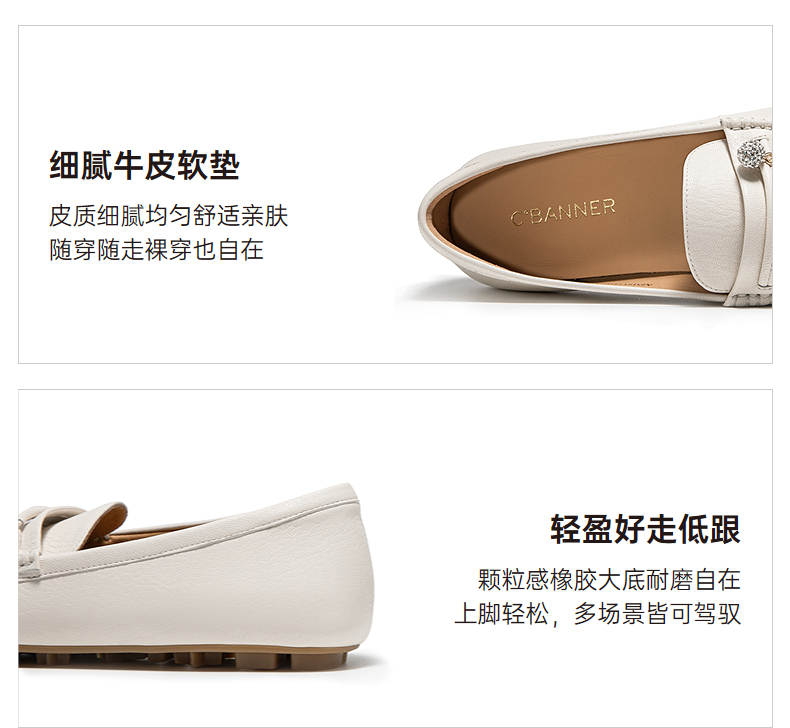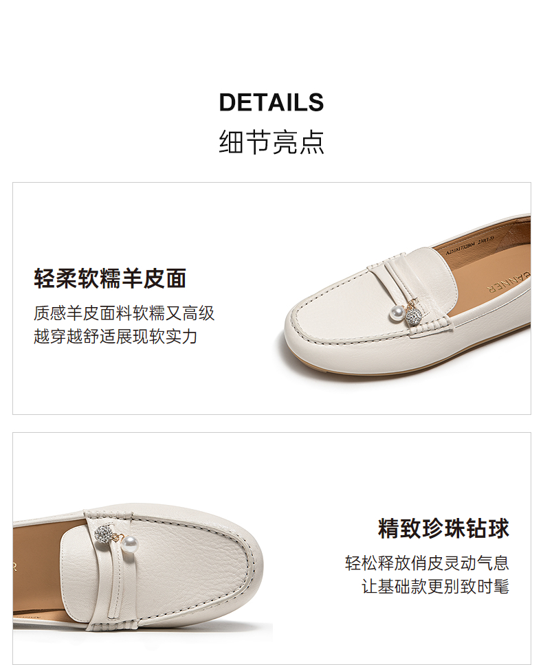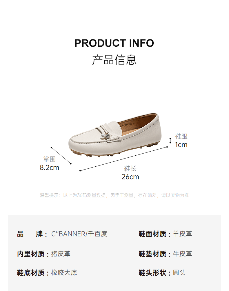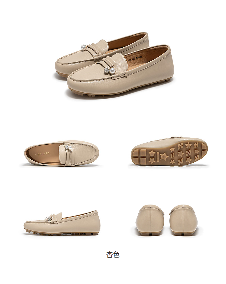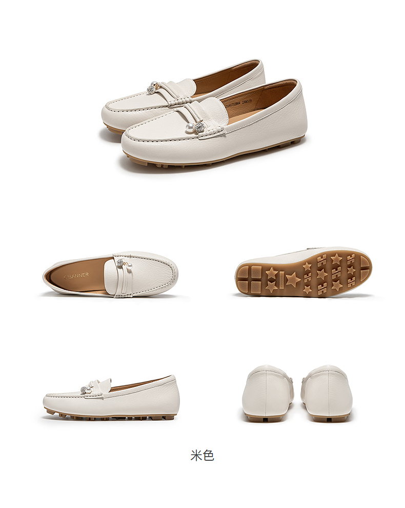 千百度羊皮轻便豆豆鞋女款通勤小皮鞋上班舒适乐福鞋A25181732