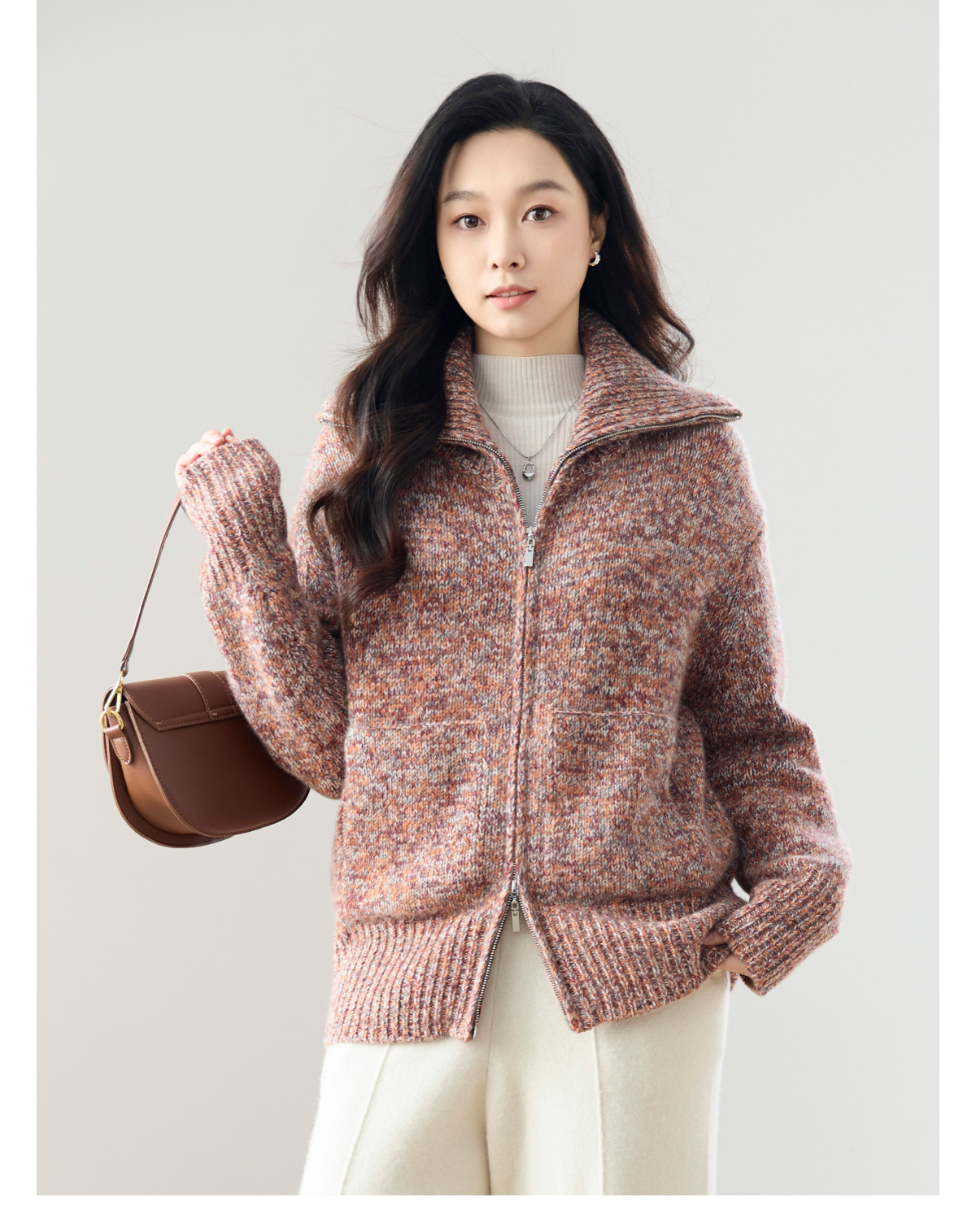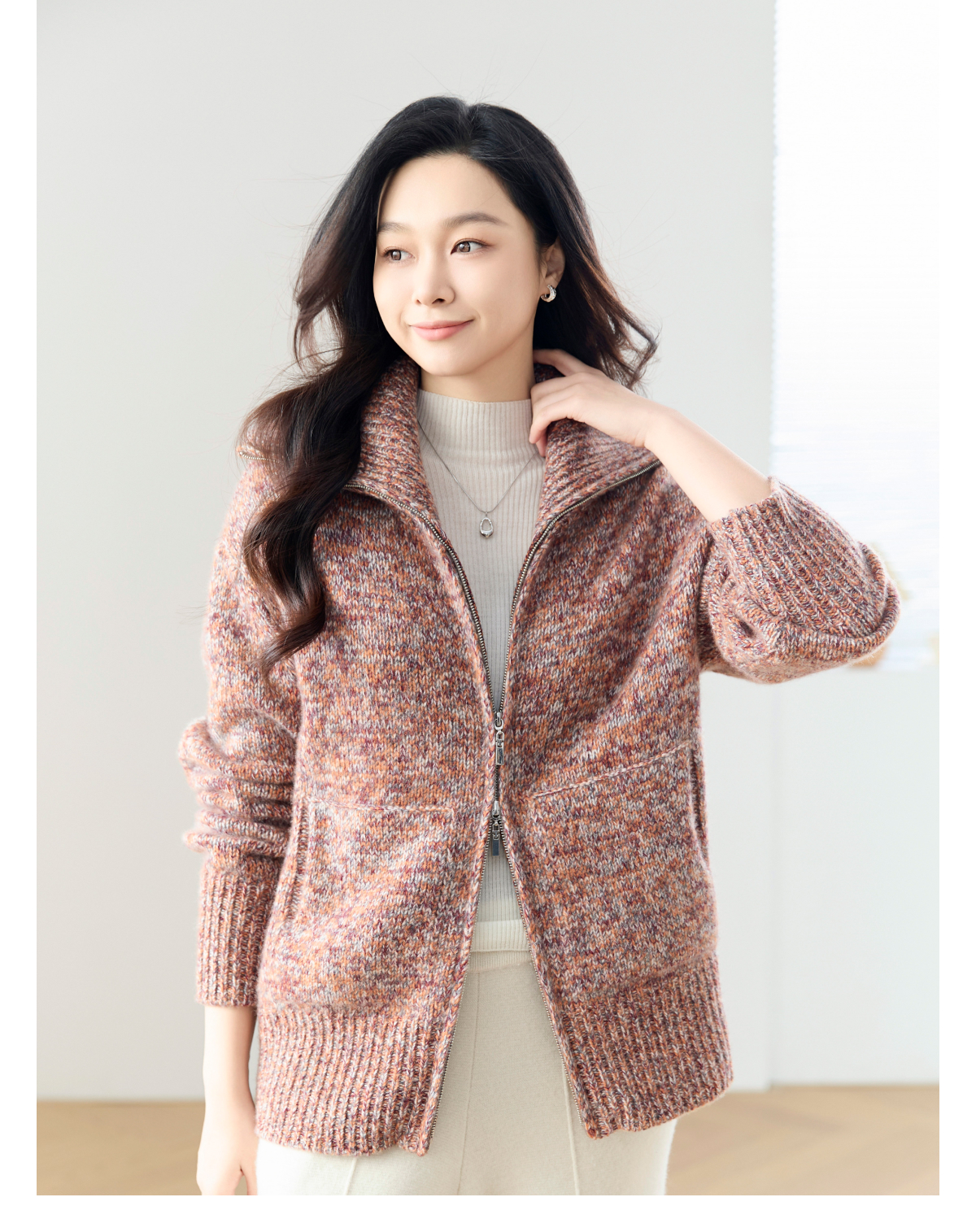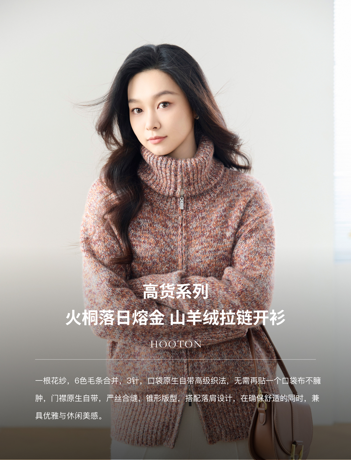 火桐hooton 高货系列 落日熔金 山羊绒拉链开衫24A672