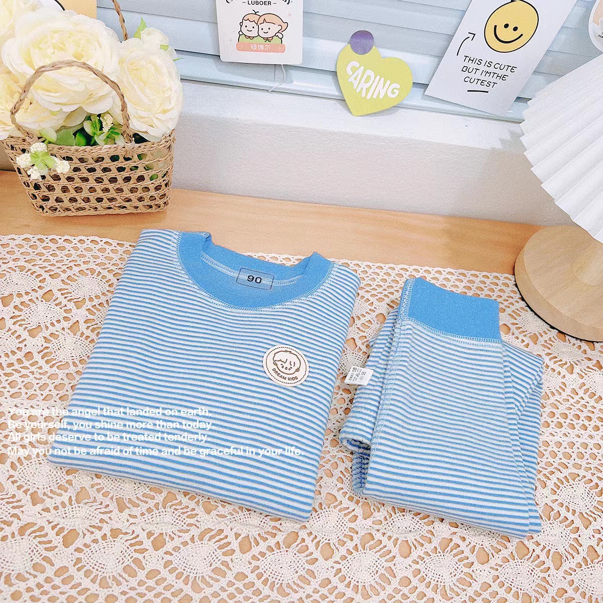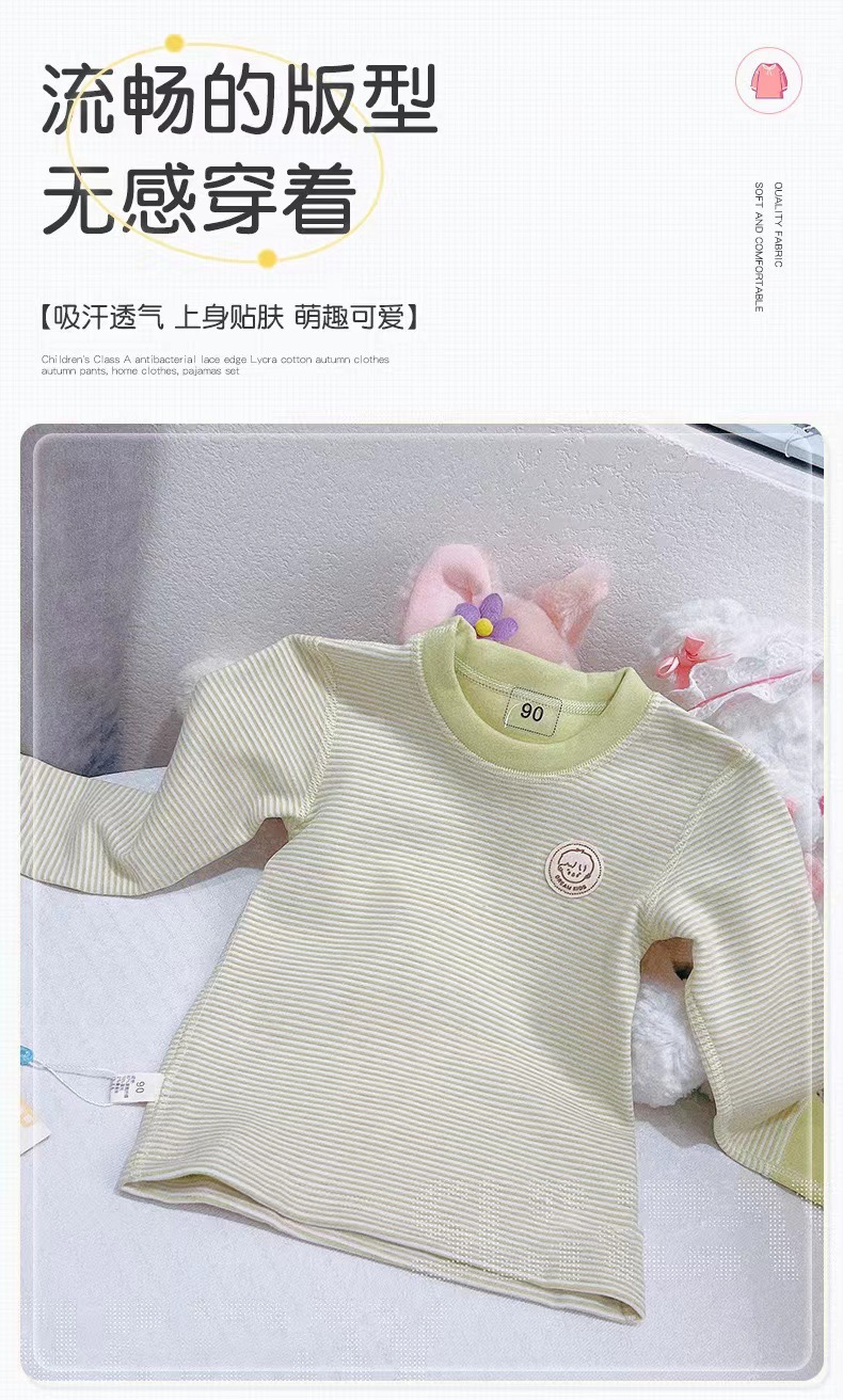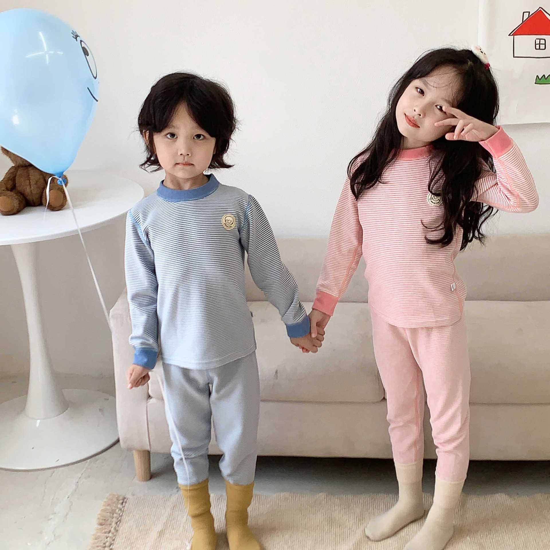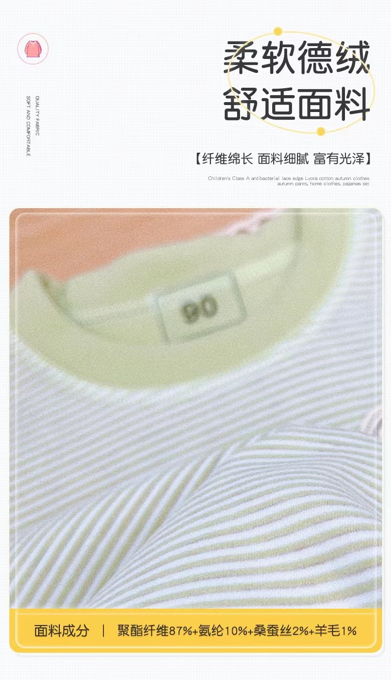 儿童条纹无骨保暖衣套装男女童德绒高领秋衣秋裤宝宝家居服睡