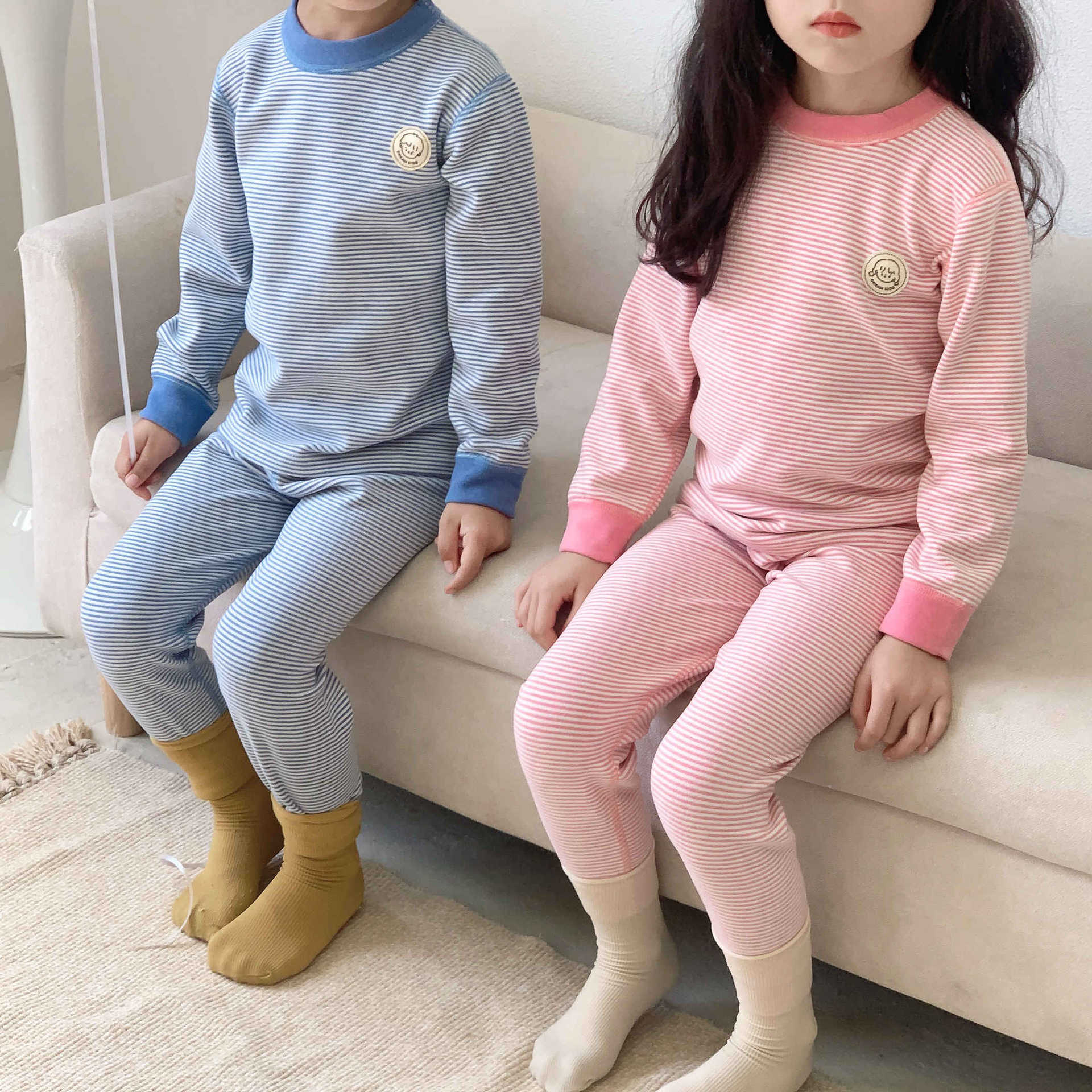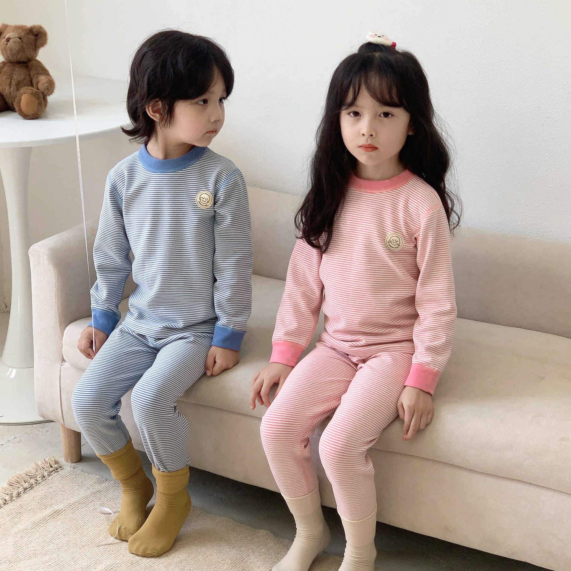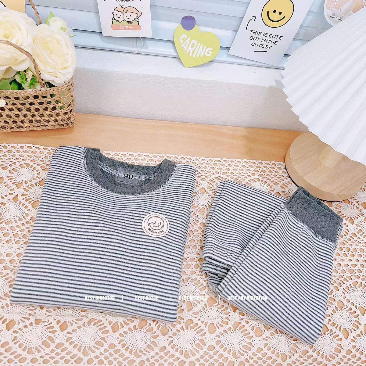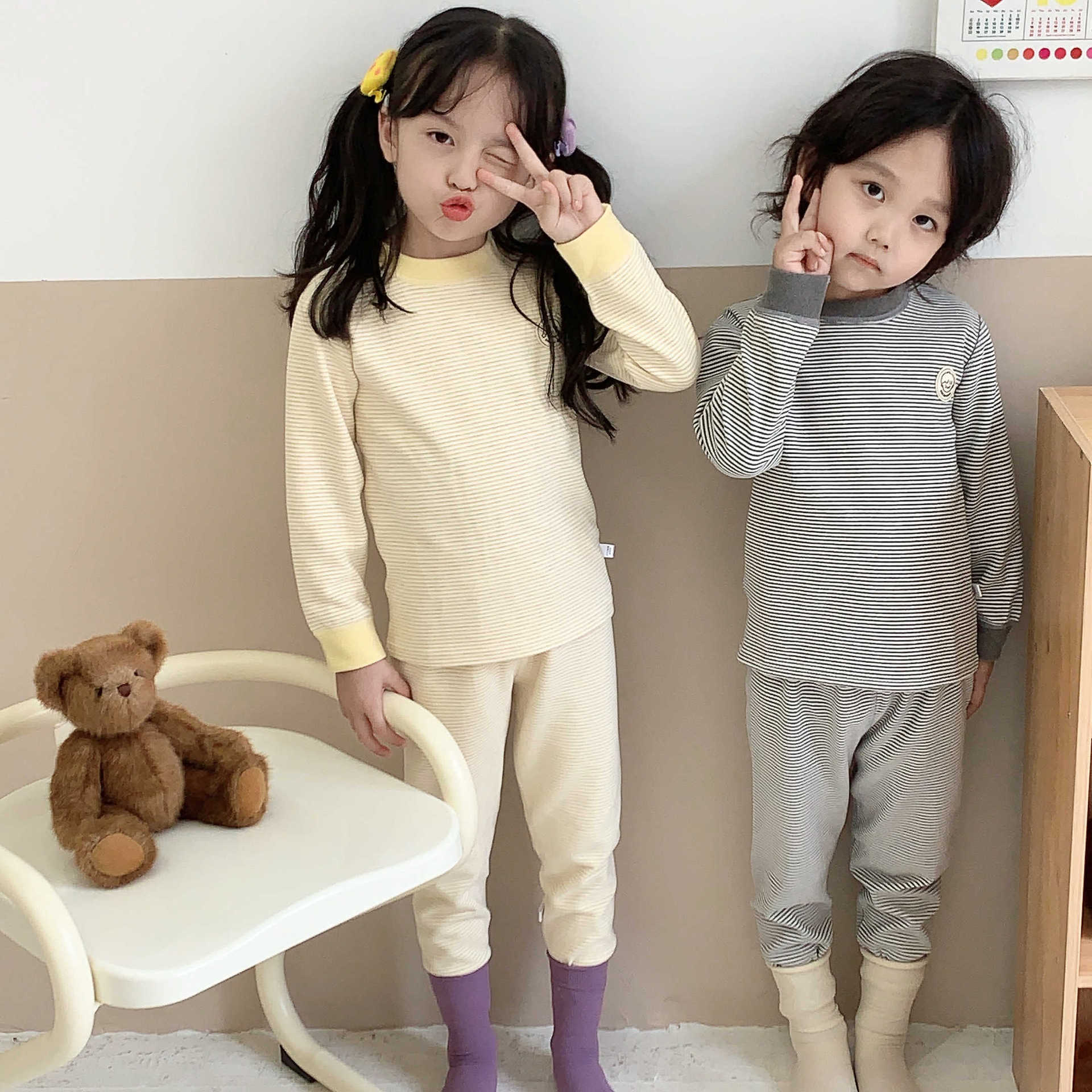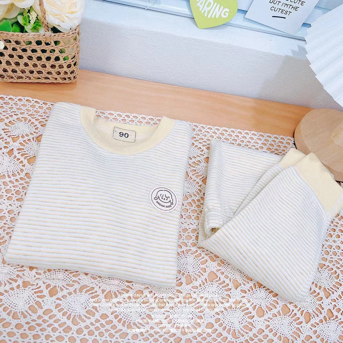 儿童条纹无骨保暖衣套装男女童德绒高领秋衣秋裤宝宝家居服睡