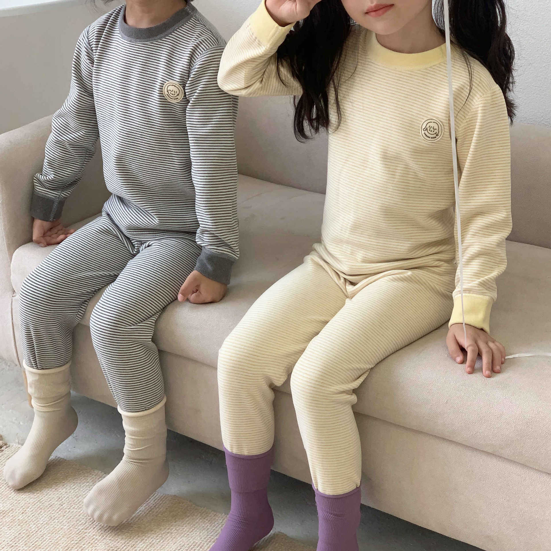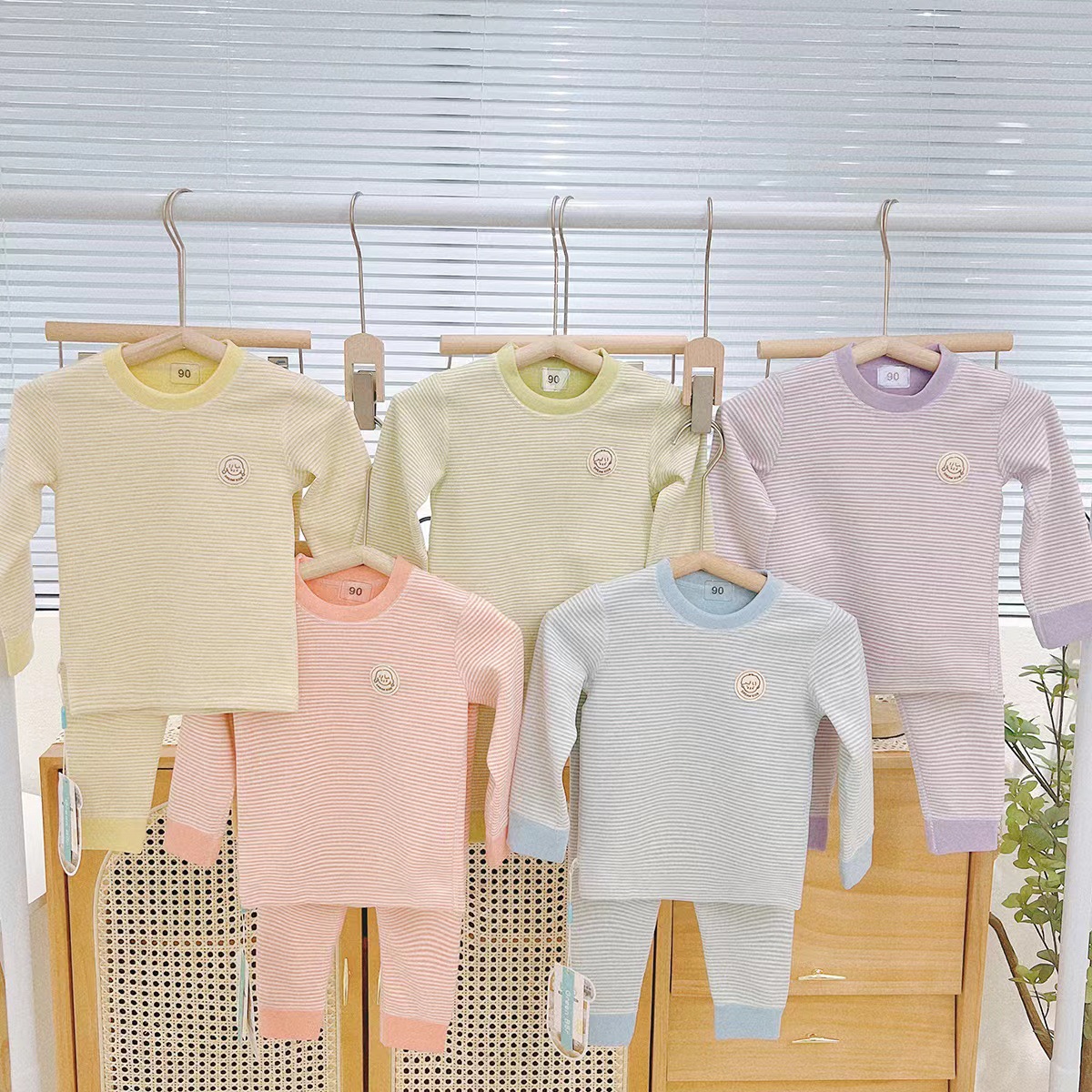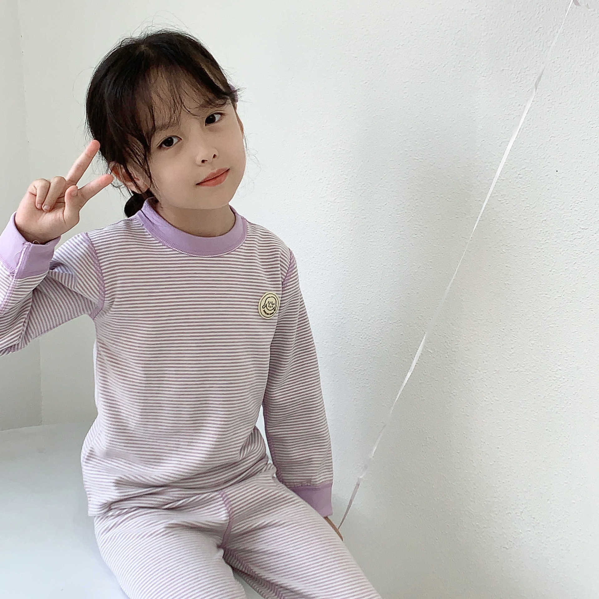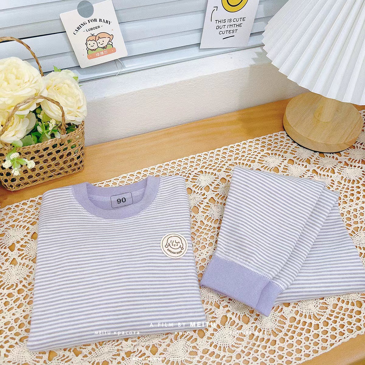 儿童条纹无骨保暖衣套装男女童德绒高领秋衣秋裤宝宝家居服睡