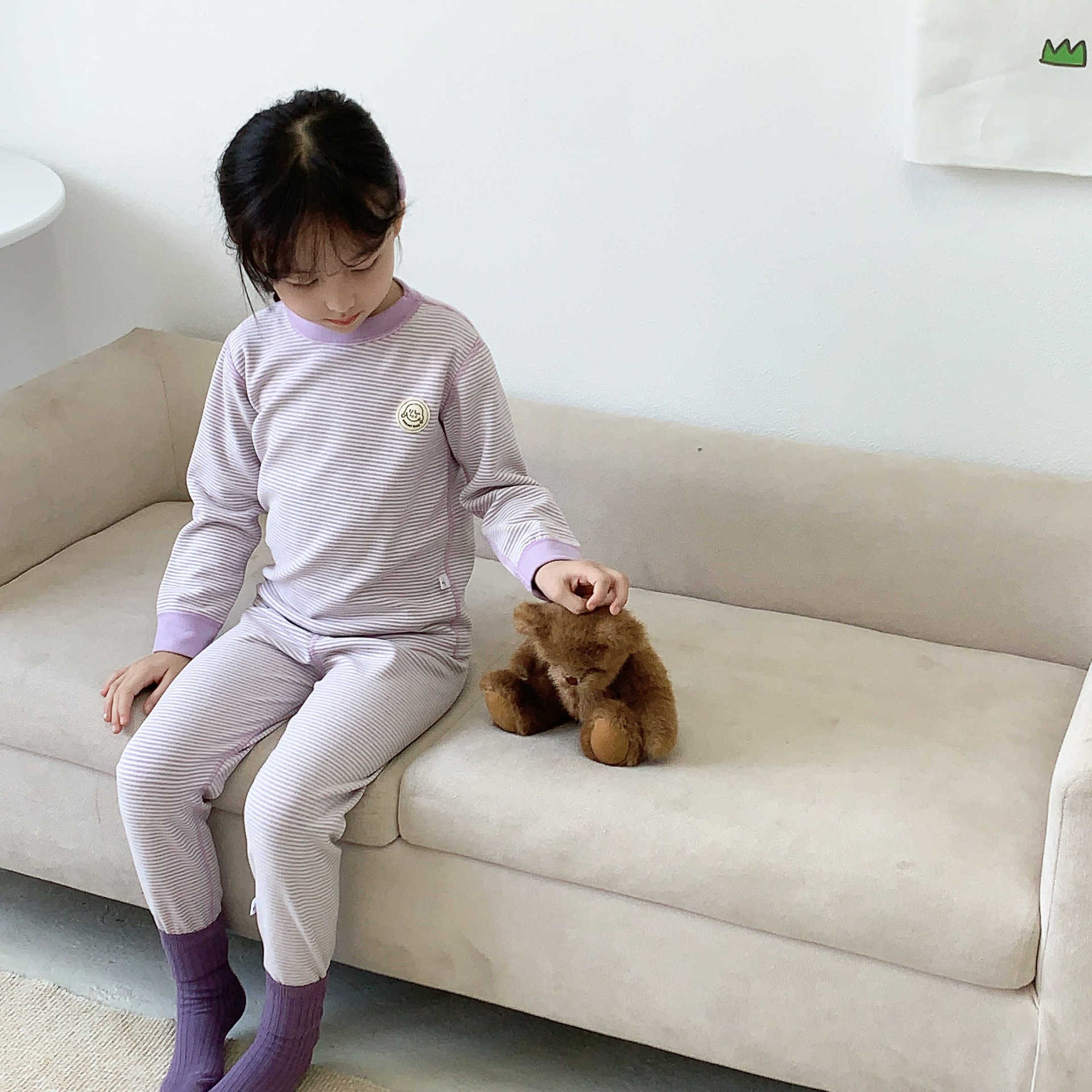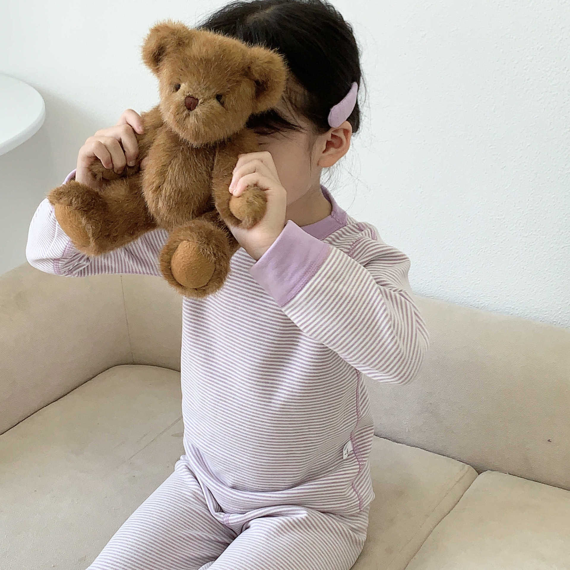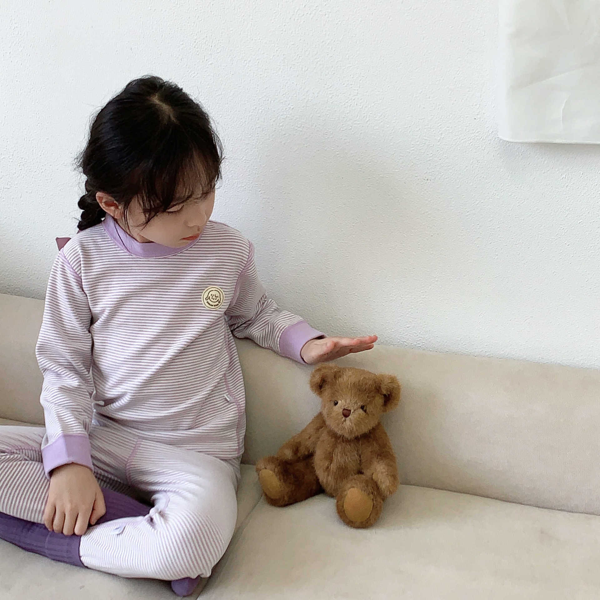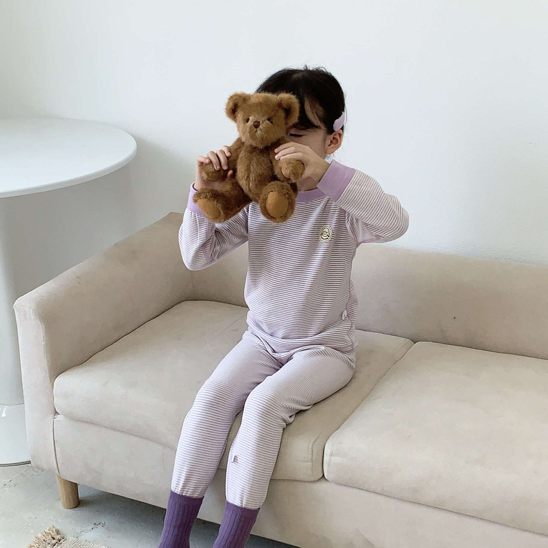 儿童条纹无骨保暖衣套装男女童德绒高领秋衣秋裤宝宝家居服睡