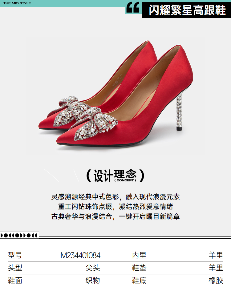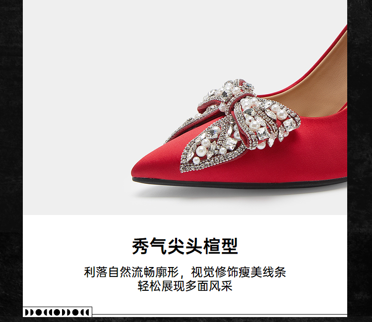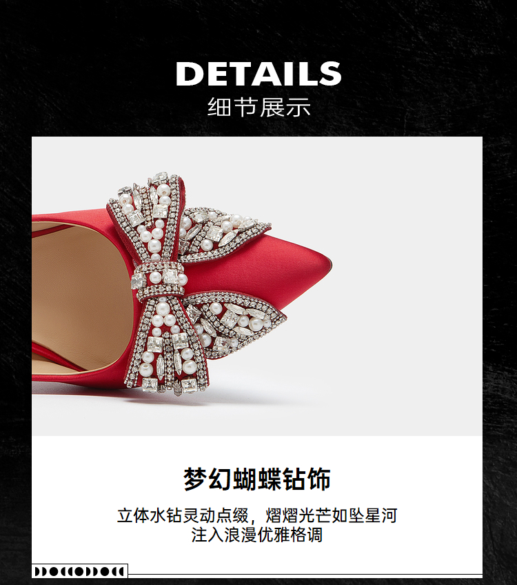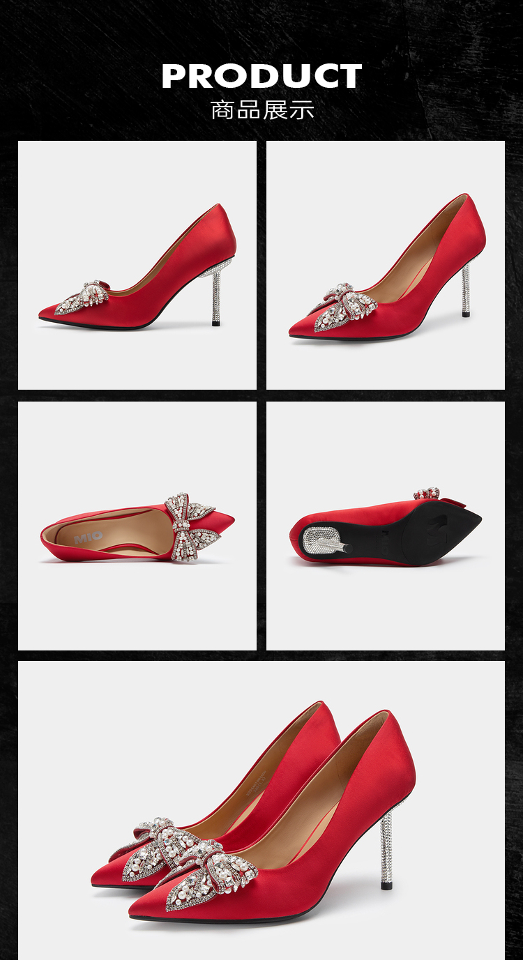 MIO米奥梦幻蝴蝶钻饰尖头优雅红色细跟高跟鞋婚鞋单鞋伴娘鞋M234401084