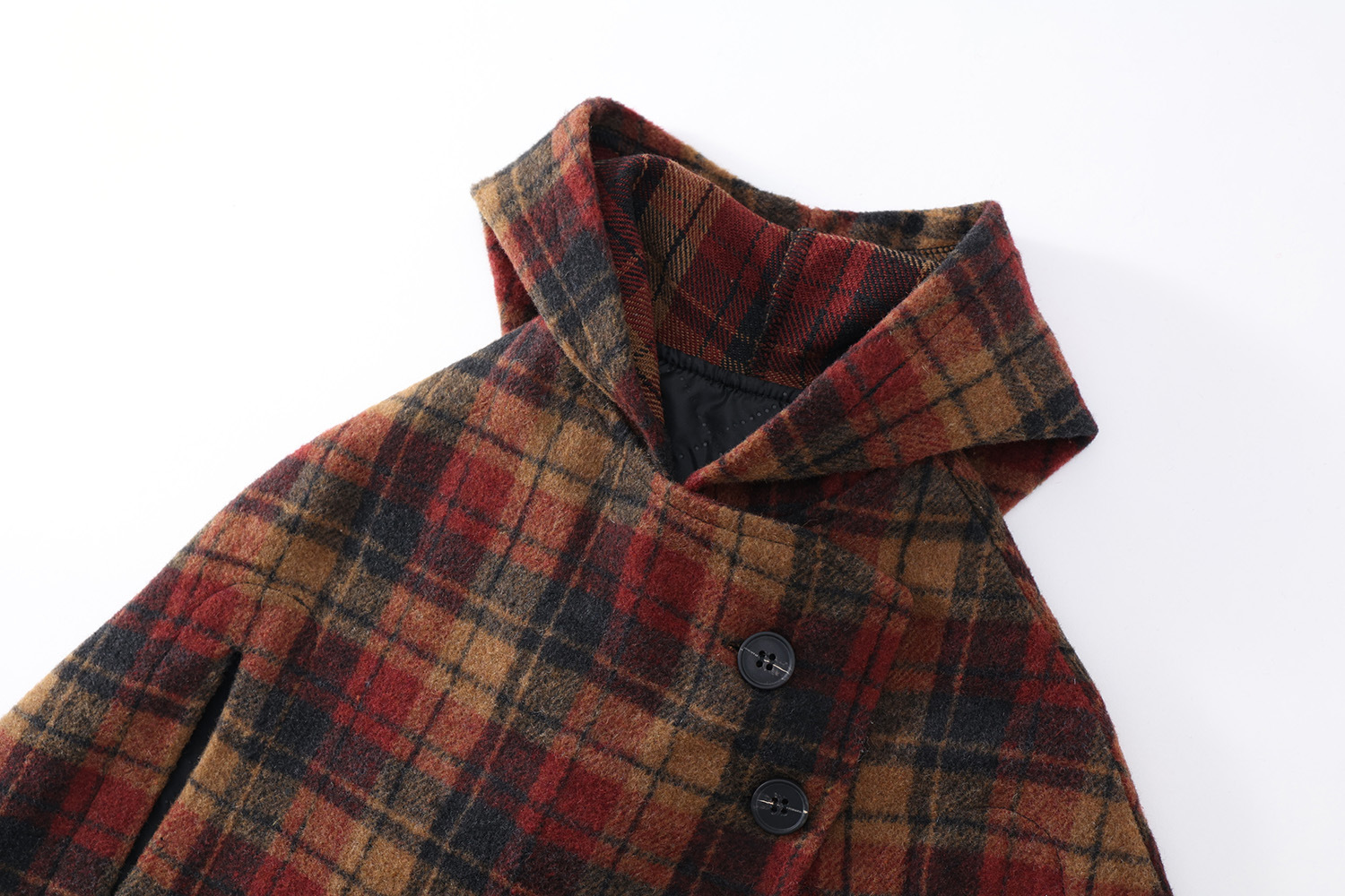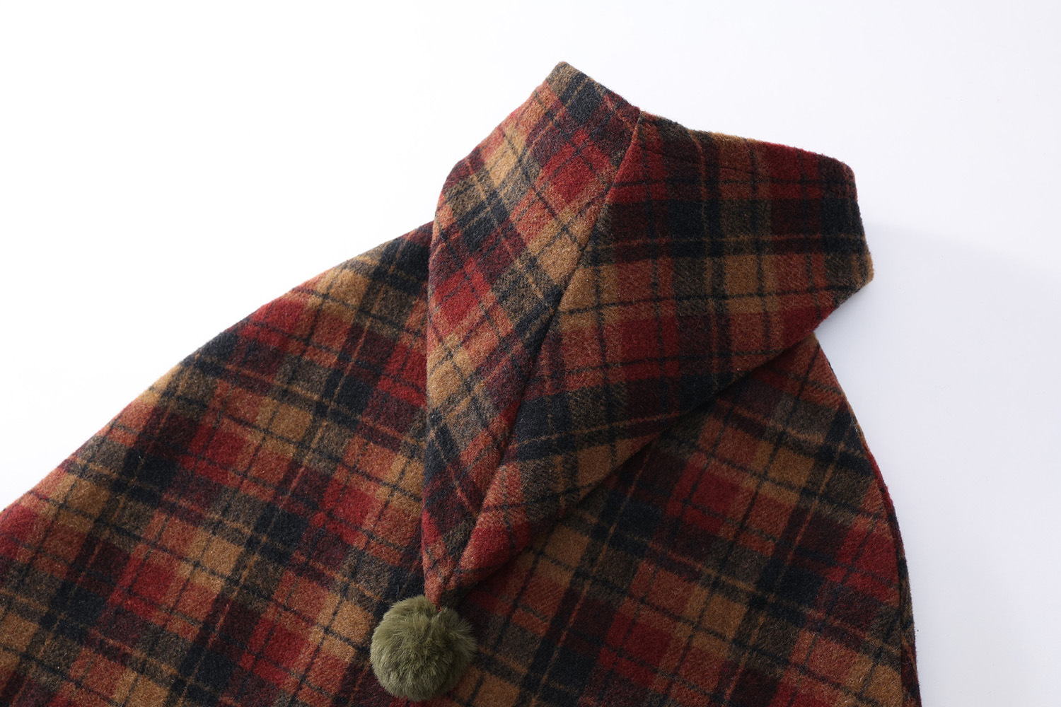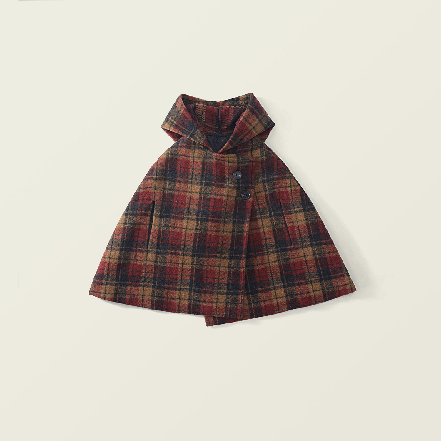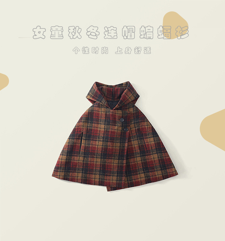 【法式英伦风❗️斗篷外套】女童夹棉加厚连帽呢大衣 2025冬季新款儿童韩版格子斗篷外套