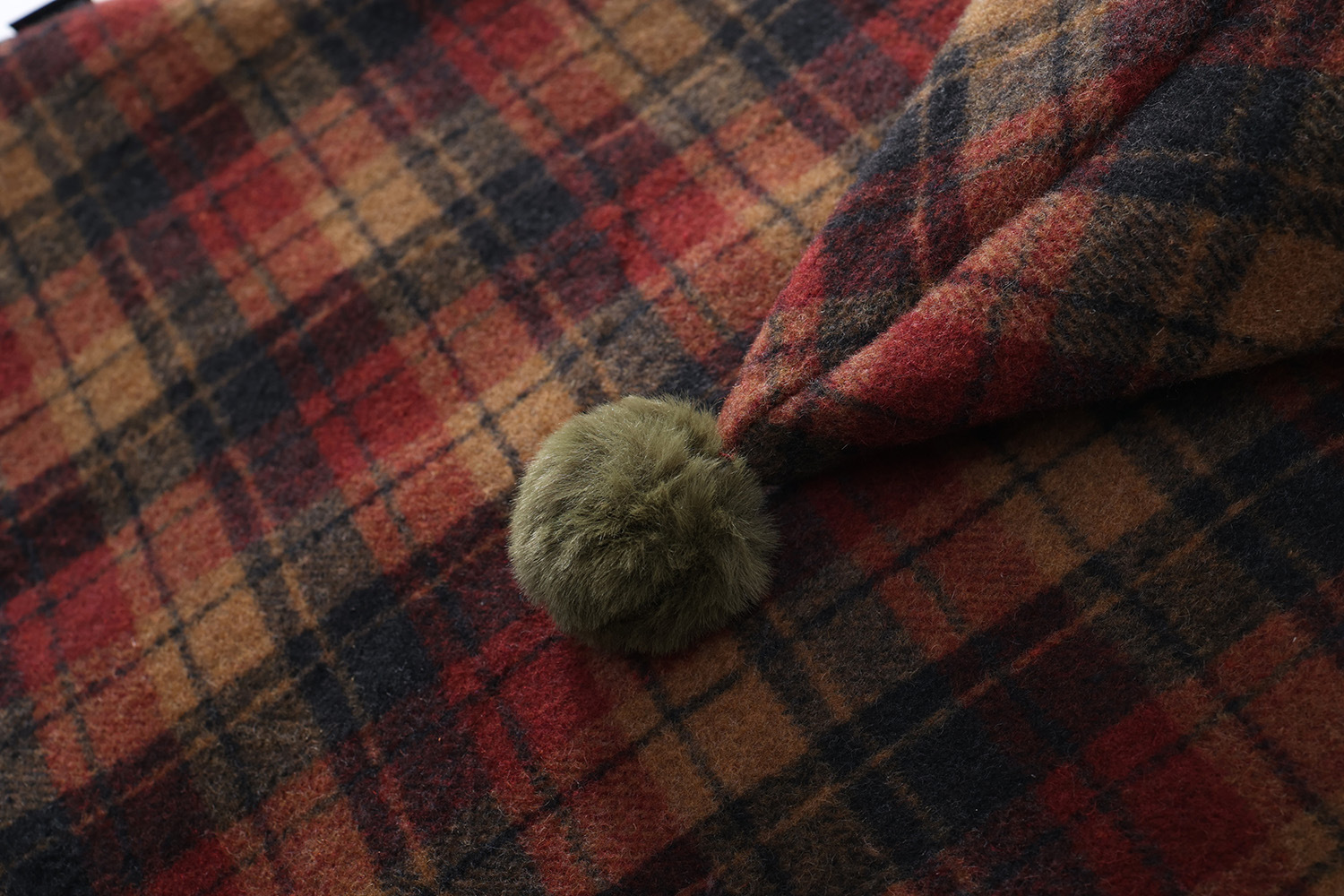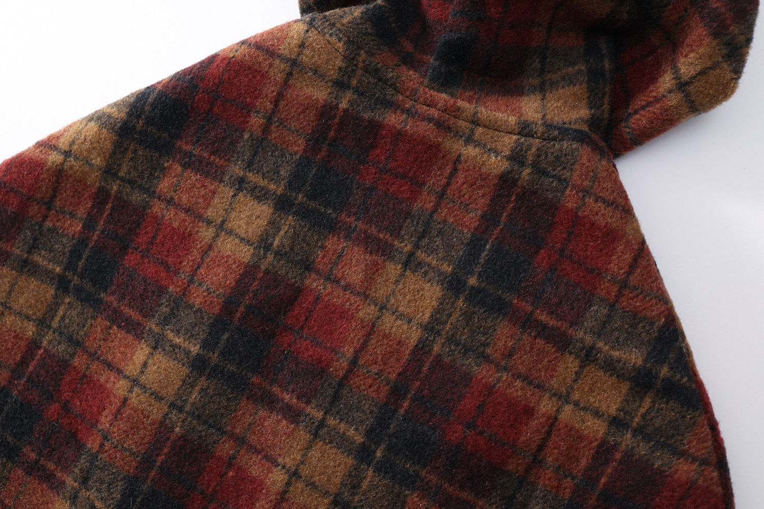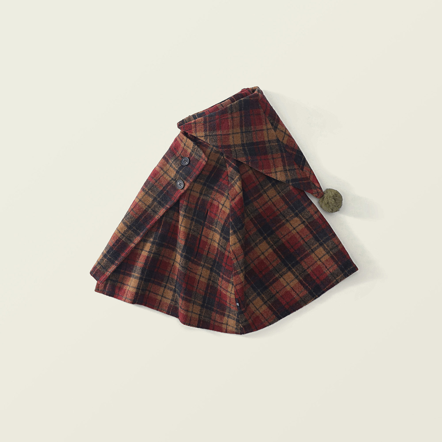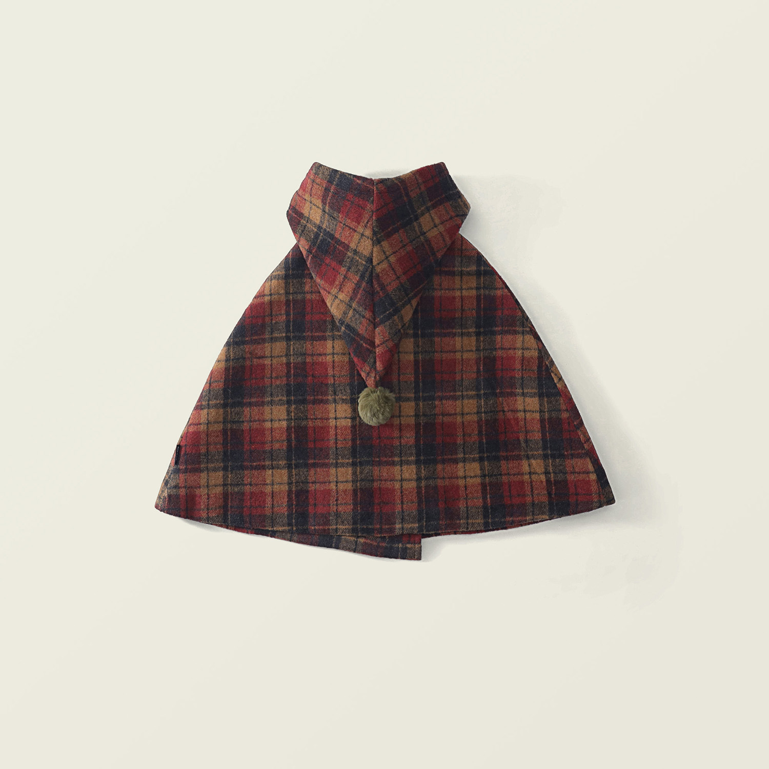 【法式英伦风❗️斗篷外套】女童夹棉加厚连帽呢大衣 2025冬季新款儿童韩版格子斗篷外套