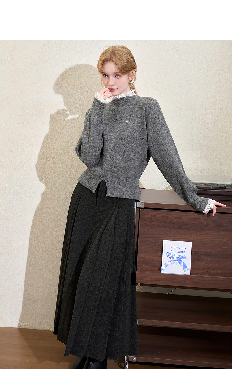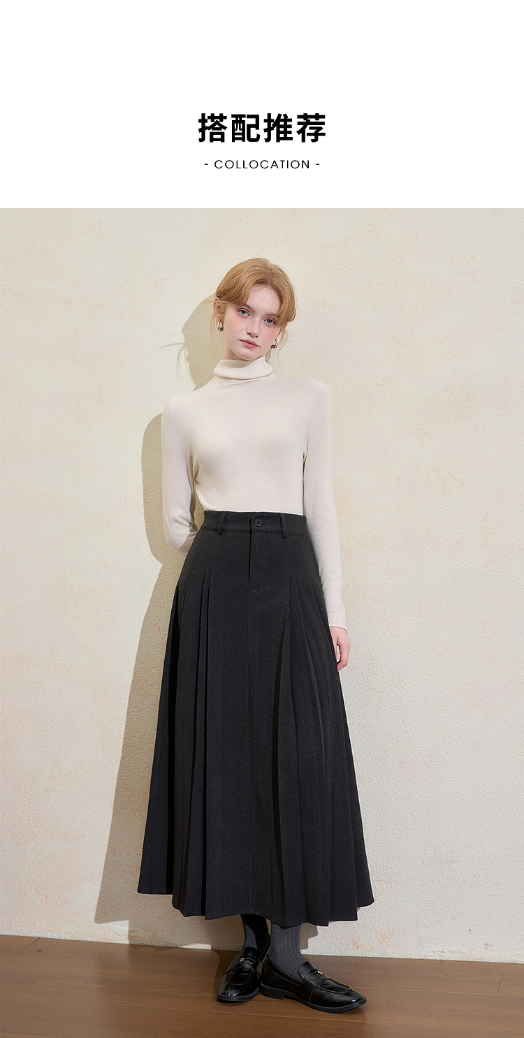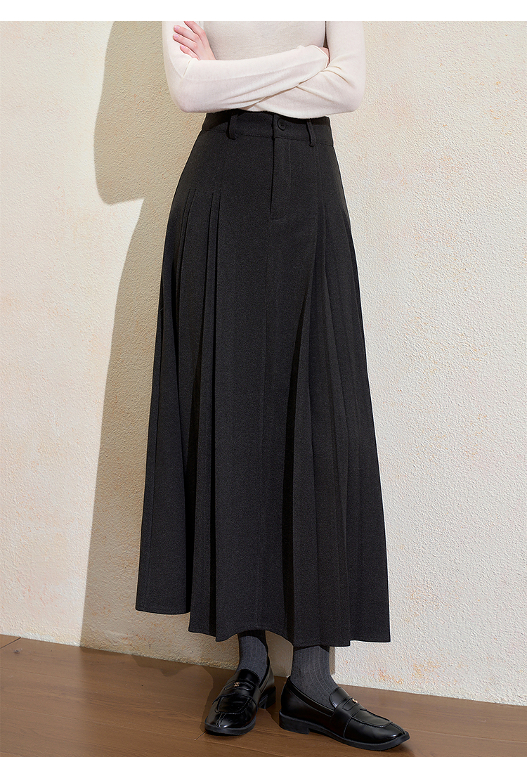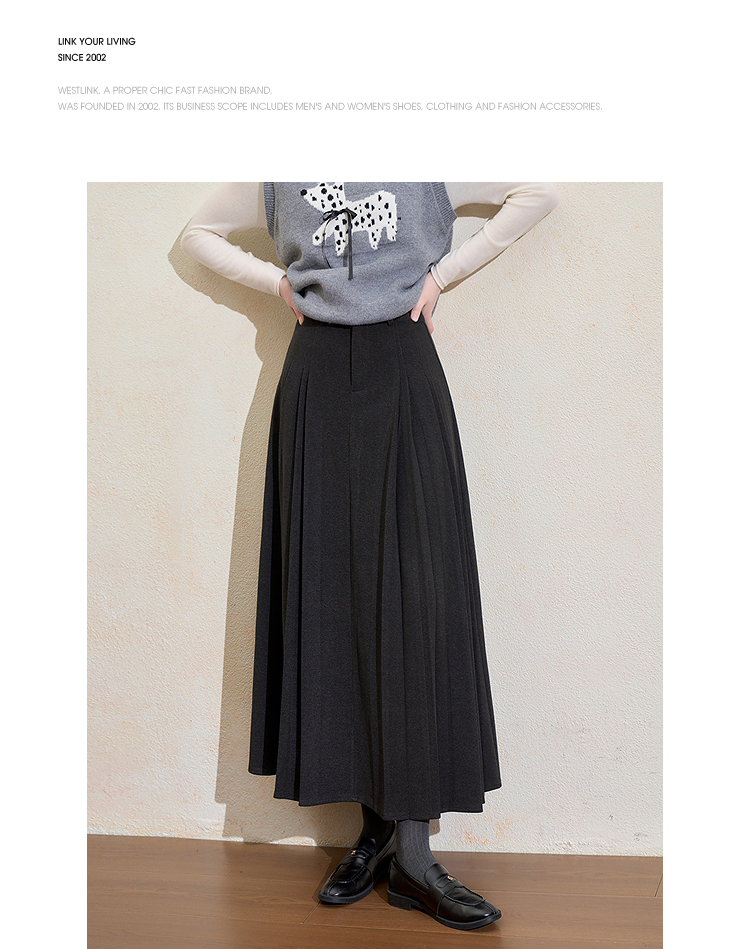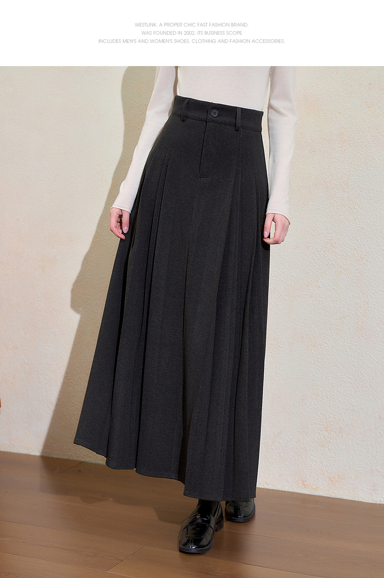 西遇韩系百搭百褶裙女冬季新款高腰显瘦大裙摆通勤长款半身裙H0055348
