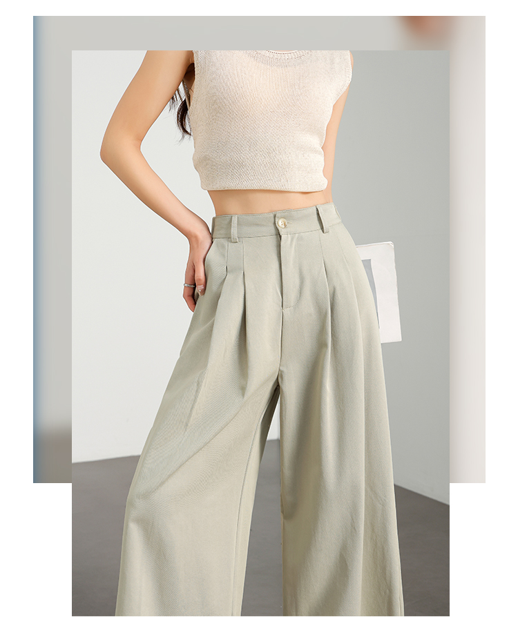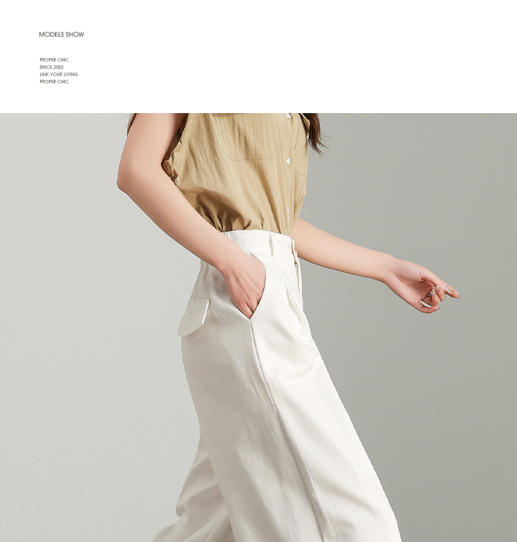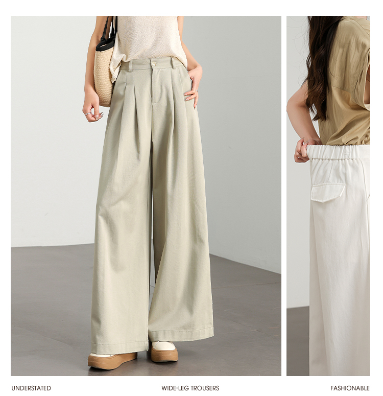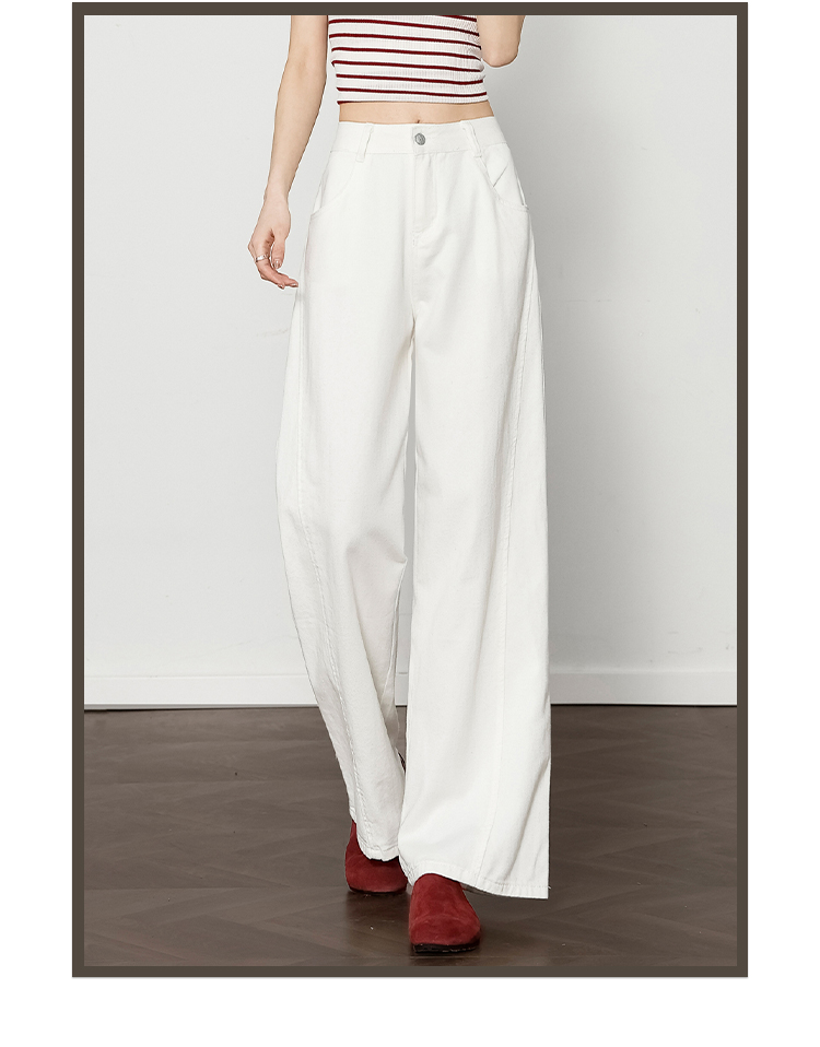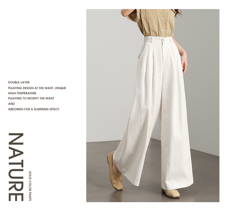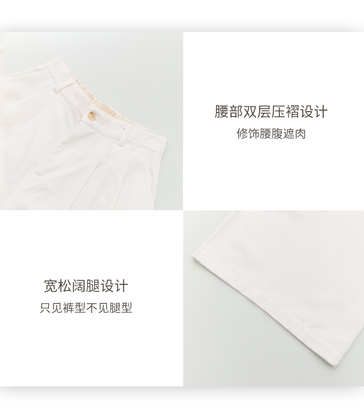 【限时秒杀】西遇白色宽松阔腿裤女新款通勤高腰小个子慵懒风休闲裤D0050457