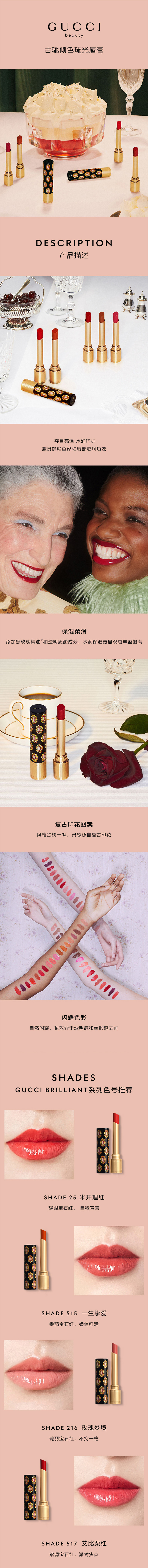 Gucci古驰 倾色琉光细管口红唇膏1.8g 光泽口红