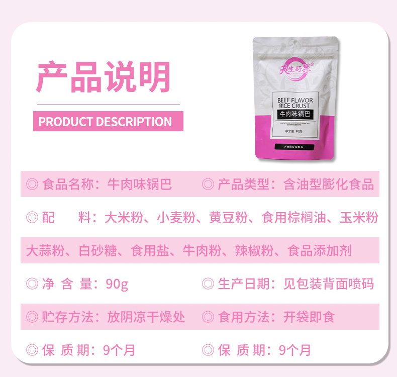 天生好果牛肉味锅巴90g*4袋【XPTX】