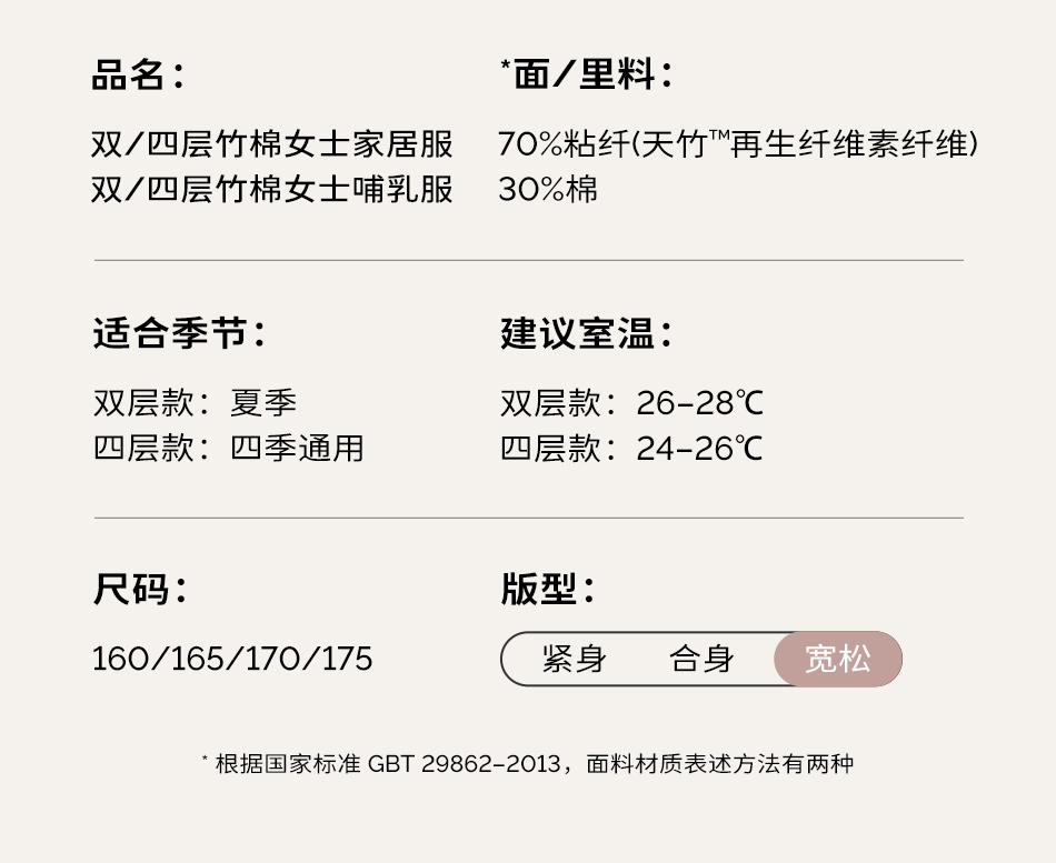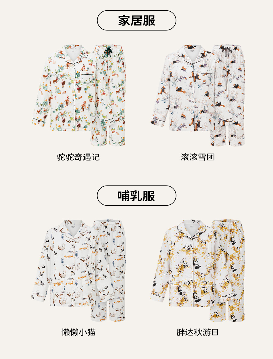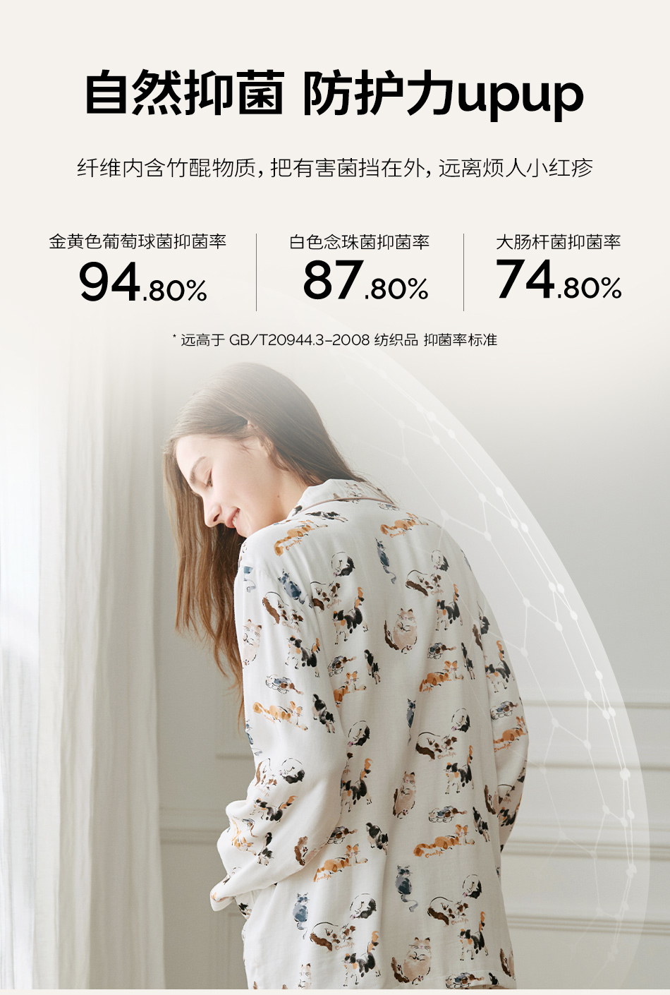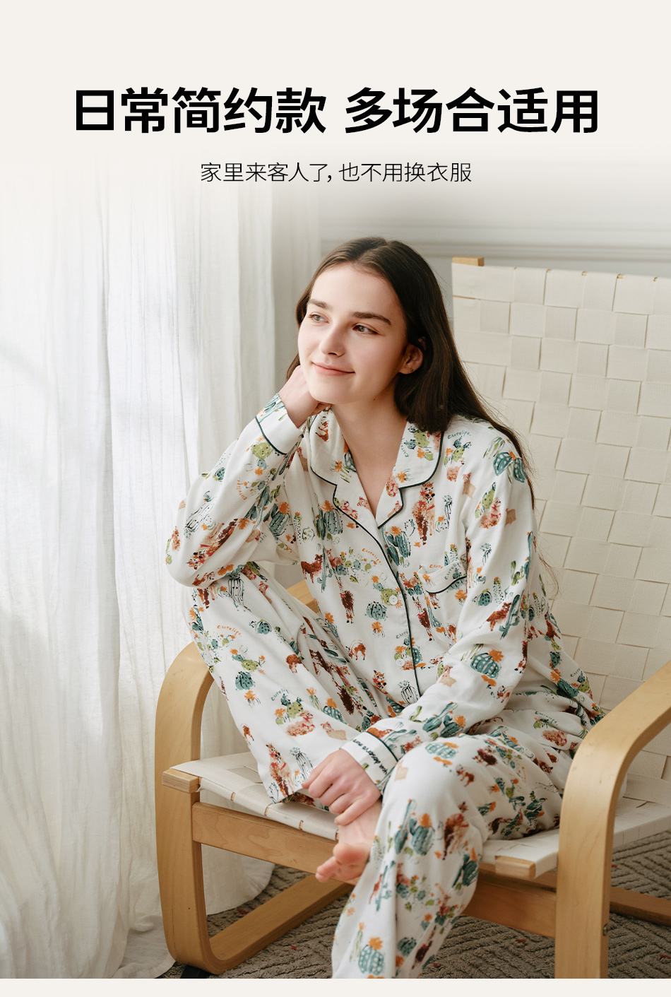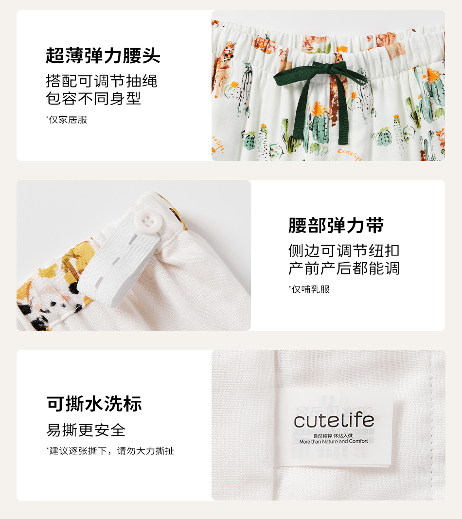 cutelife【女士家居服】轻羽月子服四季女士长袖家居服竹棉睡衣套装