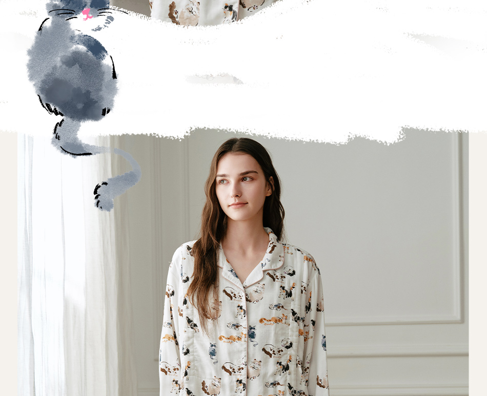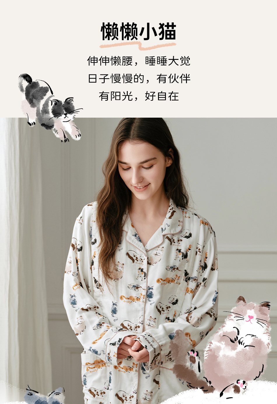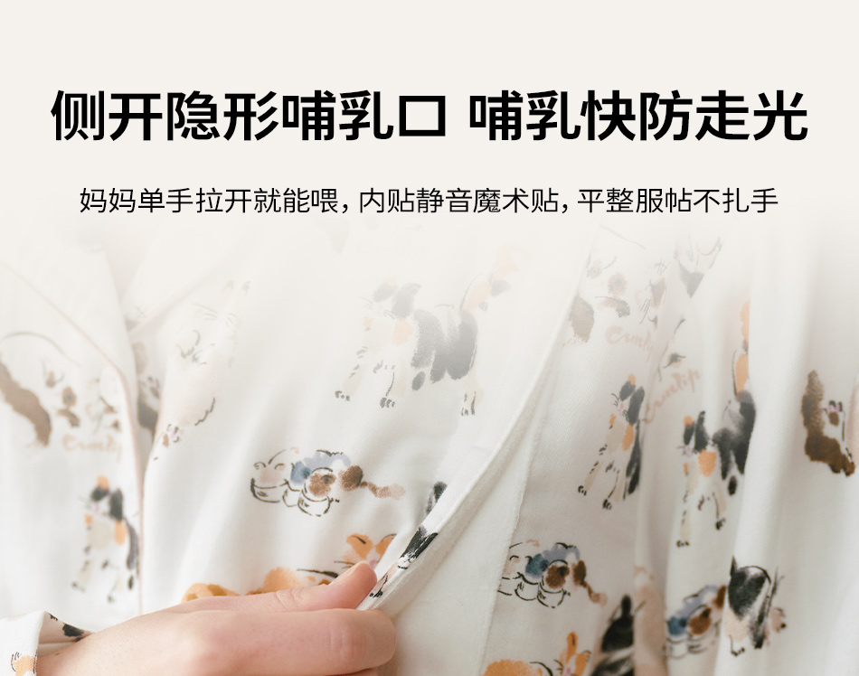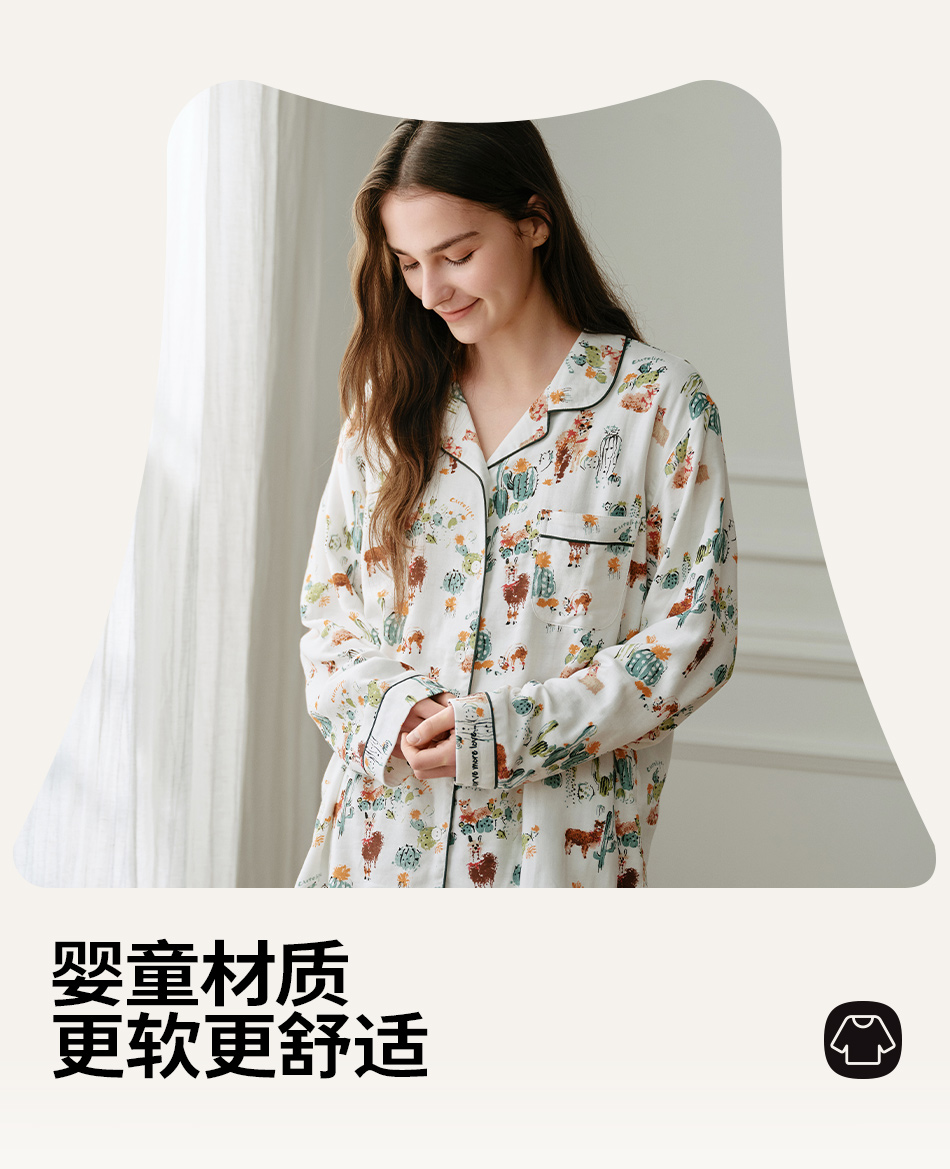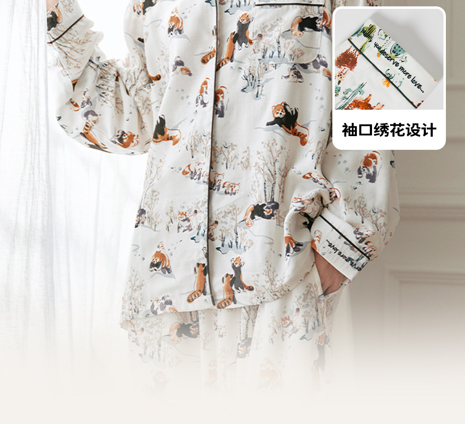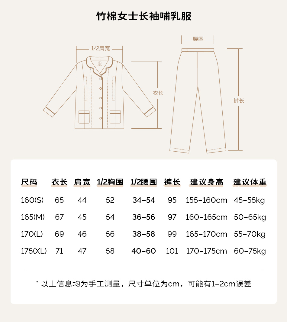 cutelife【女士家居服】轻羽月子服四季女士长袖家居服竹棉睡衣套装