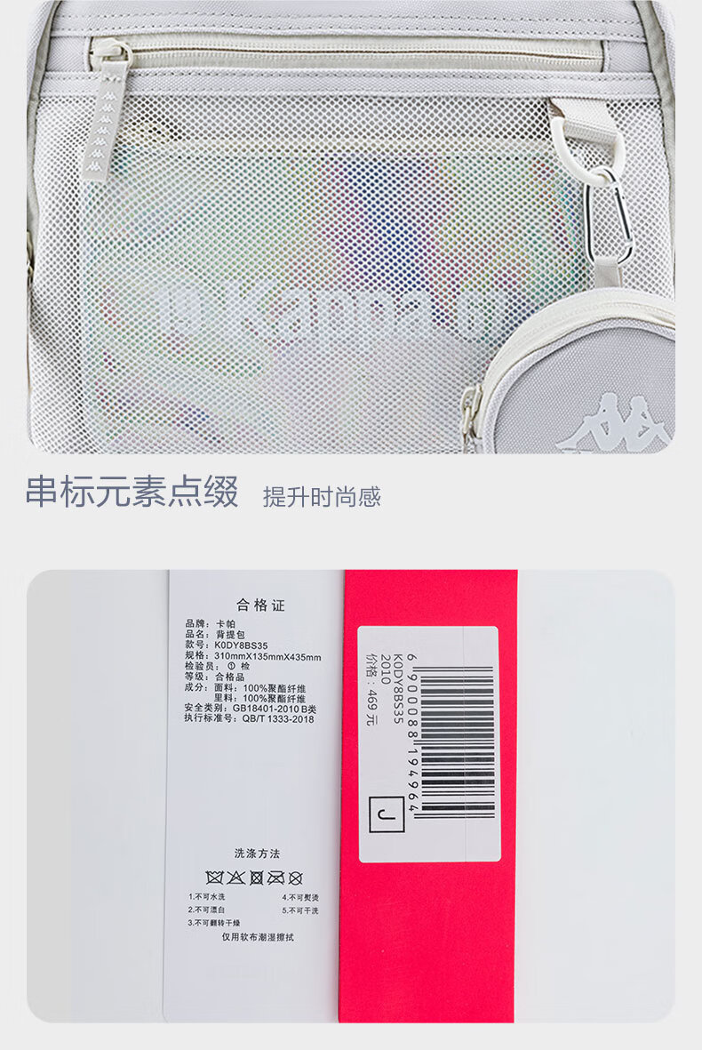 卡帕(Kappa)串标双肩包情侣男女多口袋双肩包时尚旅行背包K0DY8BS35