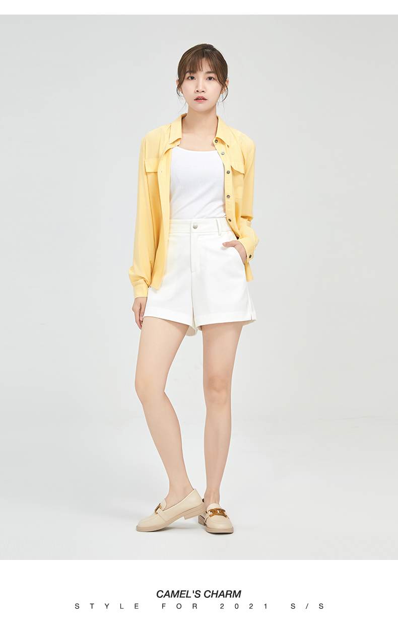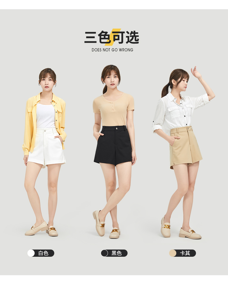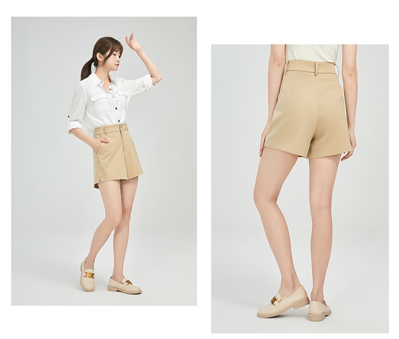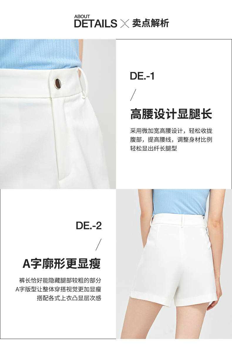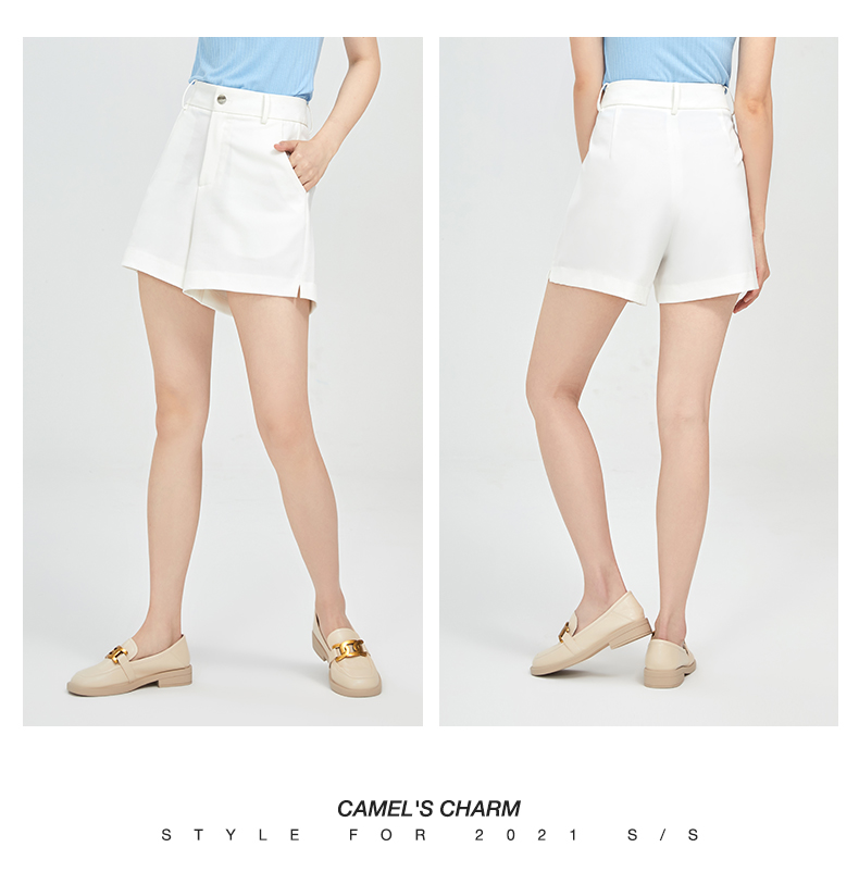 骆驼女装2023春夏新款白色裤子五分裤高腰中裤直筒短裤女春季外穿 W1XKMY104