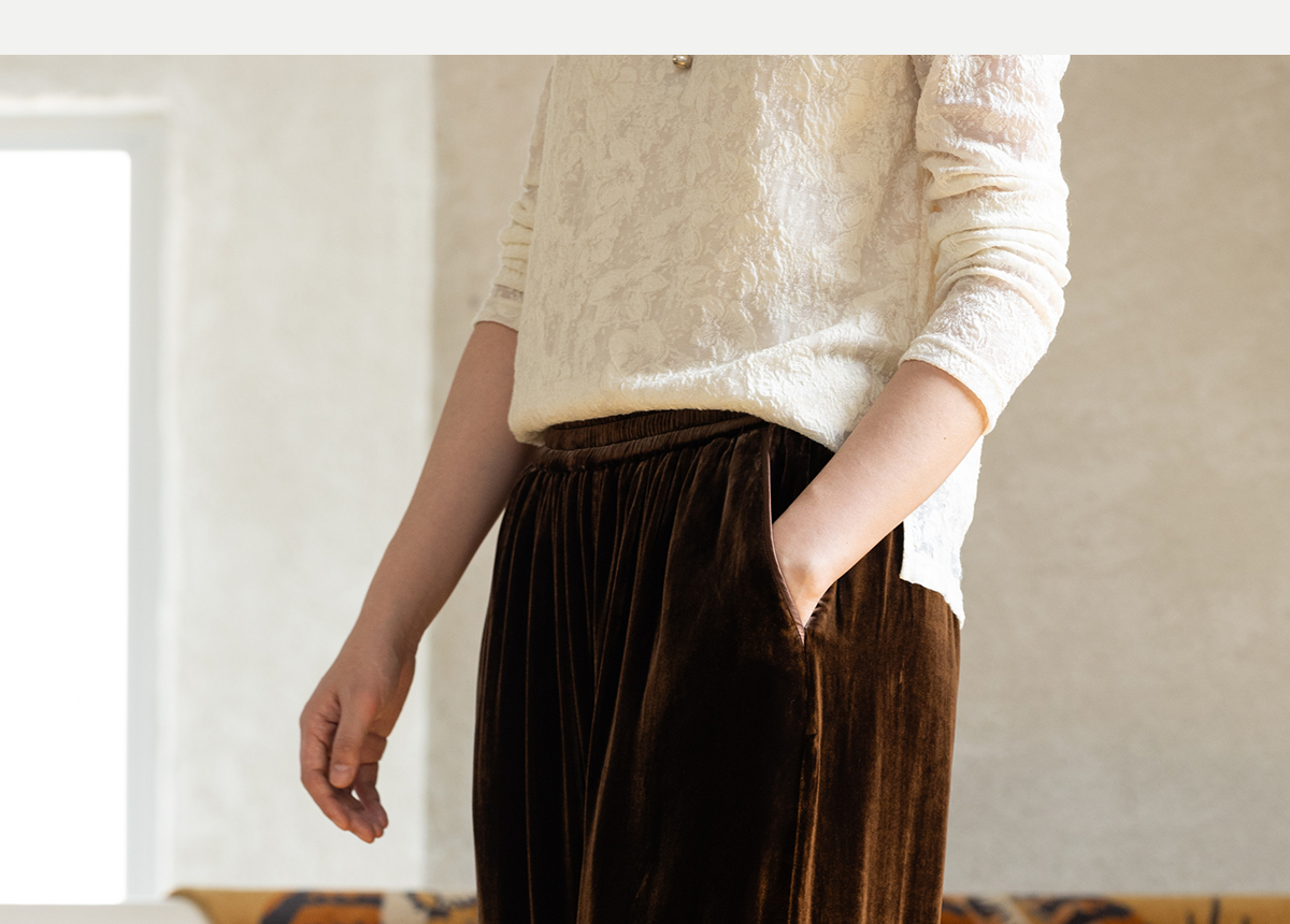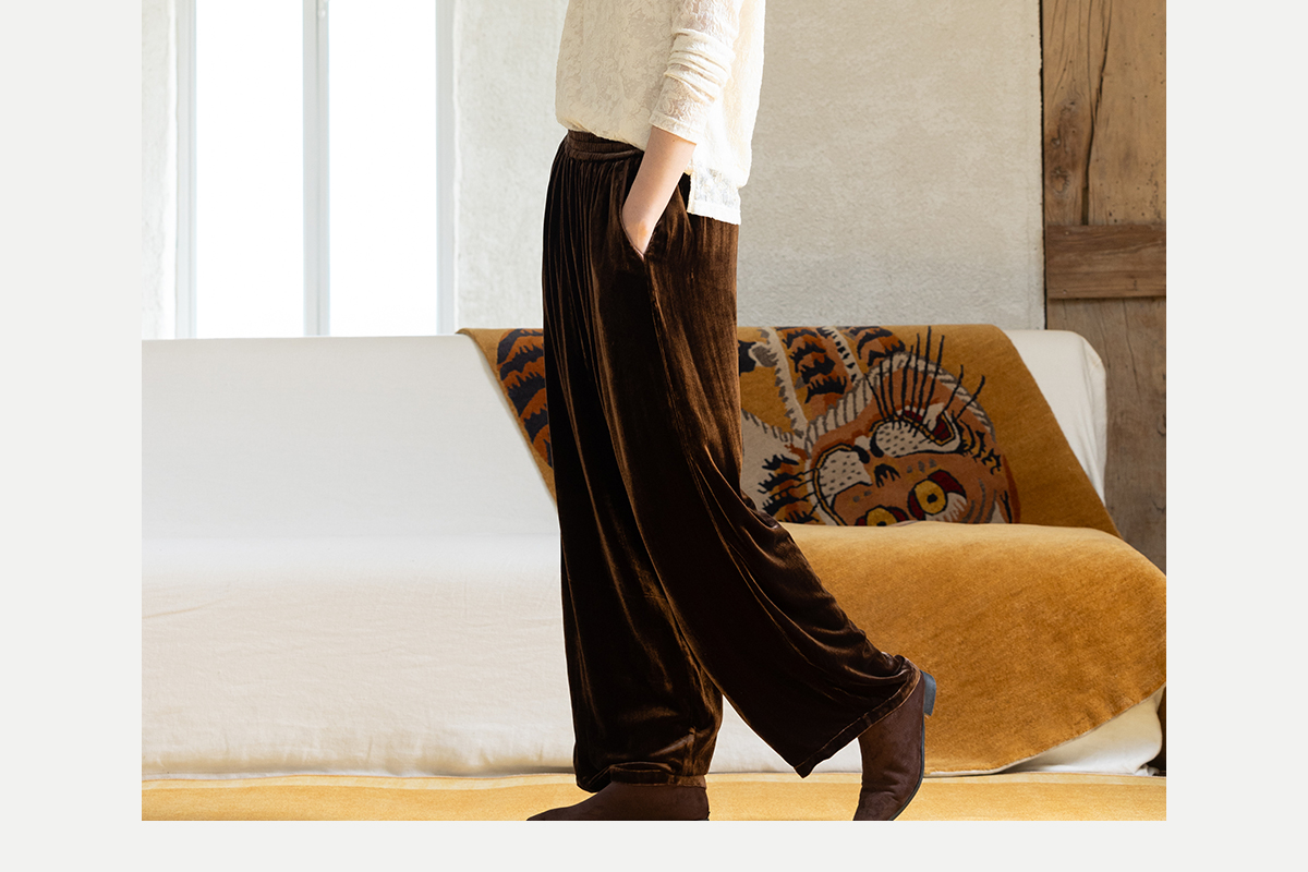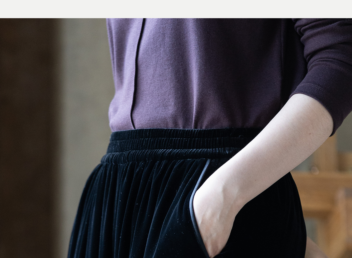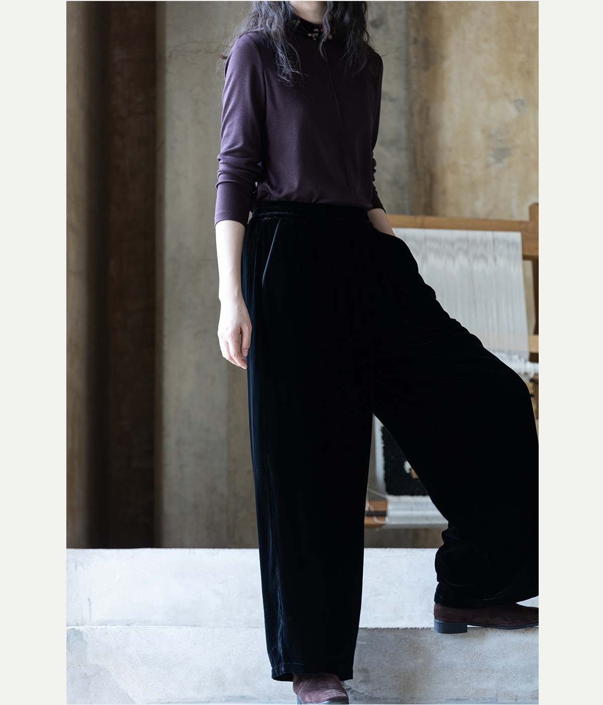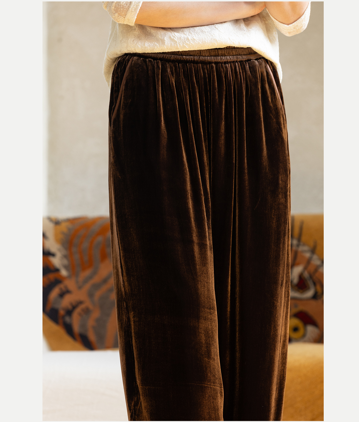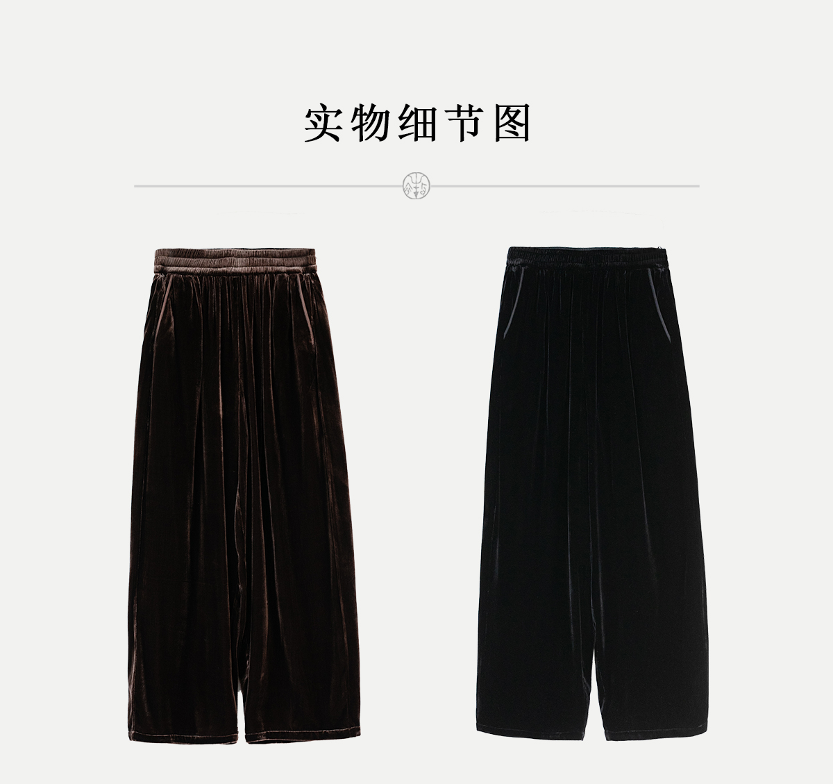 牧衣游原创 丝绒净色长裤新款垂感显瘦保暖松紧腰休闲裤 少年与树