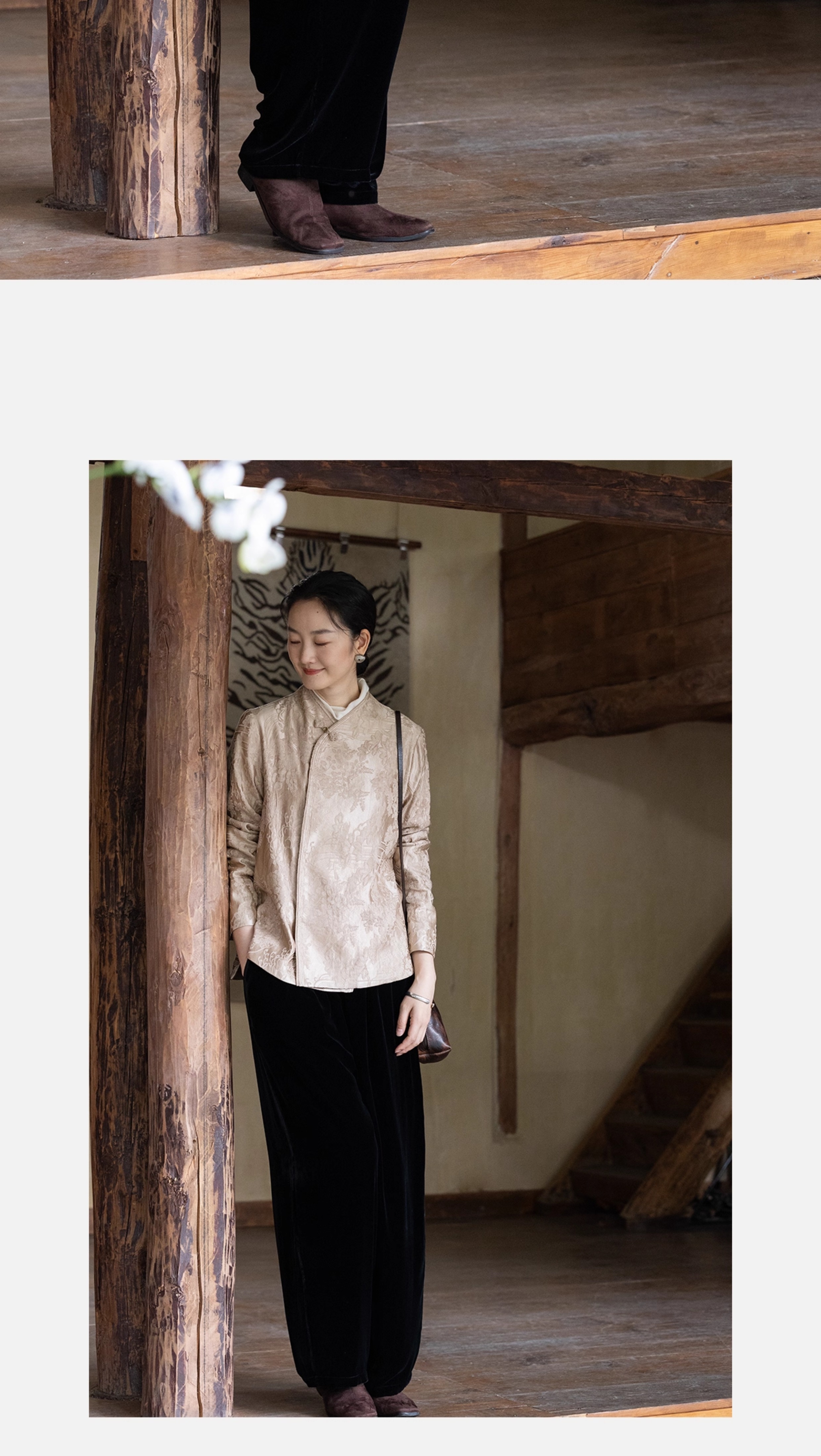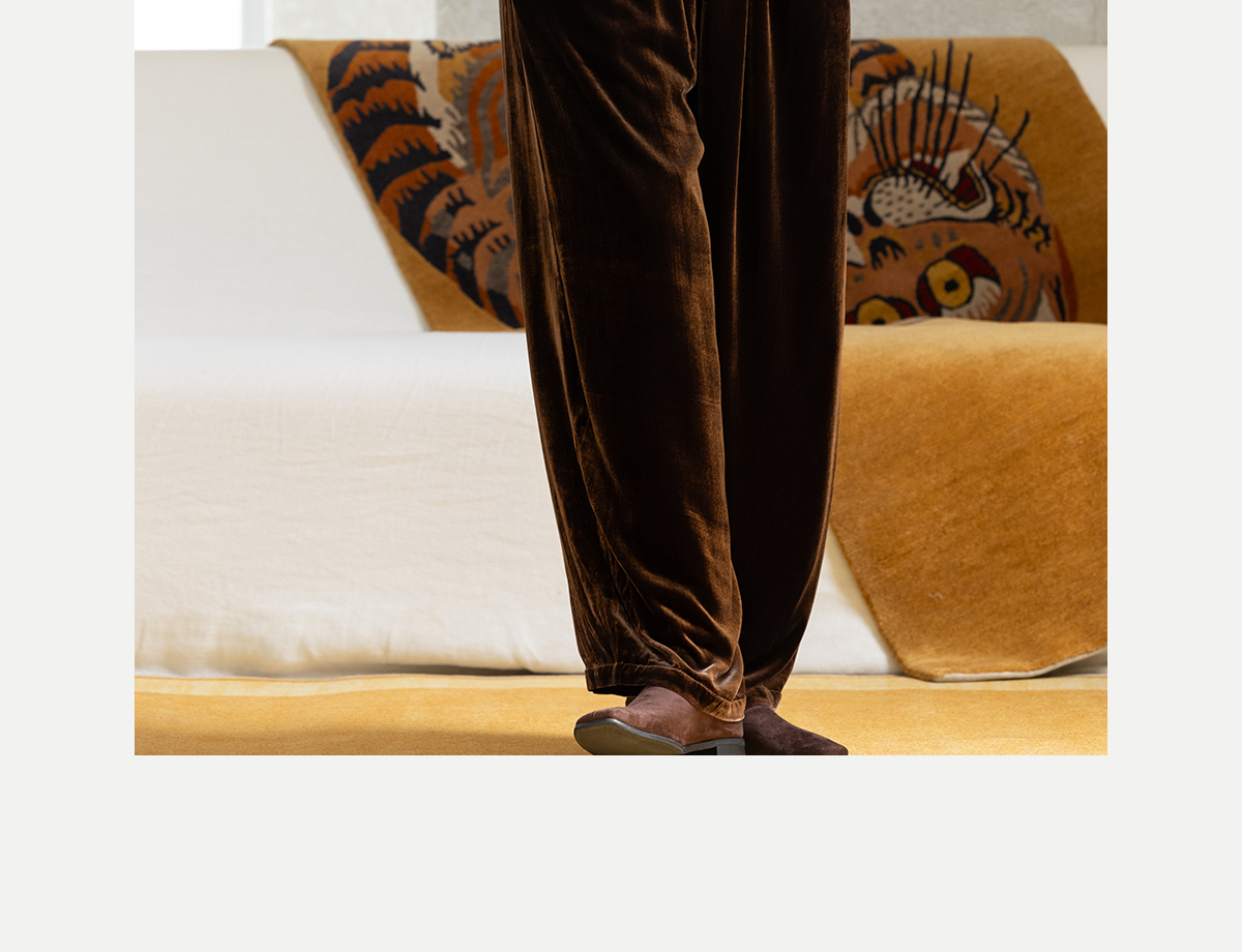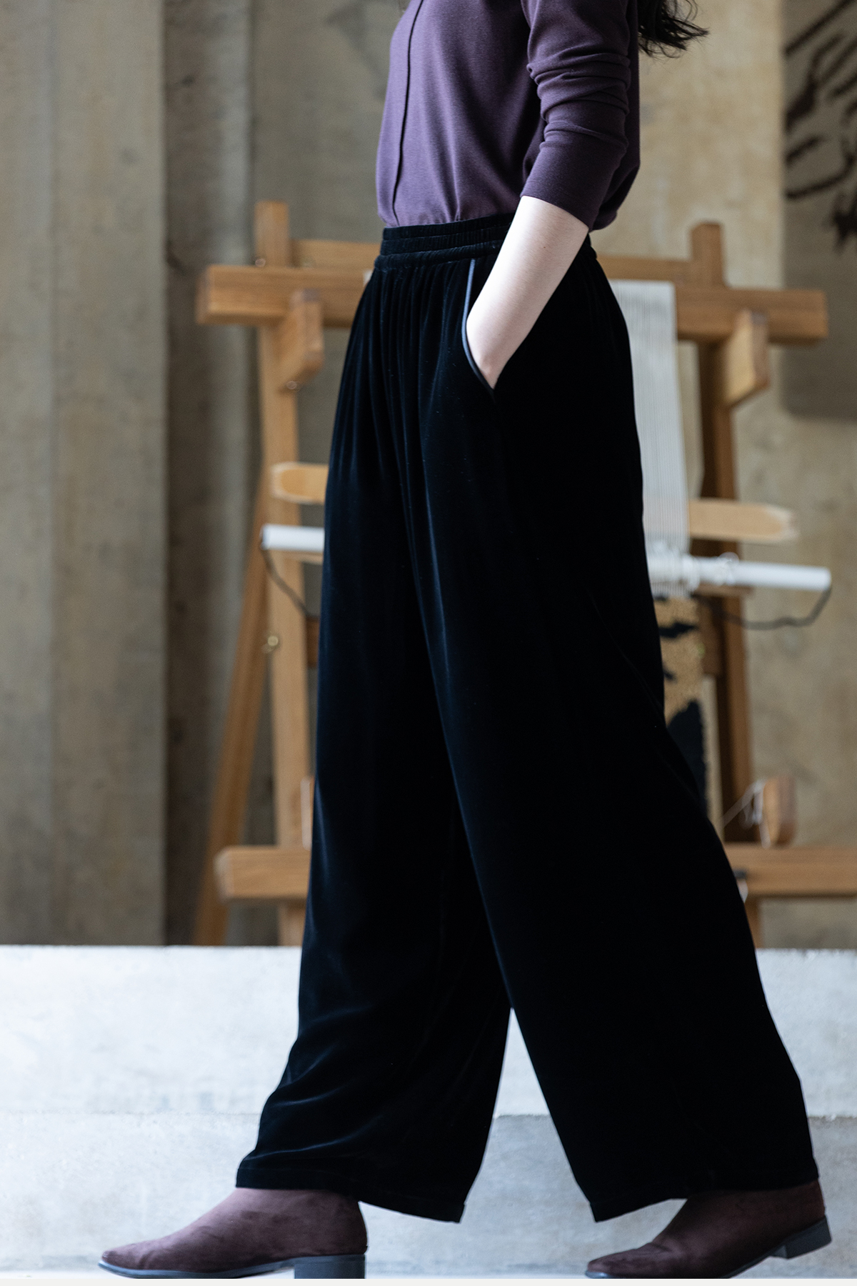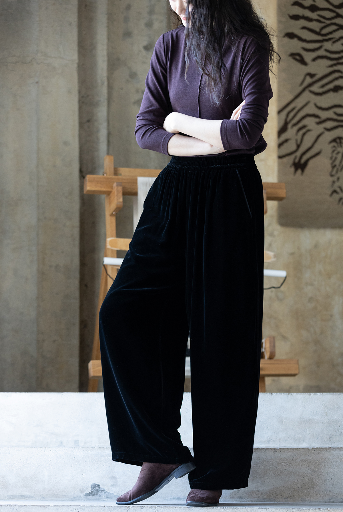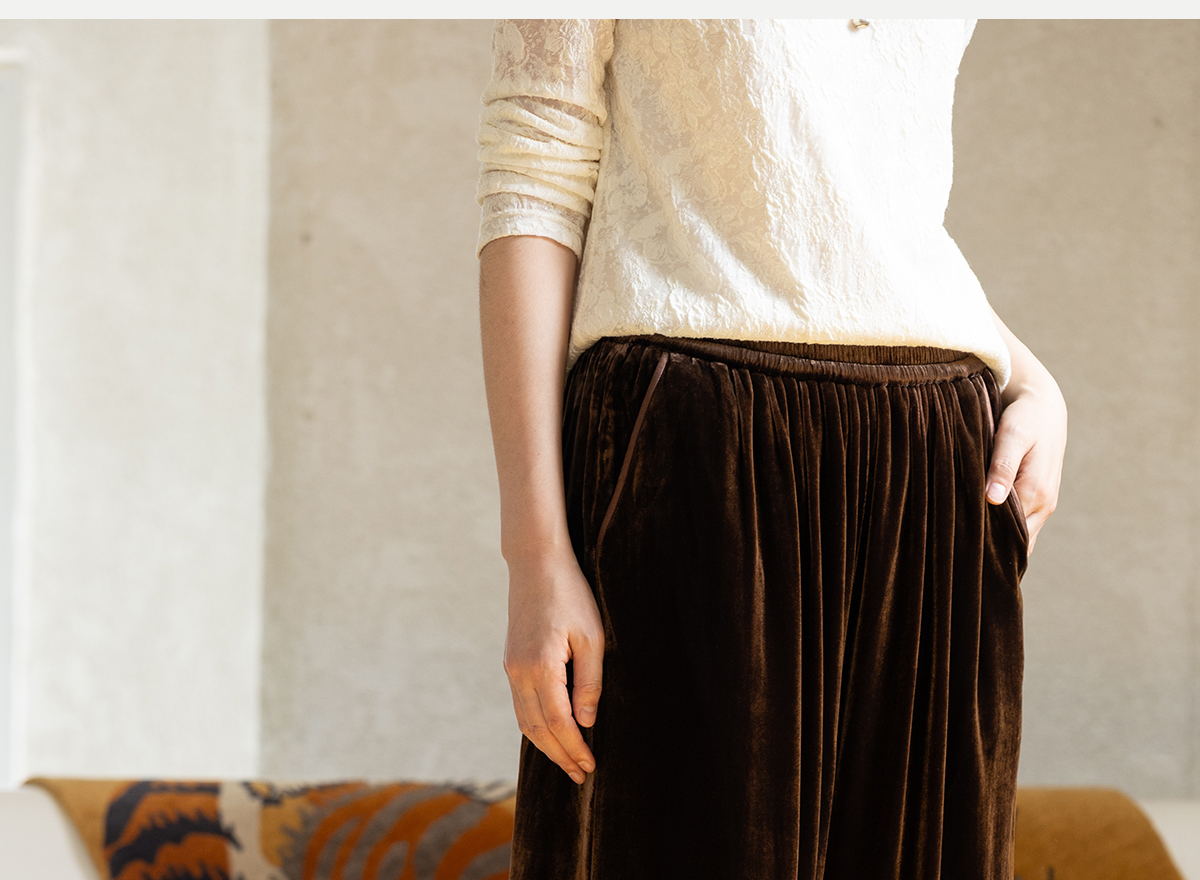 牧衣游原创 丝绒净色长裤新款垂感显瘦保暖松紧腰休闲裤 少年与树