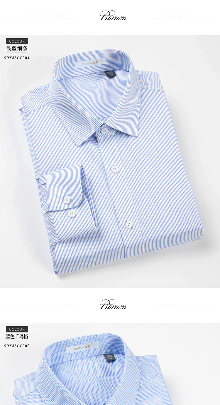 【全棉】罗蒙成衣免烫衬衫男长袖正装商务通勤职业装衬衣男