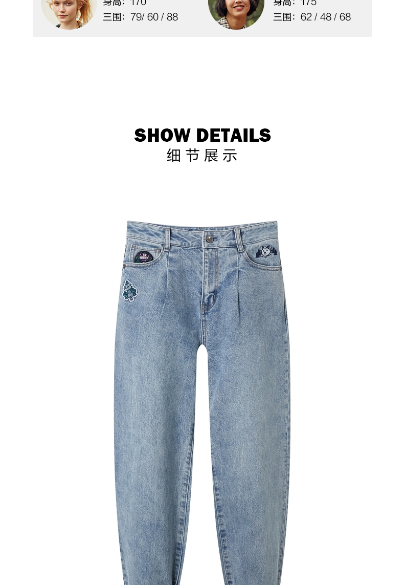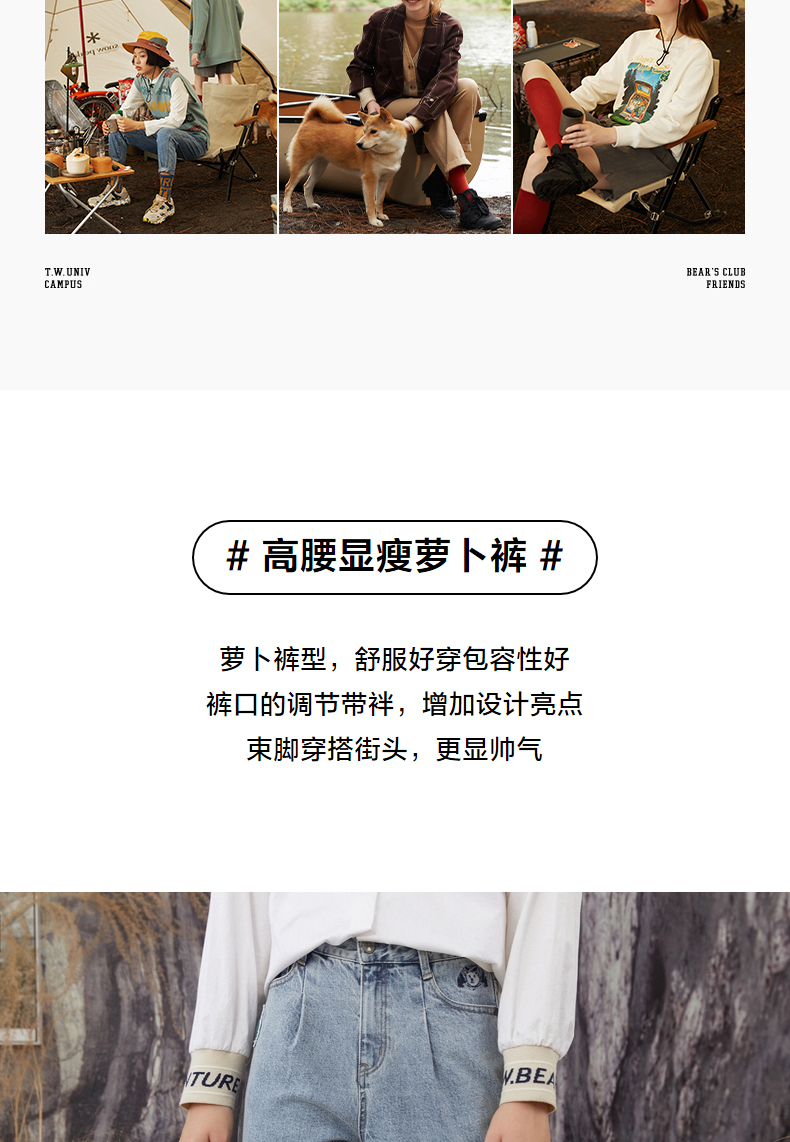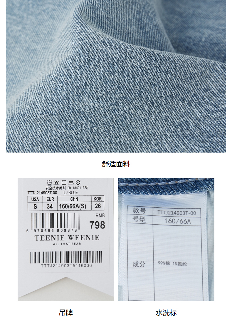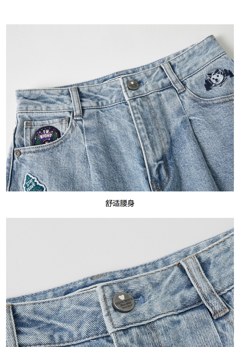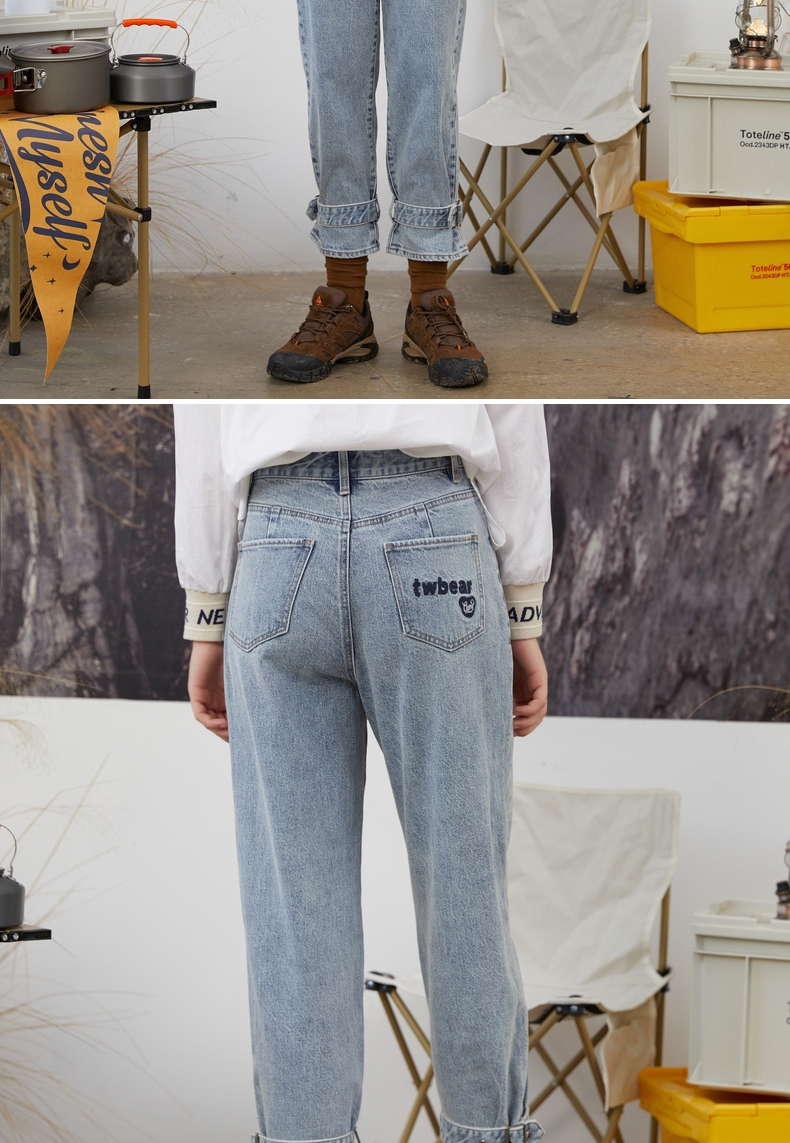 TeenieWeenie小熊牛仔裤长裤宽松韩版显瘦萝卜裤复古港味潮女秋冬TTTJ214903T