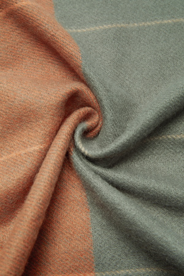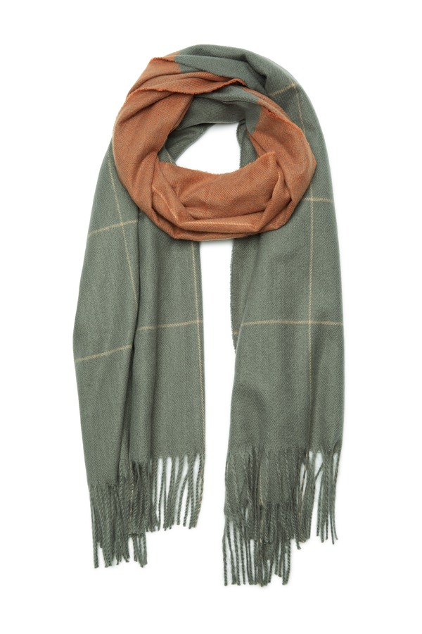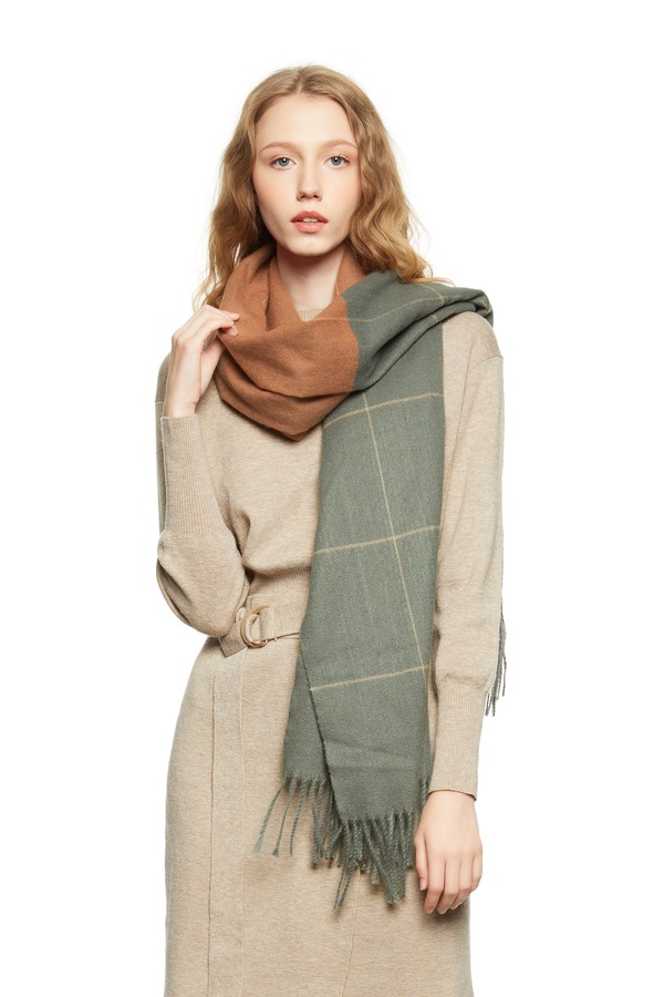 SUMMER & SAGE 双色拼接格纹流苏围巾 7986
